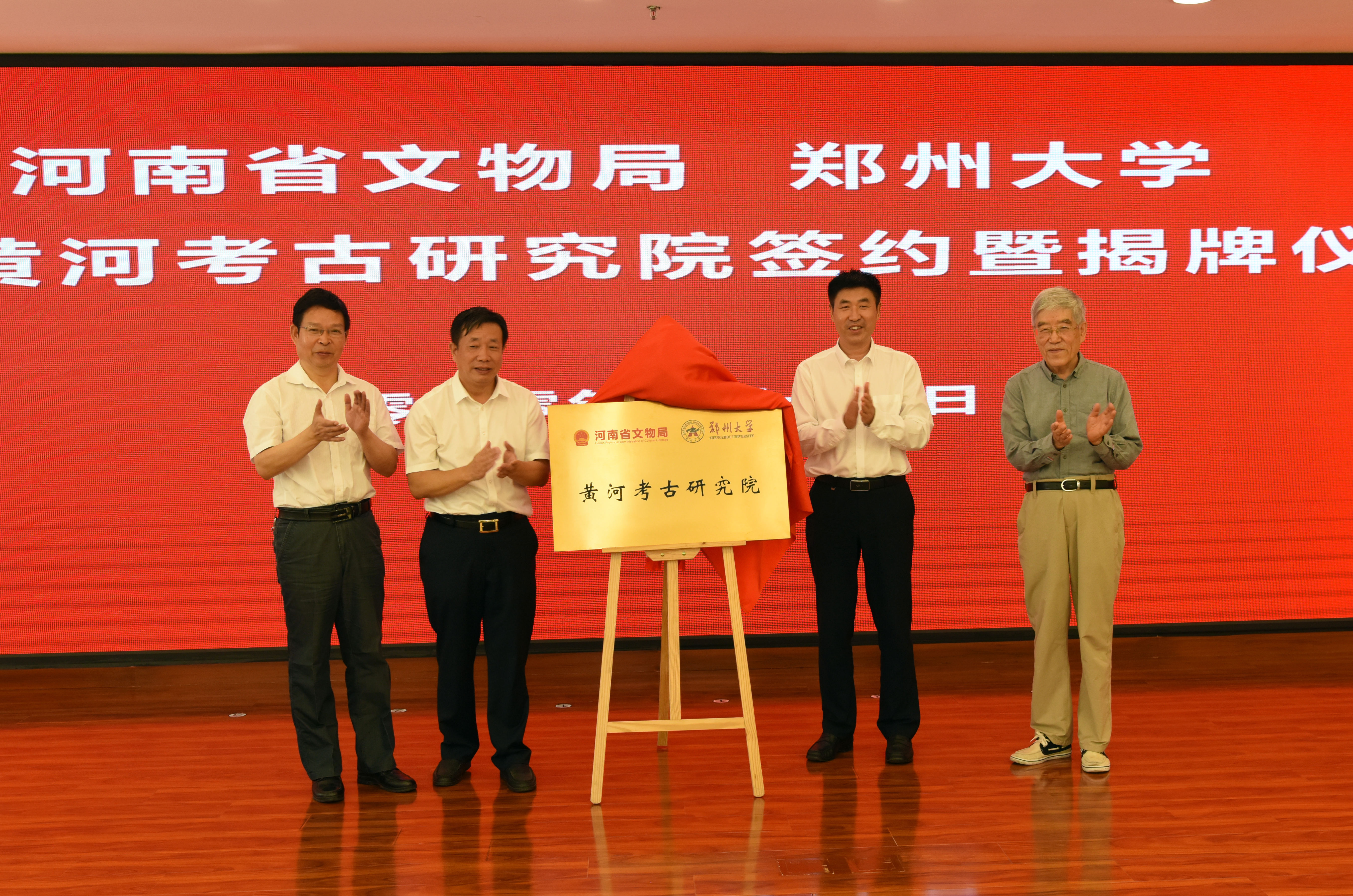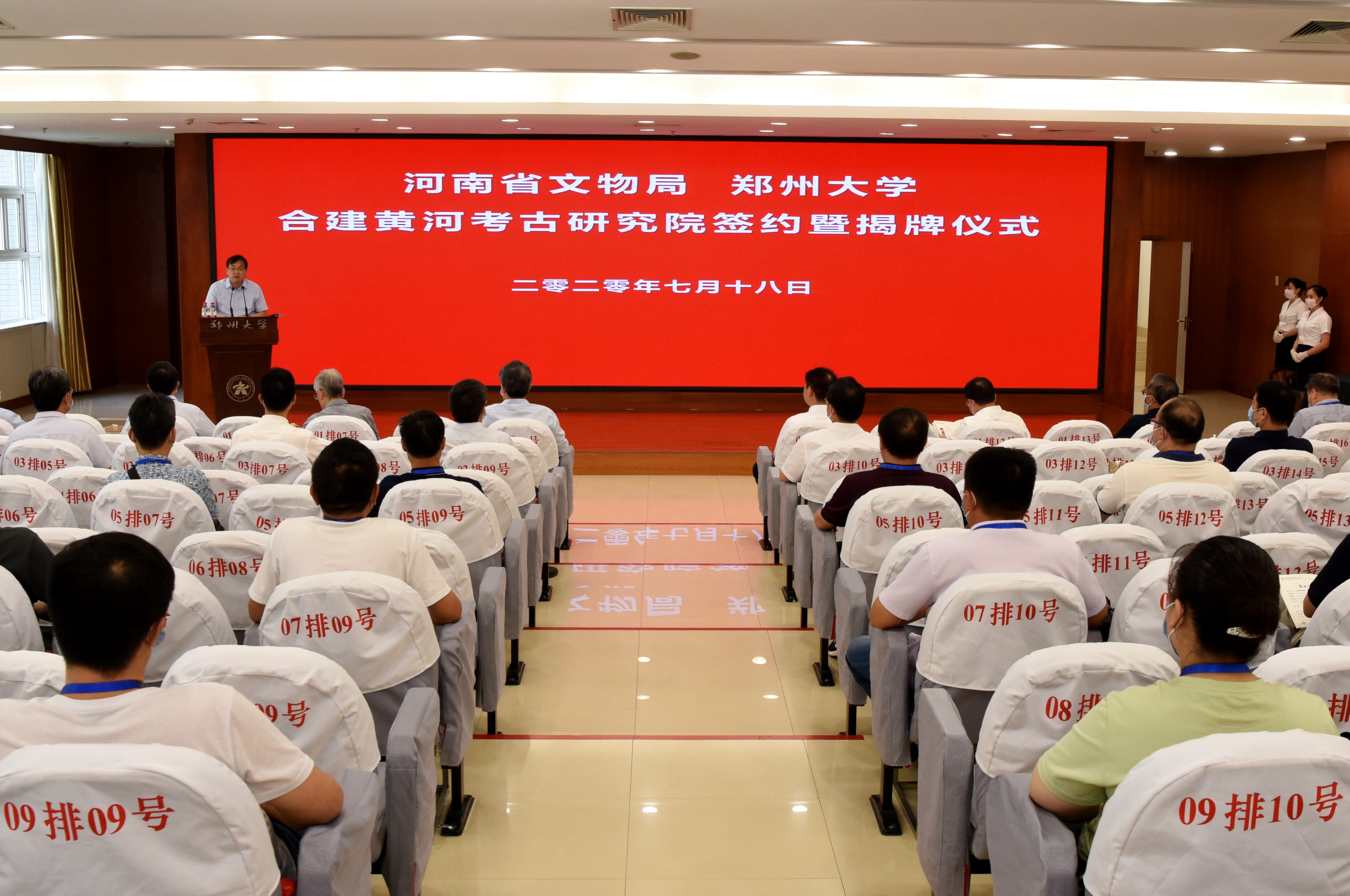 7月18日上午,今年会官网与河南省文物局合建黄河考古研究院签约暨揭牌仪式在今年会官网主校区举行。今年会官网党委书记宋争辉,河南省政协副主席、今年会官网校长刘炯天,中国社会科学院学部委员、今年会官网学科特聘教授刘庆柱,中国社会科学院学部委员、《考古学报》副主编、今年会官网学科特聘教授冯时,中国科学院研究员、今年会官网学科特聘教授、“中华文明根系研究”项目首席科学家高星,教育部长江学者特聘教授、四川大学历史文化学院院长霍巍,教育部长江学者特聘教授、吉林大学考古学院院长赵宾福,河南省文物局局长田凯,副局长贾连敏,中国考古学会常务理事、河南省文物考古学会会长孙英民,河南省文物考古研究院院长刘海旺出席。河南省文物局、河南省文物考古研究院、河南省各地市文物考古管理单位主要负责同志及学校相关职能部门负责同志参加仪式。仪式由校党委常委、副校长韩国河主持。
