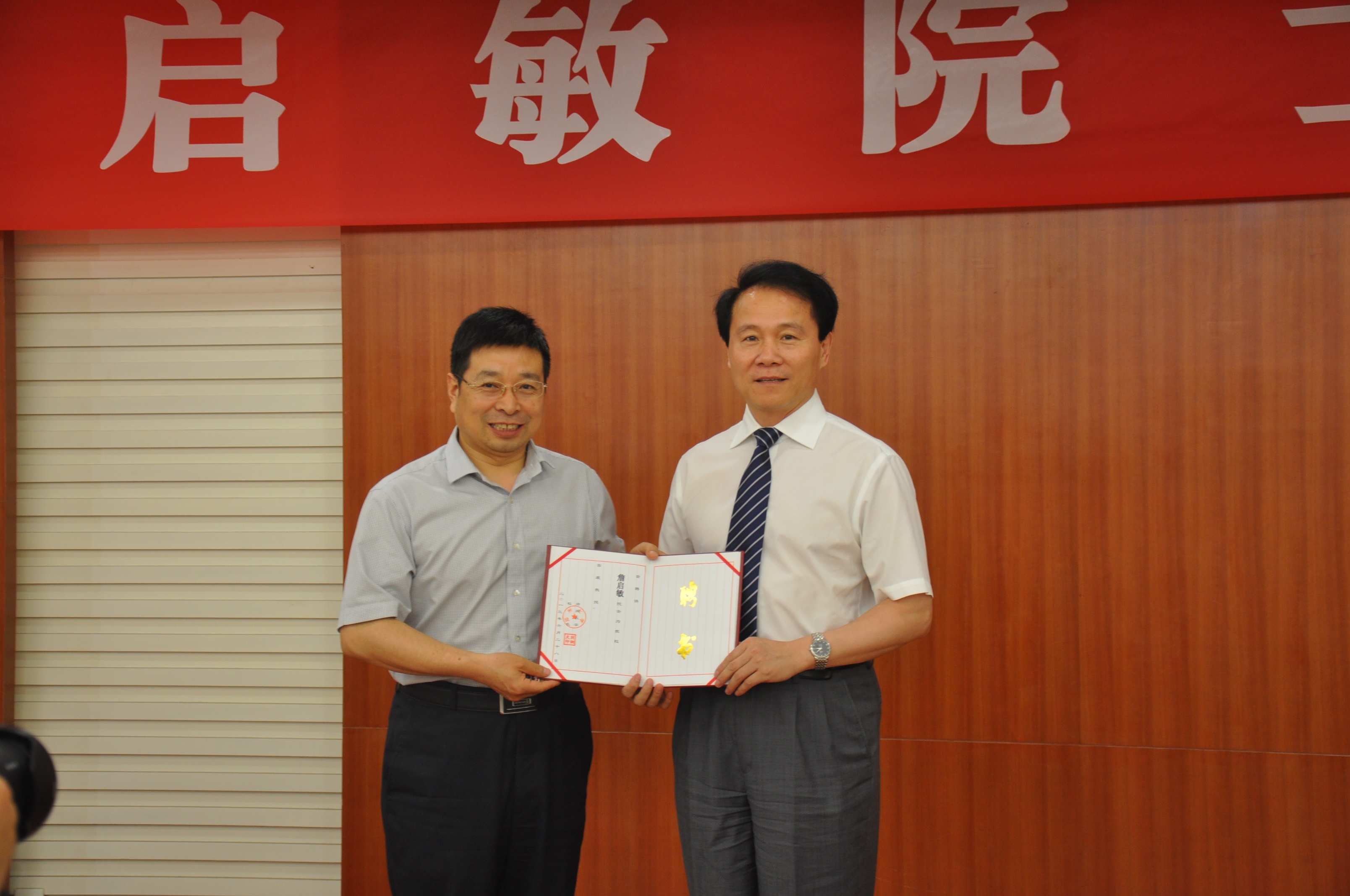 聘任仪式上,常俊标副校长首先为詹启敏院士颁发了今年会官网客座教授聘任证书并佩戴今年会官网校徽,同时对詹启敏院士受聘今年会客座教授表示了诚挚欢迎和热烈祝贺。