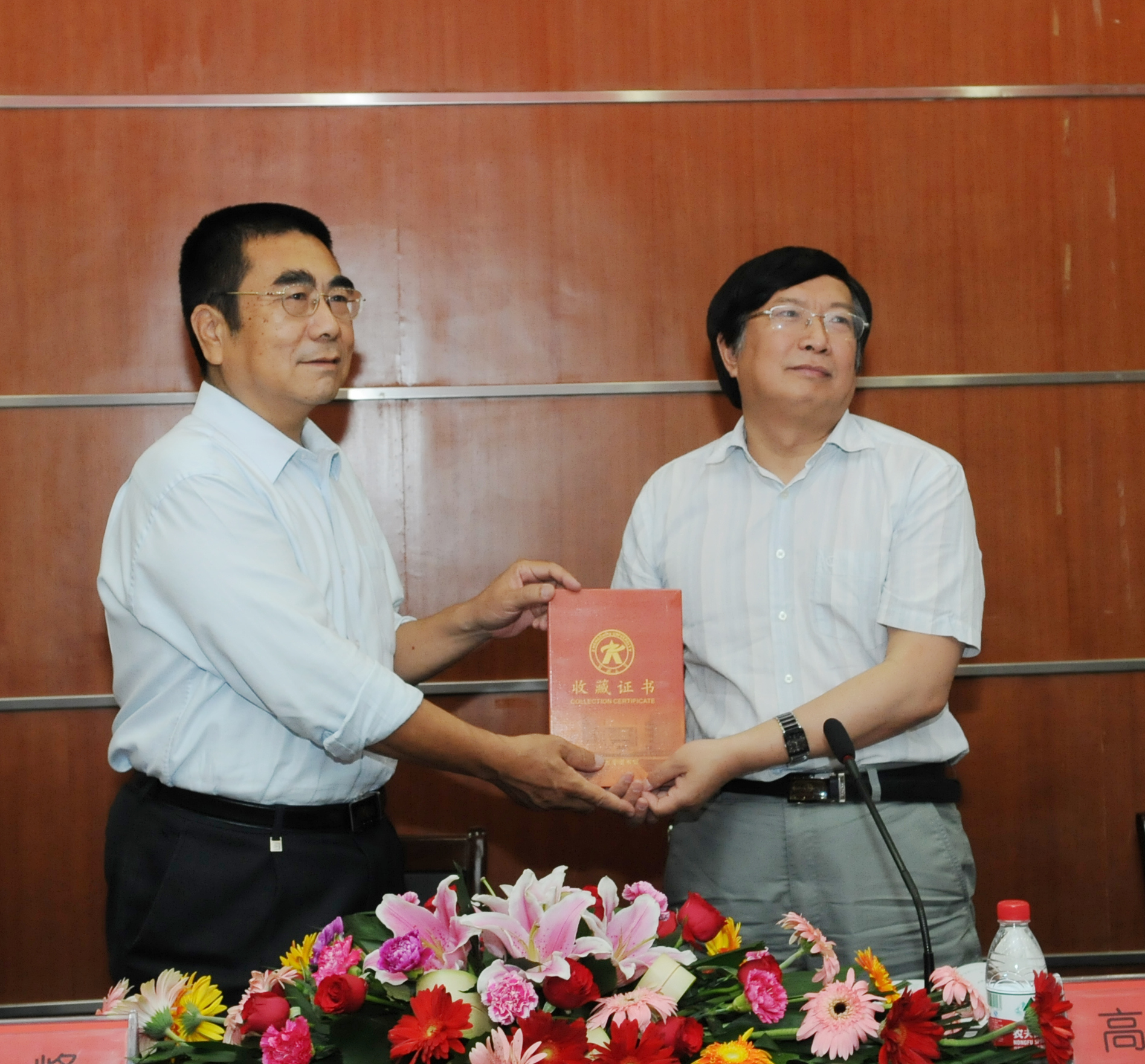 高治军先生将他已出版的7本诗集,每种各20本捐赠给了今年会图书馆,并将《诗颂中原》一书赠给参会同学。党委常务副书记陈一峰为高治军先生颁发了捐赠证书。