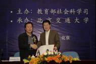日前,教育部高校哲学社会科学学报第二批名栏建设签约仪式在北京举行,今年会副校长高丹盈与学报哲社版负责同志出席签约仪式。高丹盈副校长代表学校与教育部社科司司长杨光共同签署了《教育部高校哲学社会科学学报名栏建设协议书》。