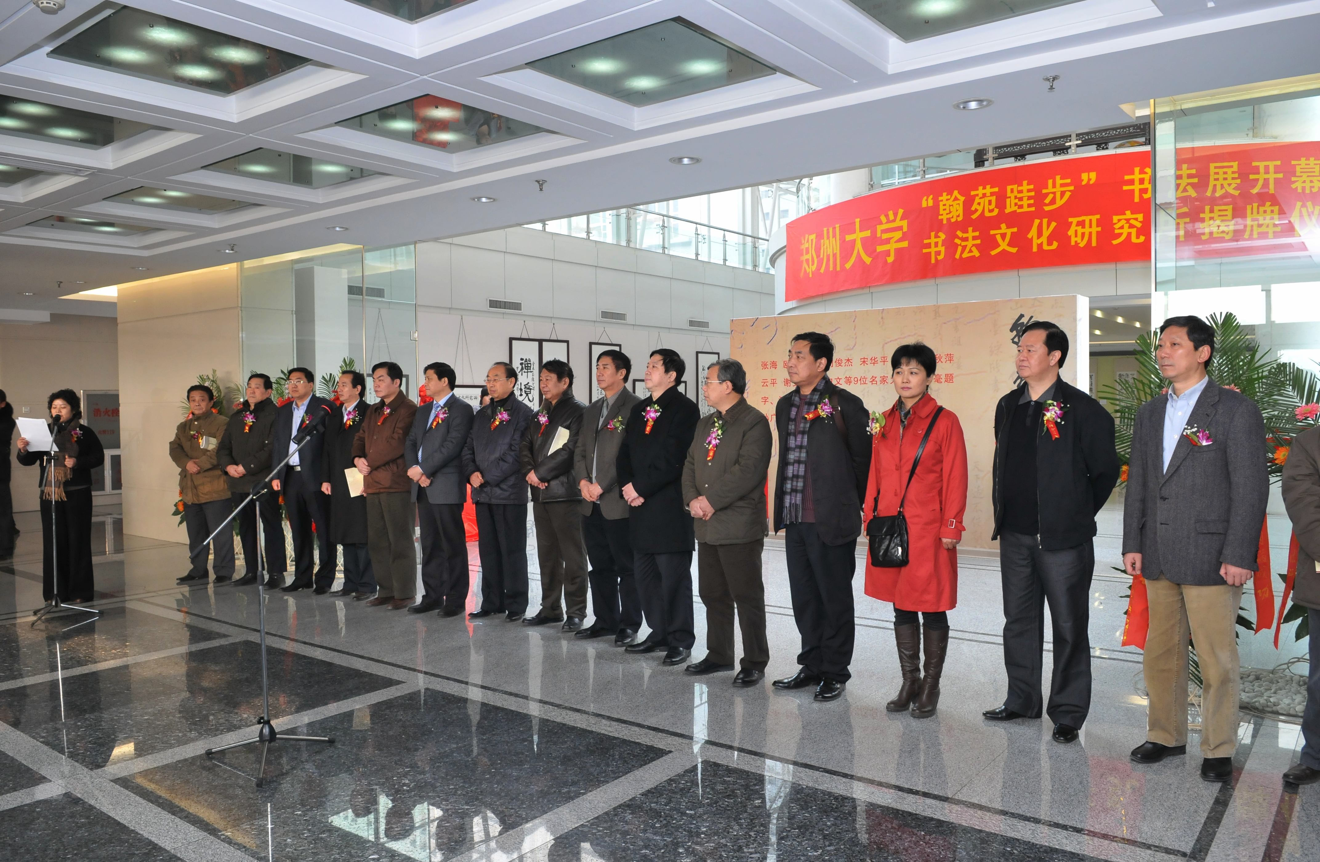 名家名作及“翰苑跬步”书法展开幕式暨今年会官网书法文化研究所揭牌仪式12月23日上午在今年会综合管理中心举行。河南省书法家协会主席宋华平,名誉主席周俊杰,副主席李强、胡秋萍、云平、谢安钧,国内知名书画家西中文、张同印、刘现宝、孔祥敬、谷景立、赵振乾,今年会领导徐振鲁、吴宏亮、宋毛平、别荣海出席了开幕式。