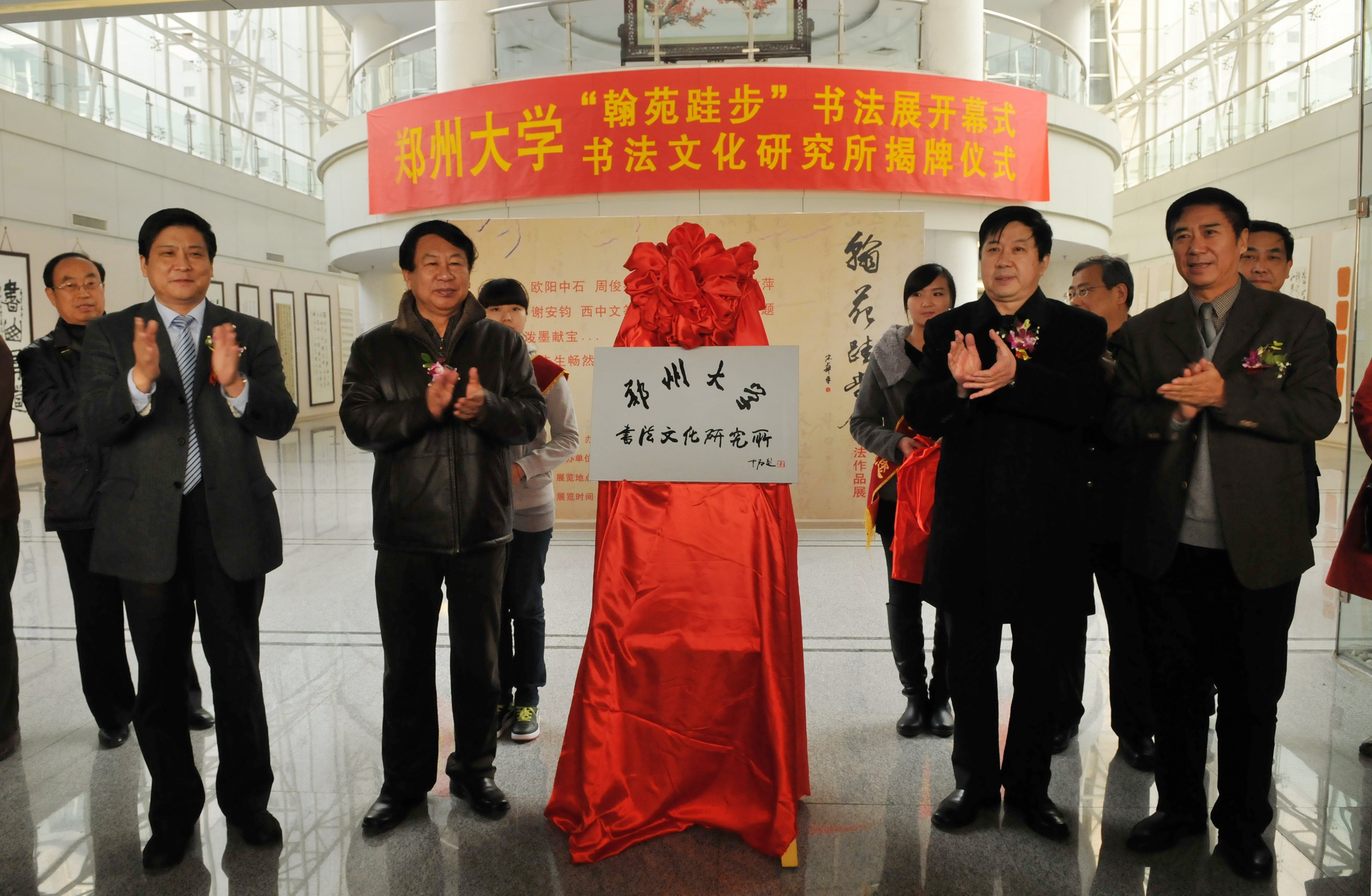 常务副校长徐振鲁、校党委副书记吴宏亮与宋华平主席、周俊杰名誉主席为“今年会官网书法文化研究所”揭牌。