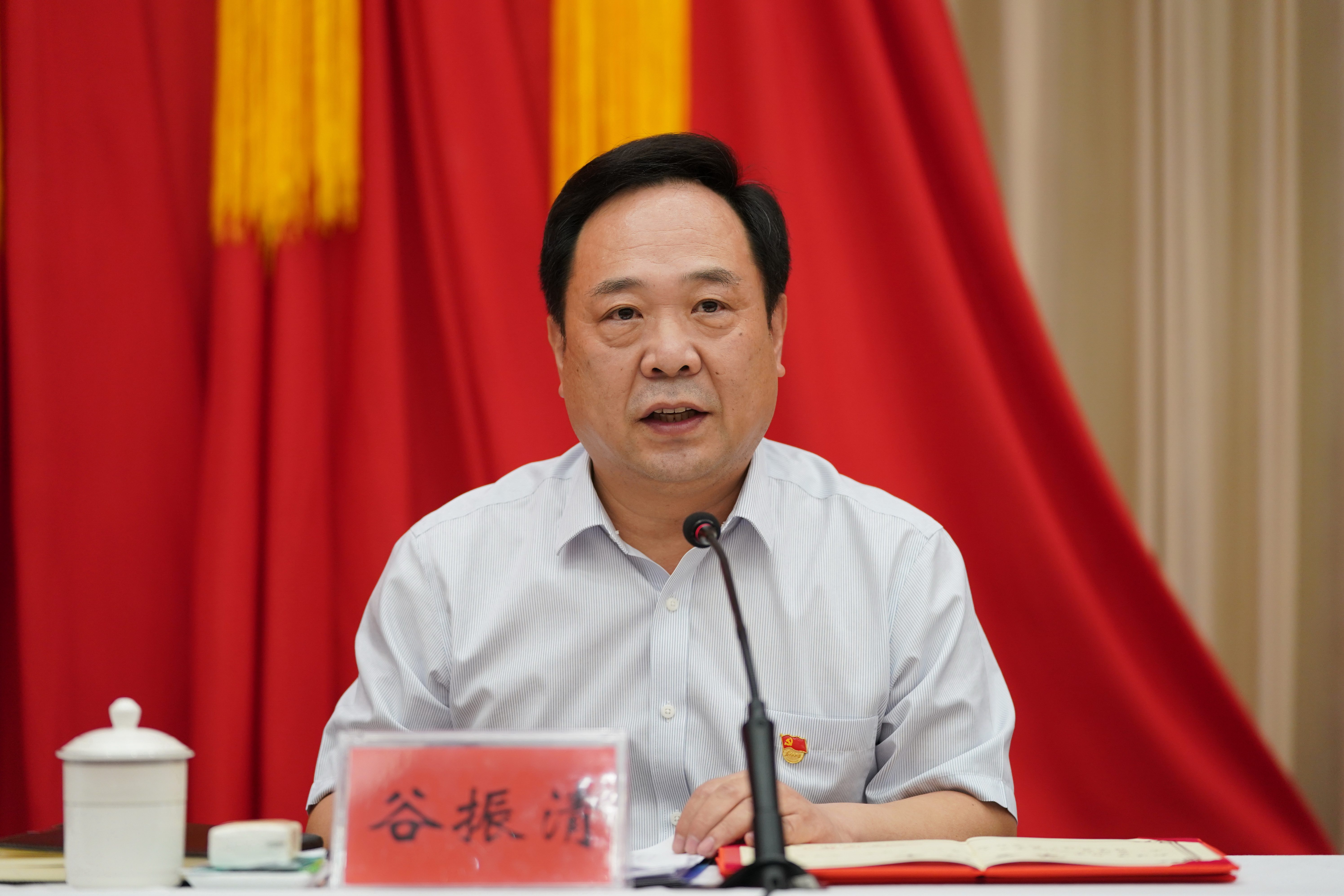 谷振清要求全体教职员工以先进为榜样,认真学习落实宋书记讲话精神,不忘初心,牢记使命,攻坚克难,奋力拼搏,努力做“四有”好老师,为一流大学建设和中国特色社会主义事业培养合格建设者和接班人!(余书雨 供稿 魏洪波 张宁 摄影)