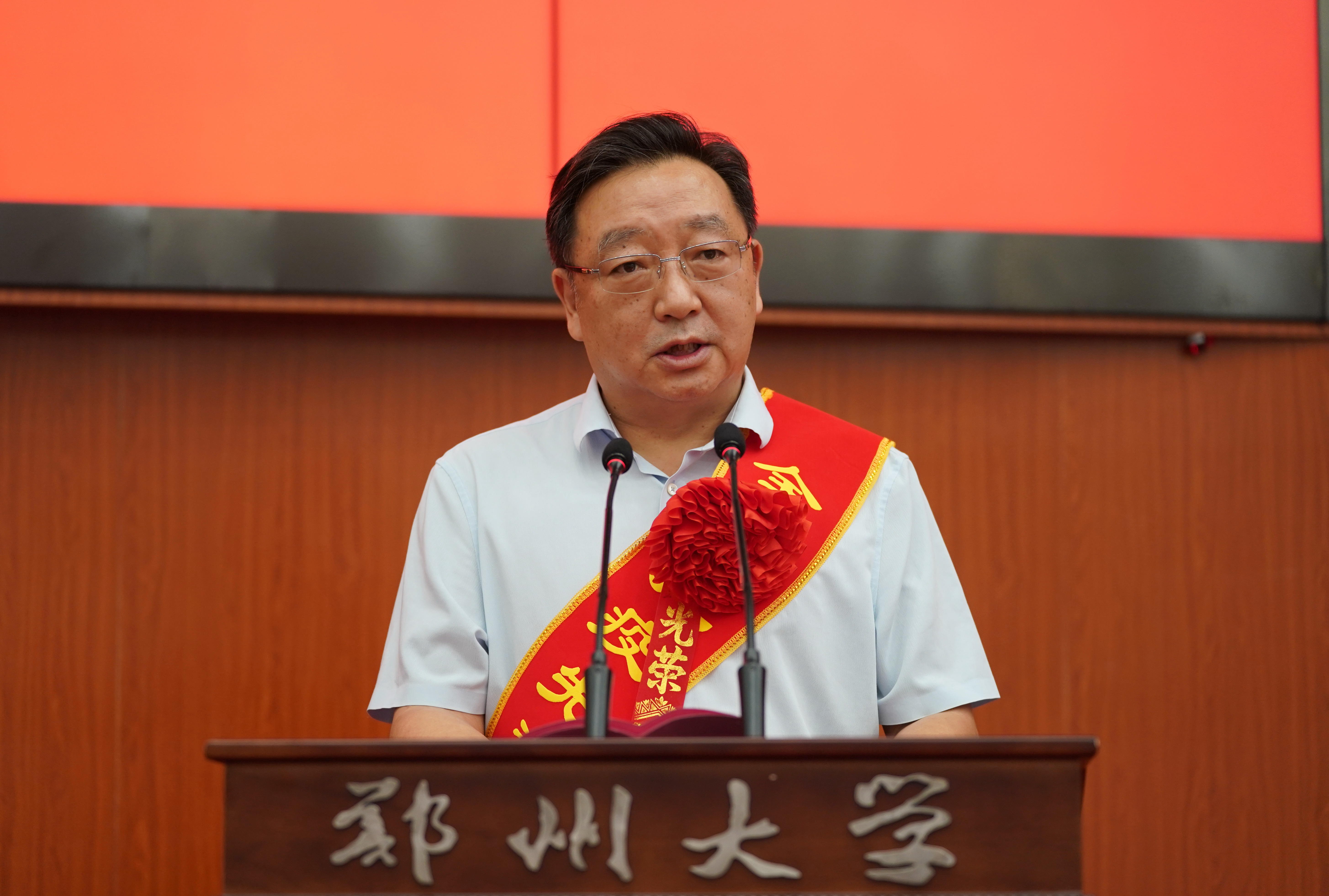 宋争辉讲话,代表学校向全校广大教职员工致以诚挚的节日问候。他指出,一年来,全校师生高举习近平新时代中国特色社会主义思想伟大旗帜,深入贯彻习近平总书记关于教育的重要论述和视察河南重要讲话精神,认真落实全国、全省教育大会精神,坚持高质量党建引领高质量发展。面对传播速度最快、感染范围最广、防控难度最大的重大突发公共卫生事件——新冠肺炎疫情,全校教职工上下一心、迎难而上、共克时艰,奋战在抗击疫情和“停课不停学、不停教”两条战线上,圆满完成既定任务,取得了优异的成绩。他结合全国抗击新冠肺炎疫情表彰大会,围绕学习贯彻习近平总书记重要指示精神,提出了三点意见:一是要牢记使命,坚定理想信念,用习近平新时代中国特色社会主义思想武装头脑,用“四个意识”导航,用“四个自信”强基,用“两个维护”铸魂,把神圣使命和社会责任担在肩上,努力做学生健康成长的指导者和引路人,助力打赢新冠肺炎疫情防控阻击战、教育脱贫攻坚战,肩负时代赋予的神圣使命。二是要修身立德,提升教书育人本领,以“有理想信念、有道德情操、有扎实学识、有仁爱之心”这“四有”为准则,立足各自岗位,自觉加强师德修养、追求高尚情操、忠诚教育事业,在教学科研管理服务岗位上作出新的更大贡献。三是要弘扬抗疫精神,学习抗疫英模展现出的忠诚、担当、奉献的崇高品质,携手并进、开拓进取,共同汇聚起一流大学建设的强大合力。