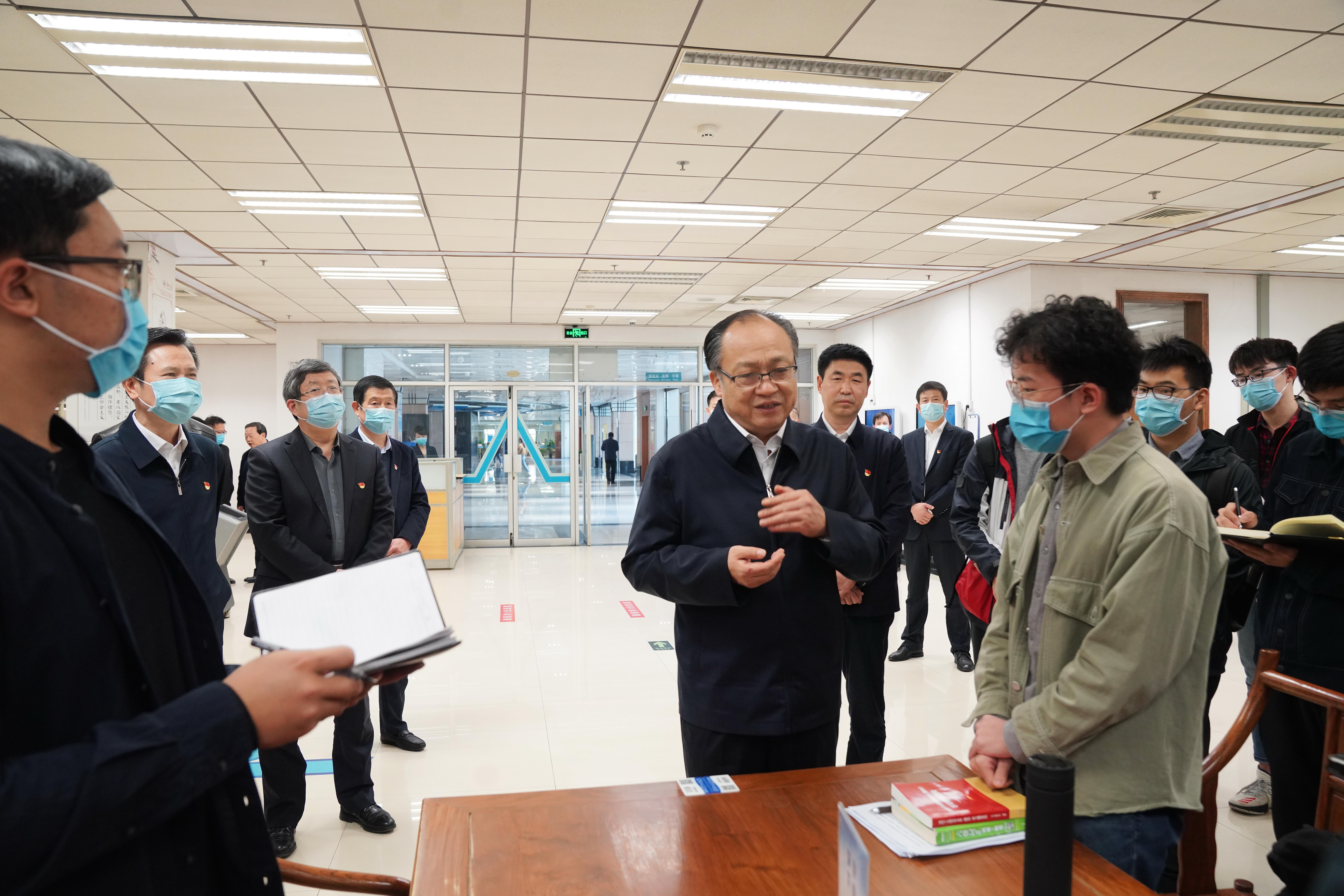 黄守宏首先来到学校图书馆社科书库,亲切地与同学们打招呼,与大家一起讨论他们关心关注的话题。同学们纷纷起立鼓掌,对黄守宏的到来表示欢迎,并围绕热点话题踊跃提问。