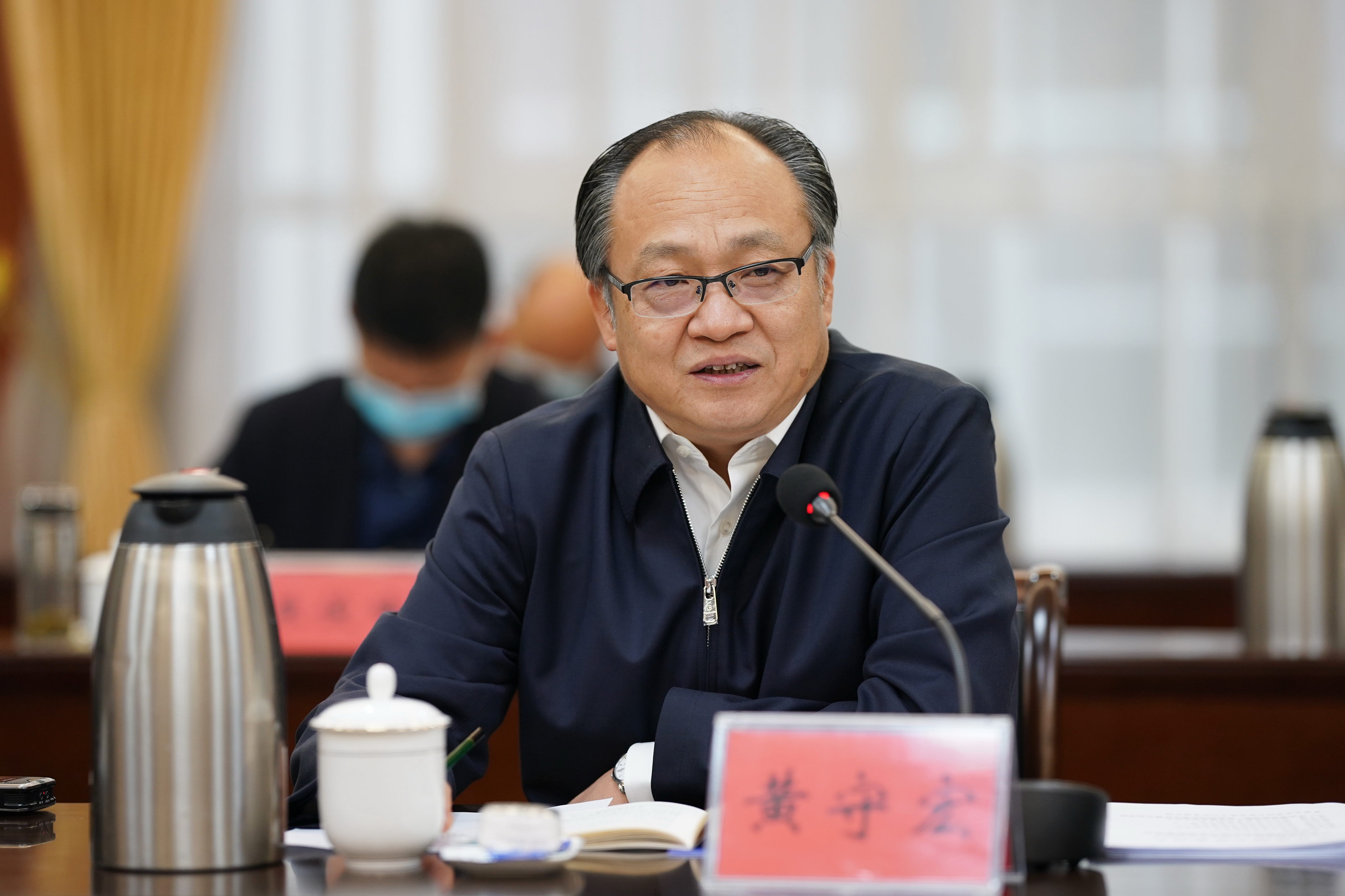 随后,黄守宏来到综合管理中心第四会议室与师生座谈,宣讲交流党的十九届五中全会精神。