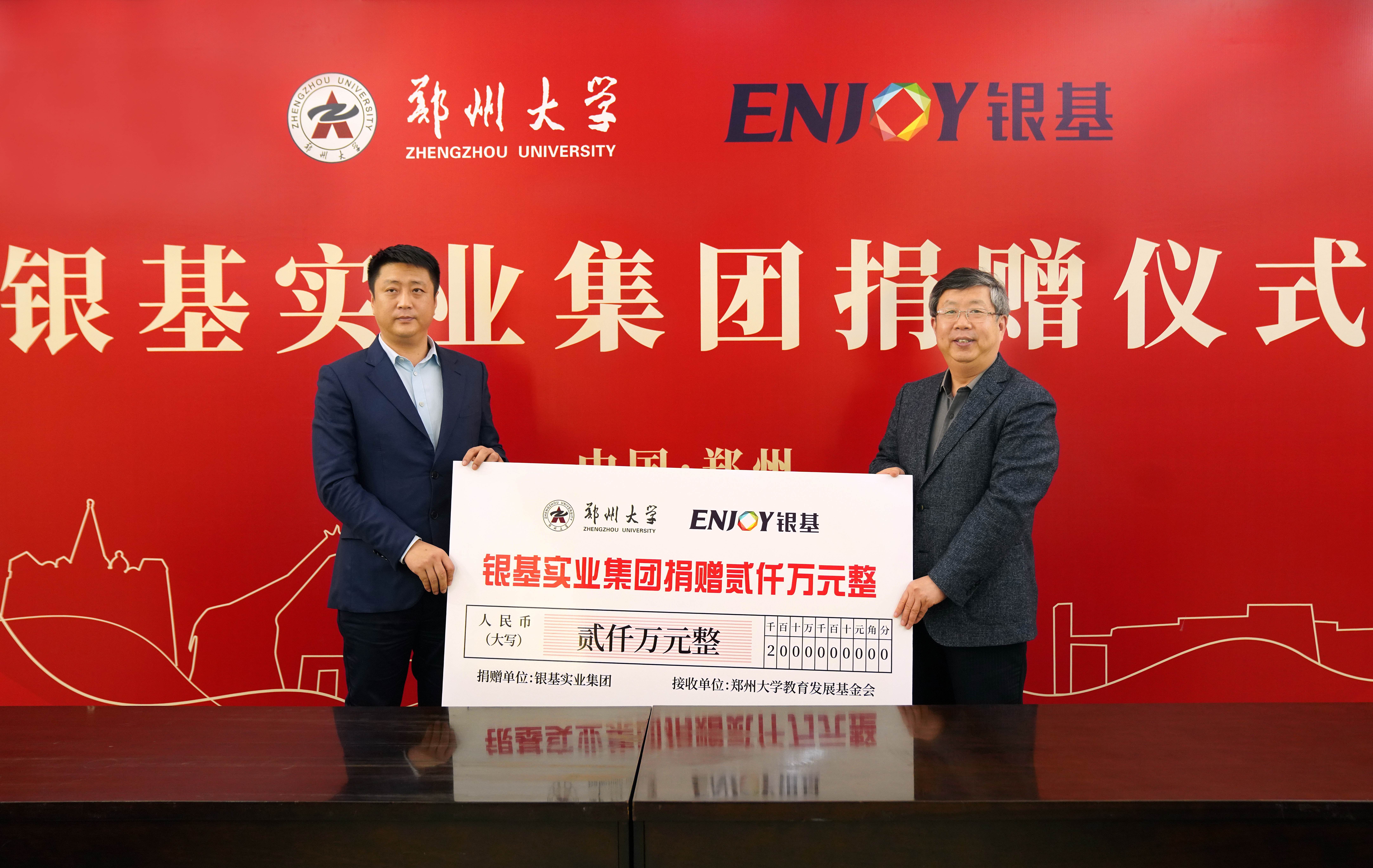 银基集团成立于1993年,至今已发展成以文旅开发、文旅运营为核心的多元化企业集团,为加快城市经济发展,带动郑州乃至河南旅游板块的蓬勃发展贡献着自己的力量。此次向学校捐赠2000万元,设立高层次人才发展基金,为人才强校战略赋能助力,将有力推动学校一流大学建设。(陈菲 阿斯耶 供稿 魏洪波 摄影)