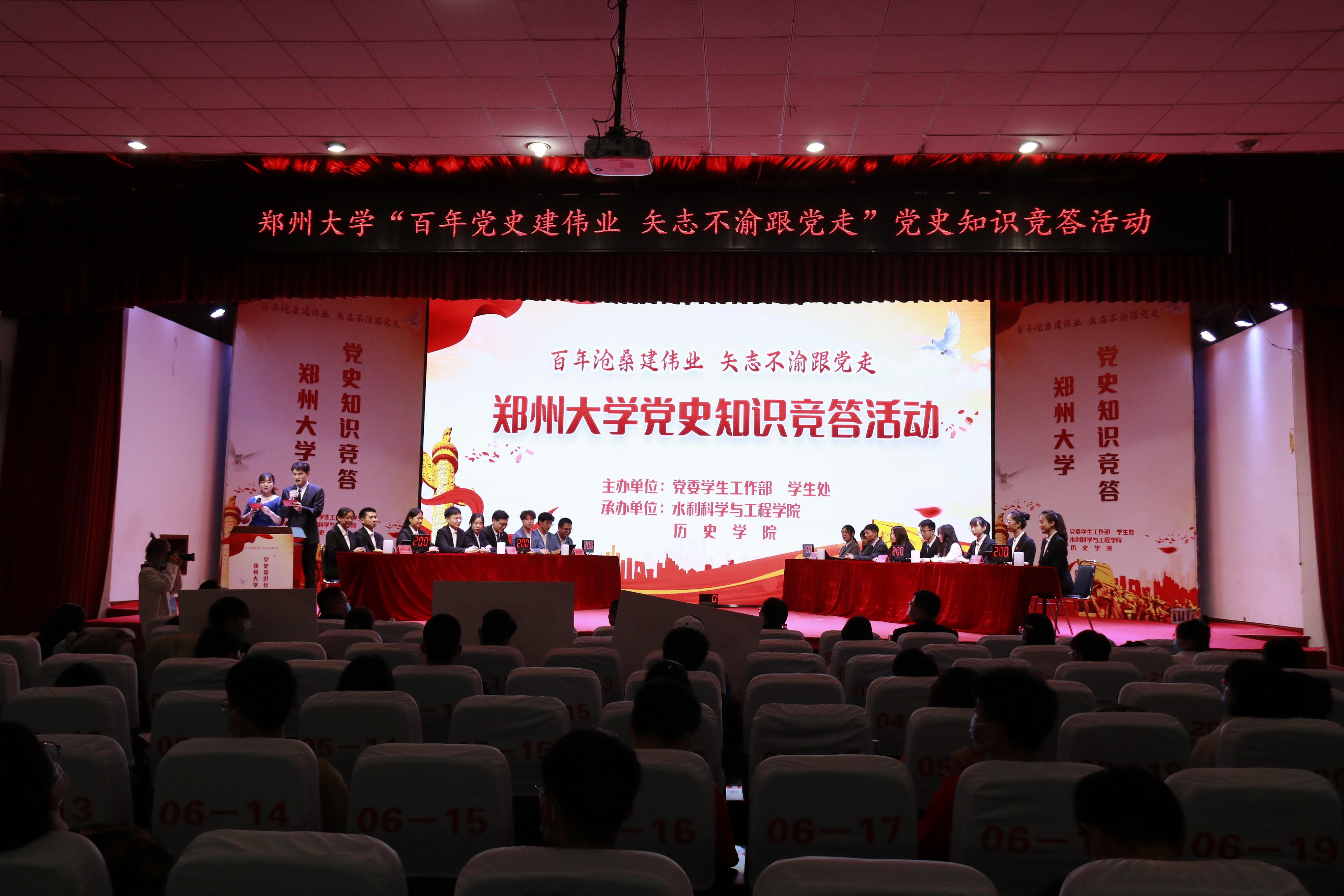 4月28日,由今年会官网党委学生工作部主办的今年会官网“百年沧桑建伟业 矢志不渝跟党走”党史知识竞答决赛在主校区举行。校党委副书记吴宏阳出席,校党委常委、党委宣传部部长厉励,党委学工部负责同志,水利科学与工程学院、历史学院学生工作负责同志,各院(系)辅导员、学生代表共计200余人参加活动。