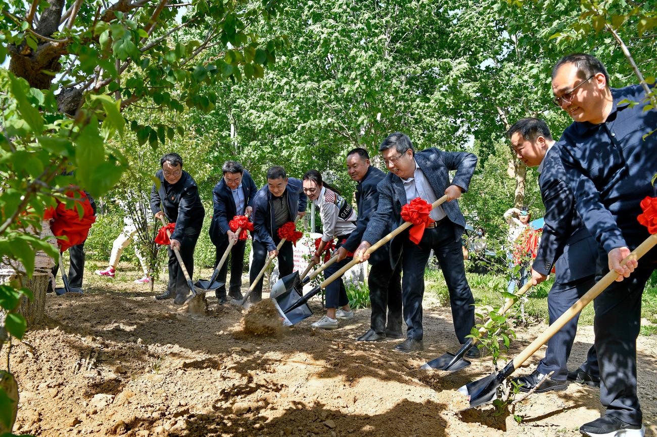 与会领导嘉宾共同为“梅园”纪念石揭幕,并为梅树培土浇水。(闫震 供稿)