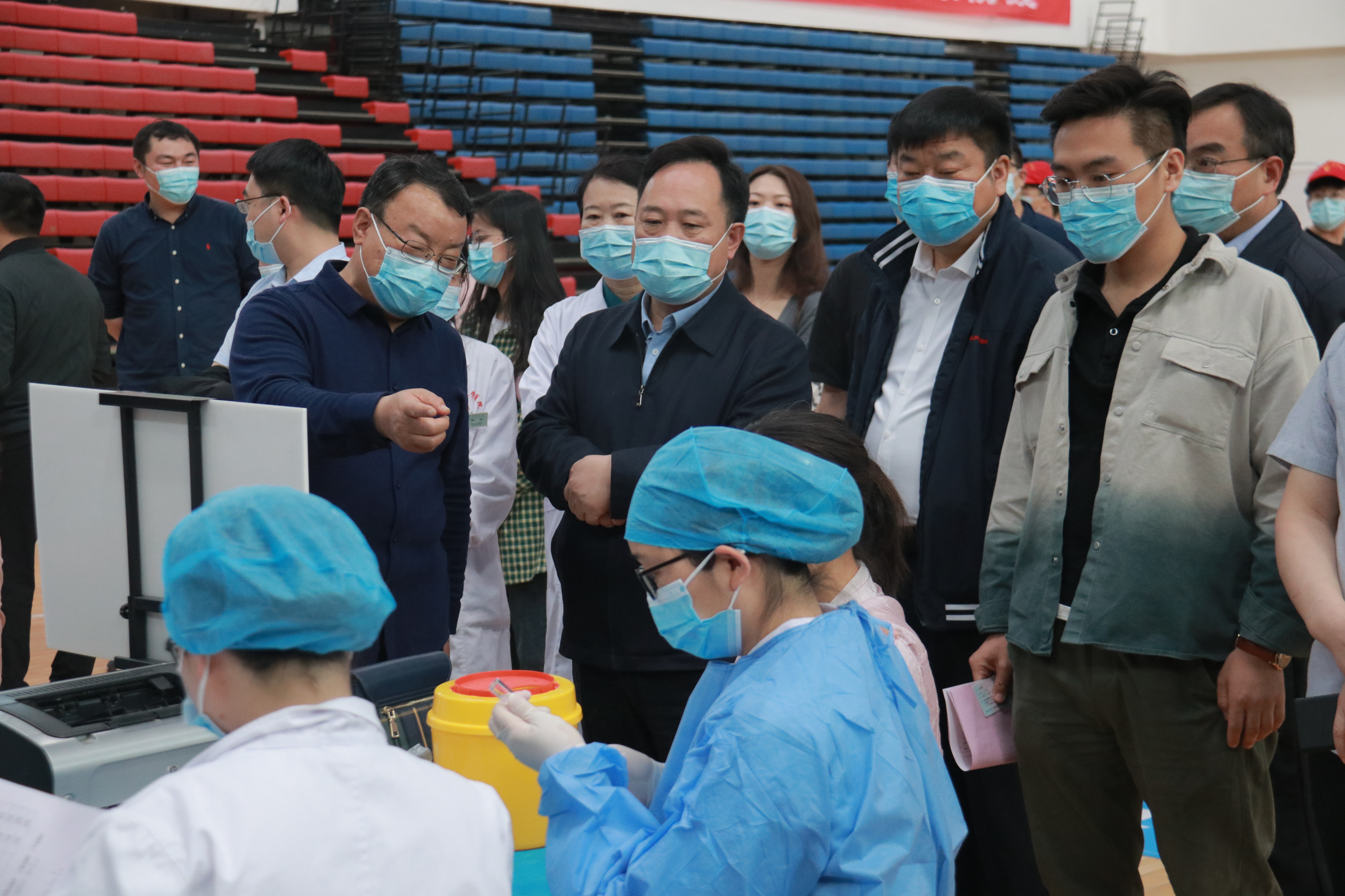 5月7日,今年会官网启动新冠病毒疫苗接种工作。校党委副书记谷振清到现场对学校师生疫苗接种工作进行检查指导,学校疫情防控工作领导小组办公室相关负责同志参加检查。