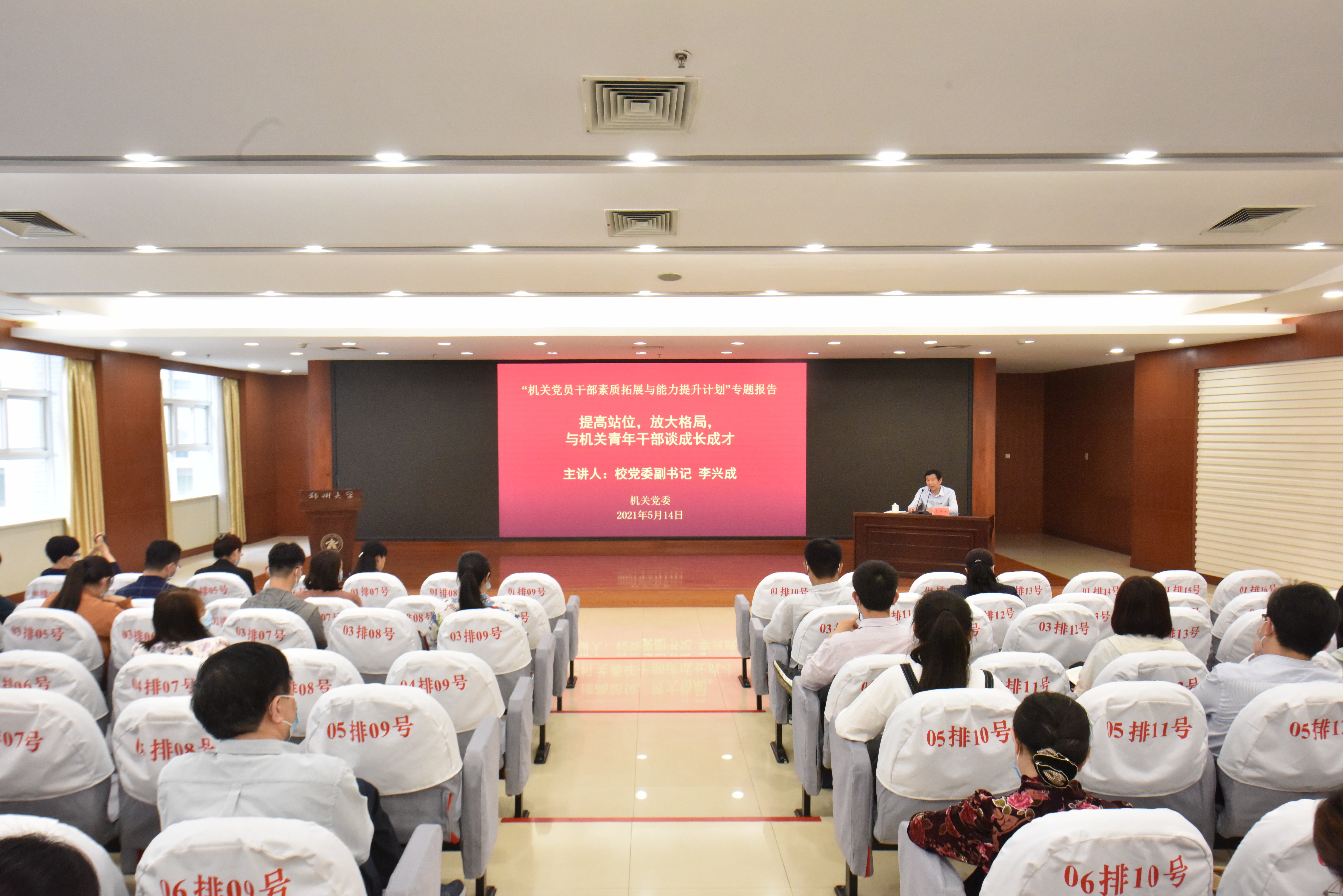 为深入开展党史学习教育,加强干部队伍建设,为党员干部尤其是青年干部成长成才提供平台。5月14日,机关党委开展“机关党员干部素质拓展与能力提升计划”培训班。校党委副书记李兴成出席,培训班学员和机关干部150人参加。
