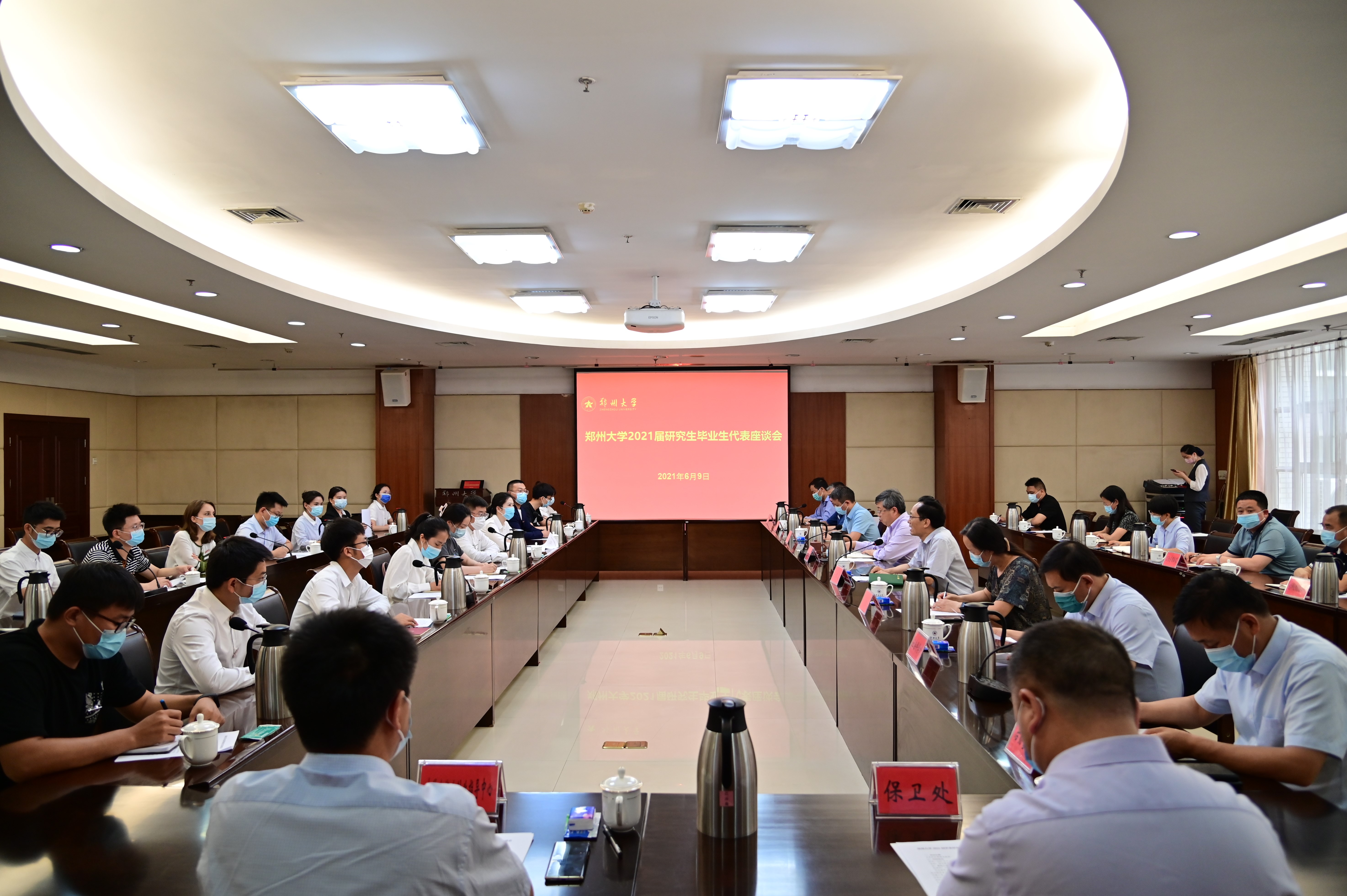 6月9日下午,河南省政协副主席、校长刘炯天在主校区第四会议室与2021届毕业研究生代表座谈交流。校党委常委、副校长关绍康主持座谈会。