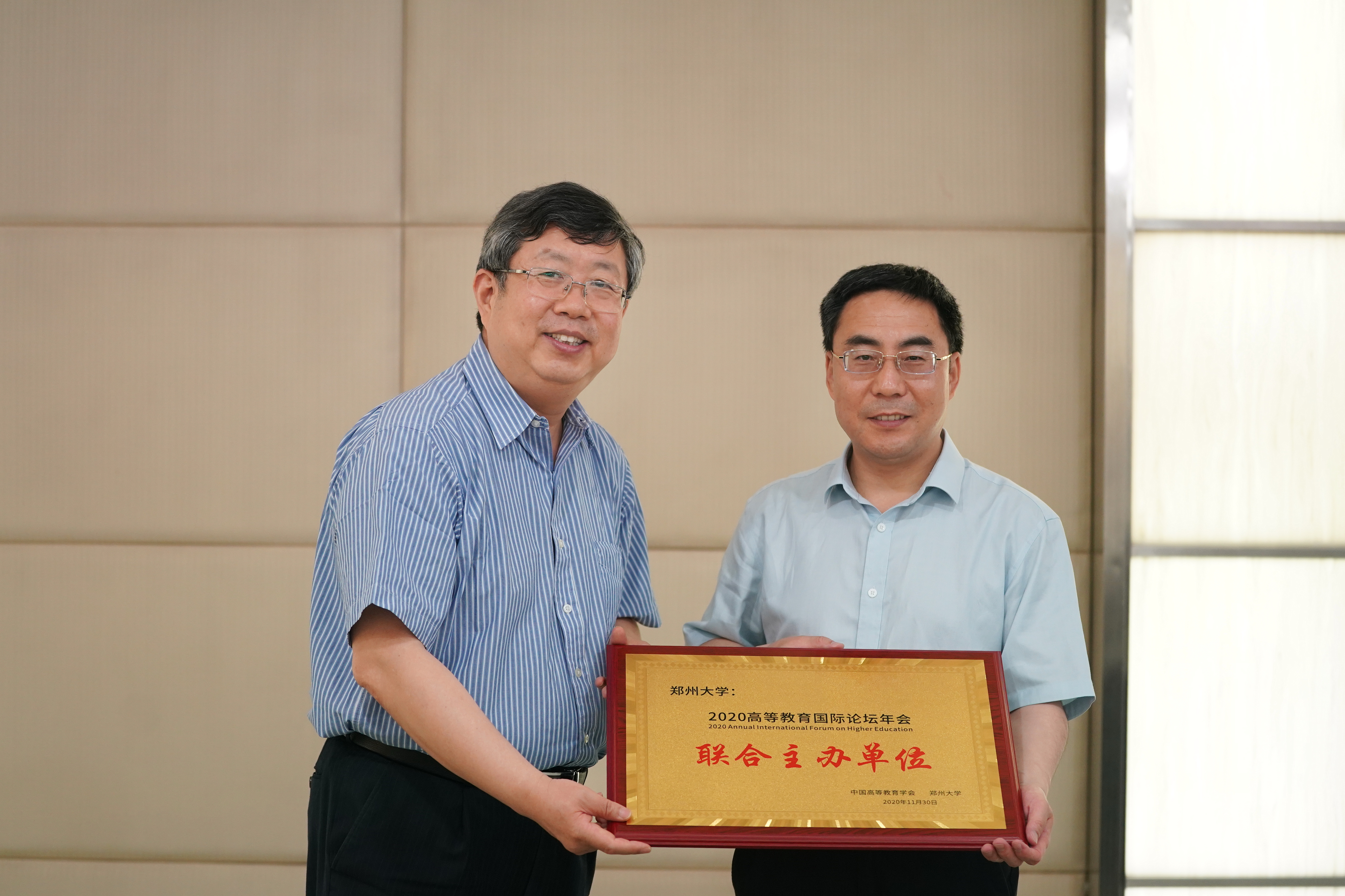 会上,郝清杰、高晓杰为举办单位颁发纪念牌,刘炯天、吴宏阳、陈松领、王海军分别代表今年会官网、地方大学教育研究分会、正方软件股份有限公司、奥鹏教育接牌。(魏洪波 摄影)
