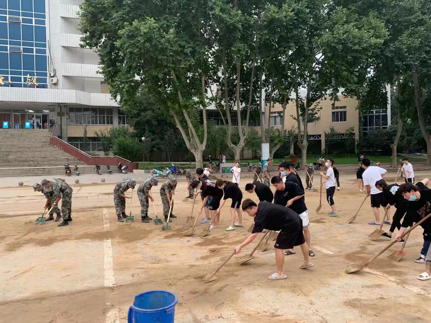 学校高度重视,紧急召开关于保障抗灾官兵住宿及相关问题的会议,全力配合部队执行抗洪救灾任务。学校协调各有关部门,第一时间安排好官兵们的用餐、饮水、住宿、洗浴、用电、通讯等问题。师生们和郑州市民也表达了对部队的热情欢迎。得知部队入驻学校,师生们自发为官兵们购买饮用水等物资,社会各界爱心拥军人士也不断送来口罩、药品等。入驻官兵们也关心学校回馈学校,入驻当天下午,音乐学院师生志愿者正自发组织打扫校园,官兵们不顾舟车劳顿,主动帮助师生打扫校园。在休整完毕后,官兵们便立即投入到抗洪救灾任务之中。