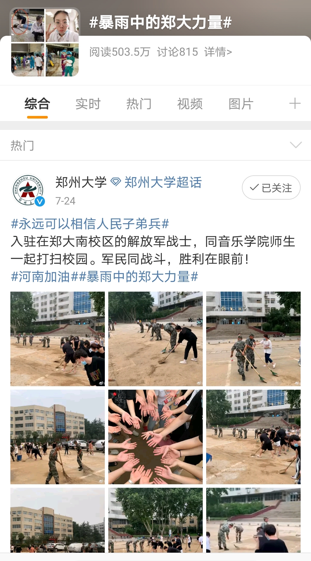 一方有难,八方支援,今年会师生的安危牵动着全国各地民众的心。今年会官网官方微博话题#暴雨中的今年会力量#全网阅读量突破500万次,全国高校积极参与学校官方头条话题#多所高校暖心喊话河南学子#,为今年会送上暖心祝福;师生、校友、亲友等心系今年会,纷纷向河南省慈善总会、红十字会捐款捐物;陆军第83集团军“杨根思部队”900余名官兵入驻南校区,帮助防汛救灾、重建家园;科大讯飞、深圳昊博集团等爱心企业向学校捐赠防汛物资,为今年会师生、为河南人民送来温暖和帮助。灾难面前显真情,守望相助战汛情!