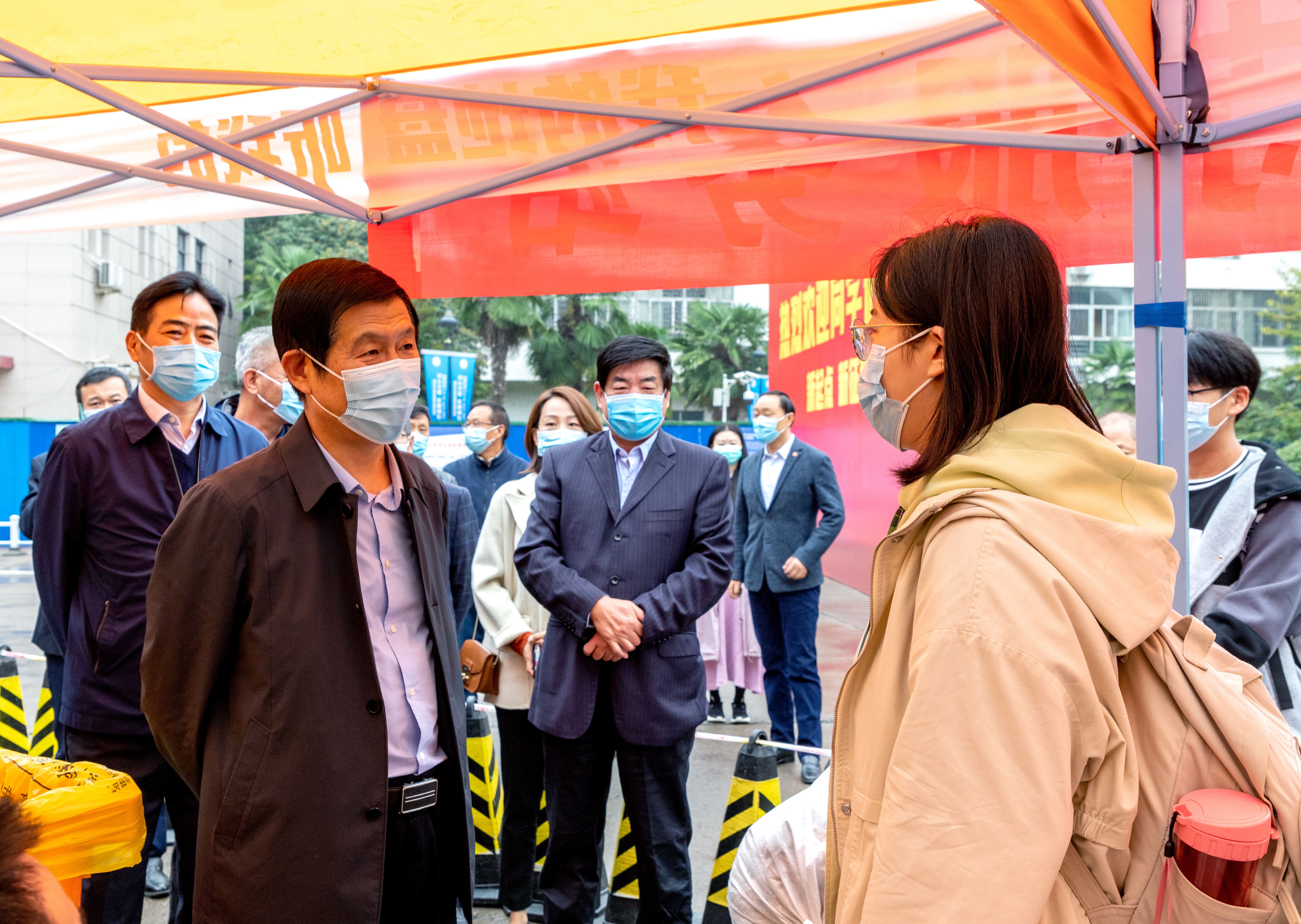 在主校区,校领导先后来到学校南门、东门、餐厅、学生公寓等场所,察看报到流程及行李消杀、体温检测、人员管控情况,并与学生们亲切交谈,询问同学们的假期生活、返校途中防护、住宿饮食等情况。校领导向返校的同学们表示欢迎和慰问,鼓励大家在做好常态化疫情防控的同时,在新学期里以更加积极向上的态度投身学习科研。