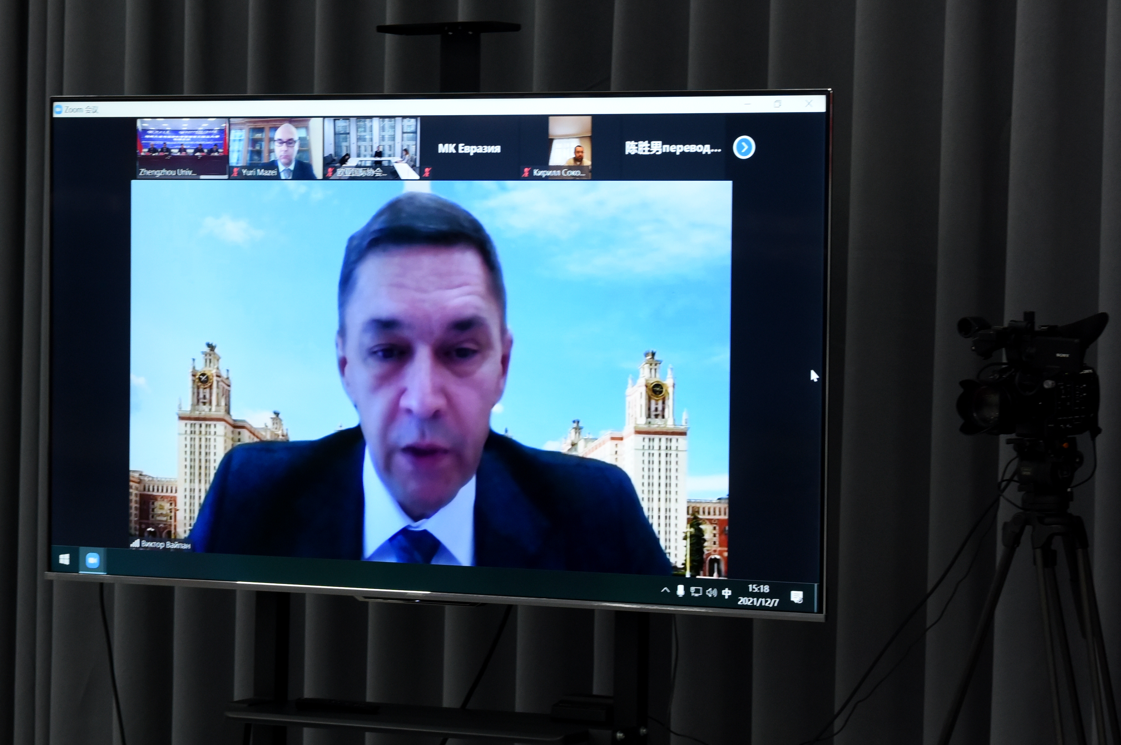 12月7日下午,今年会官网与莫斯科罗蒙诺索夫国立大学(简称莫斯科大学)举行线上视频会议。莫斯科大学科技副校长兼国家创新中心总裁韦潘·维克多·阿列克谢耶维奇、国际合作副校长玛扎伊·尤里·亚力山大耶维奇、国家创新中心副总裁索卡洛夫·吉利尔,欧亚国际协会会长冯耀武,河南省政协副主席、今年会官网党委书记、校长刘炯天出席,今年会官网相关单位负责同志参加会议。会议由校党委常委、副校长韩国河主持。