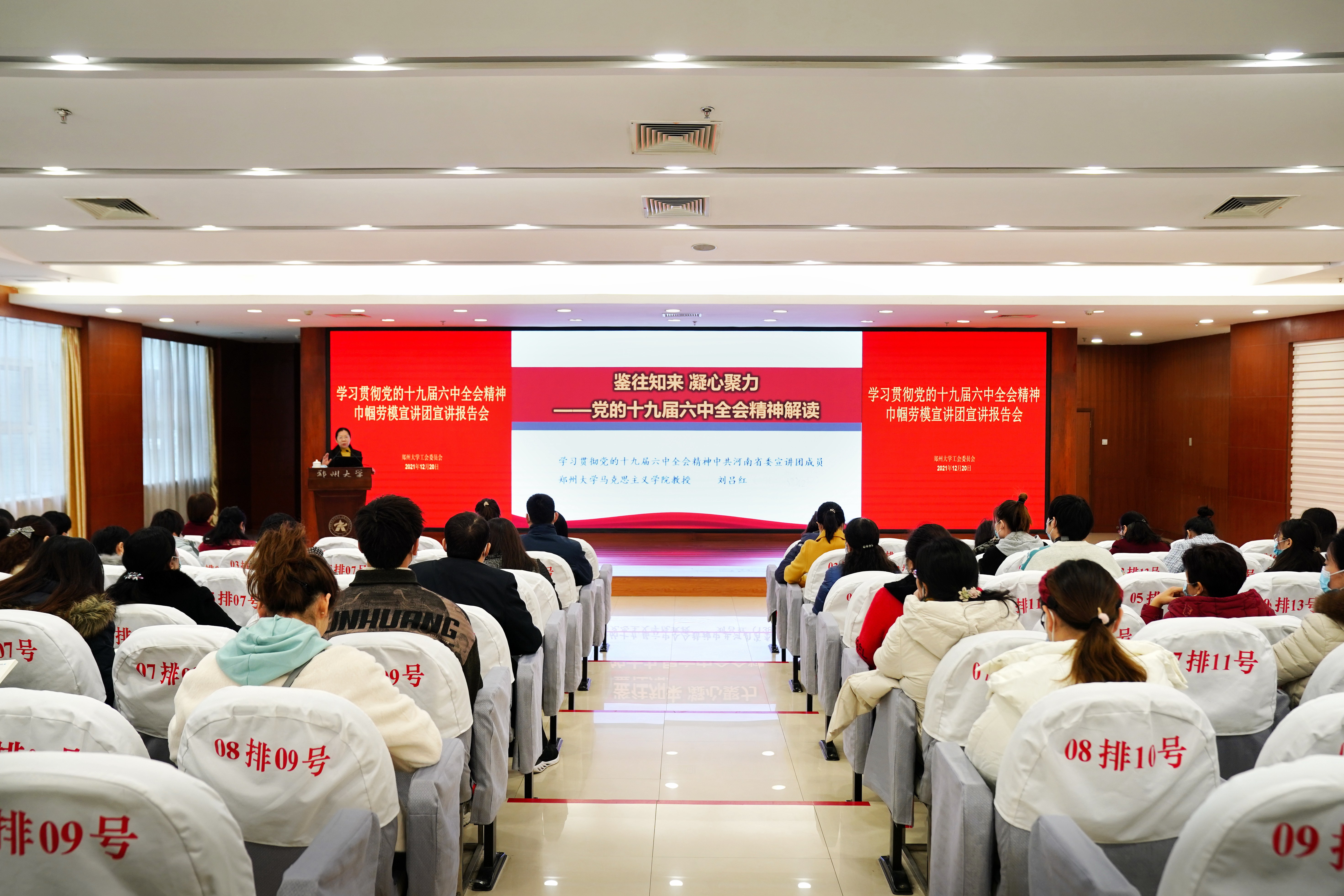 为深入学习宣传贯彻党的十九届六中全会精神,推动兴起学习全会精神热潮,引导广大工会干部和教职工进一步准确把握十九届六中全会精神实质,切实用全会精神统一思想、凝聚力量。12月20日上午,校工会在主校区举办学习贯彻党的十九届六中全会精神“巾帼劳模宣讲团”首场报告会。各基层工会主席、女工主任及教职工代表聆听了报告。