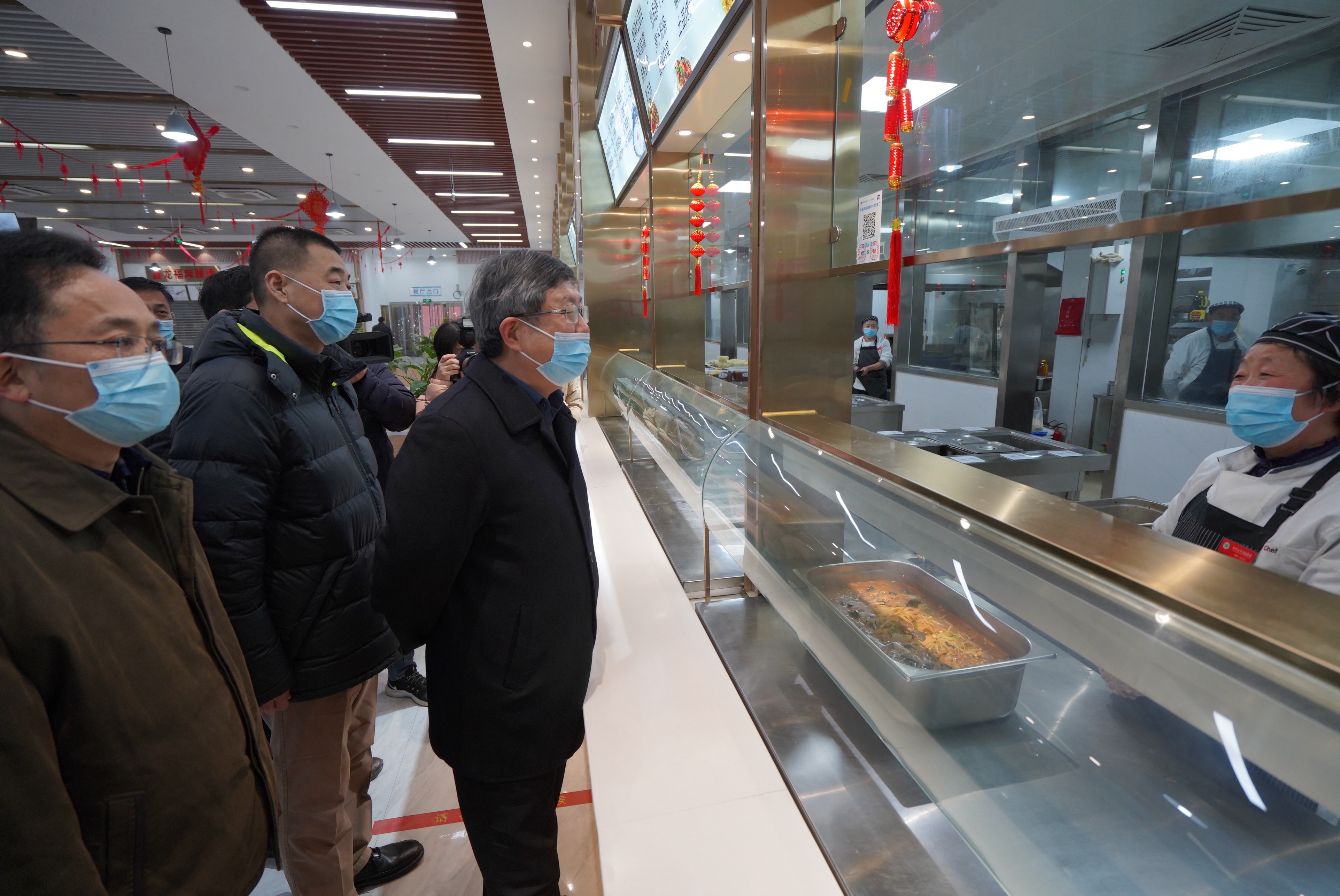 在竞舸园餐厅,刘炯天查看餐饮供应情况,强调要丰富菜品种类,满足师生个性化需求,并向坚守一线的后勤职工表示慰问和感谢。他要求相关部门要贴心细致做好服务保障,落实疫情防控、食品卫生和安全生产要求,关心关爱每一名留校学生,统筹谋划春季开学准备工作,确保师生生命健康和校园平安稳定,营造温馨和谐的节日氛围。