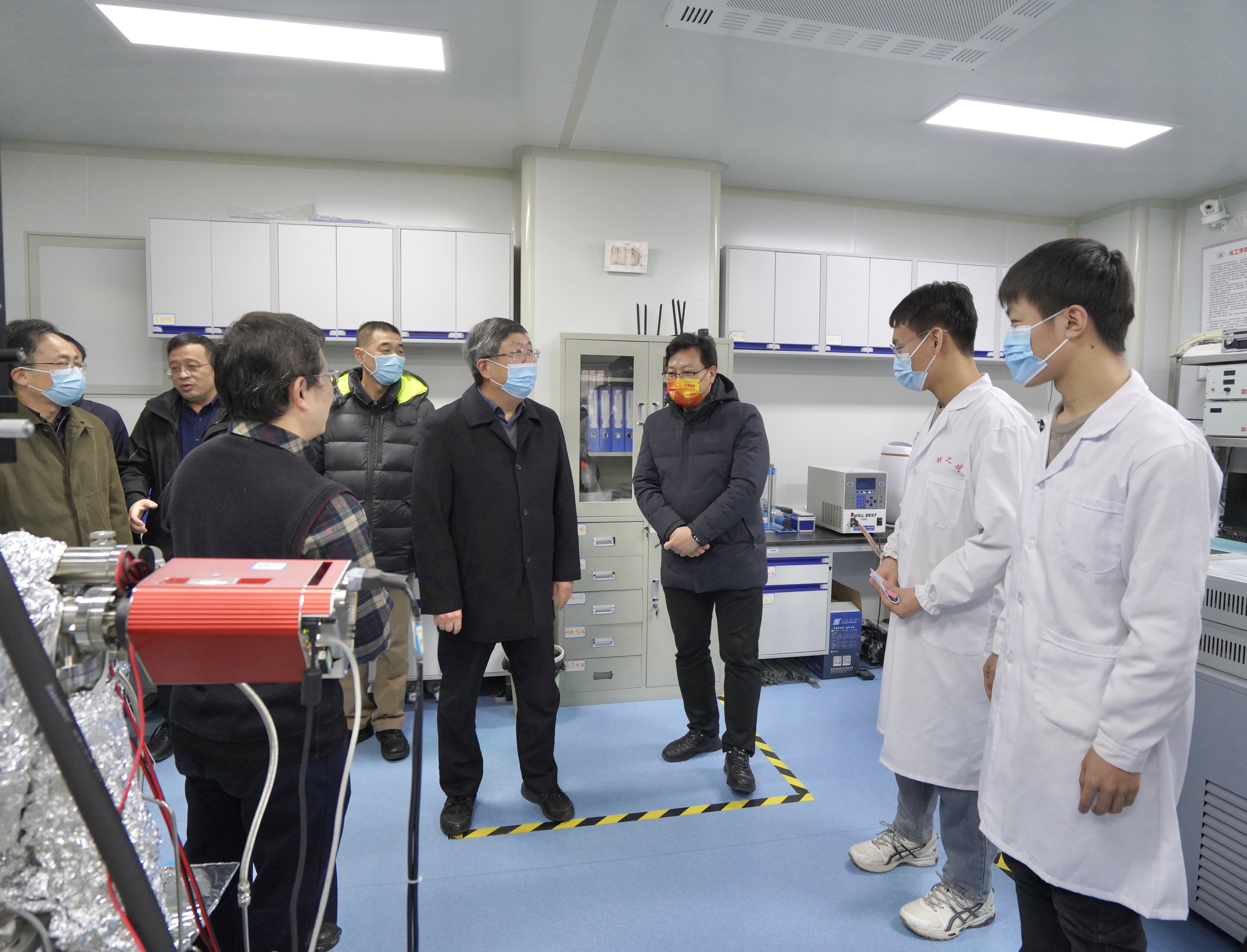 省政协副主席、校党委书记、校长刘炯天一行在实验室看望慰问留校学生