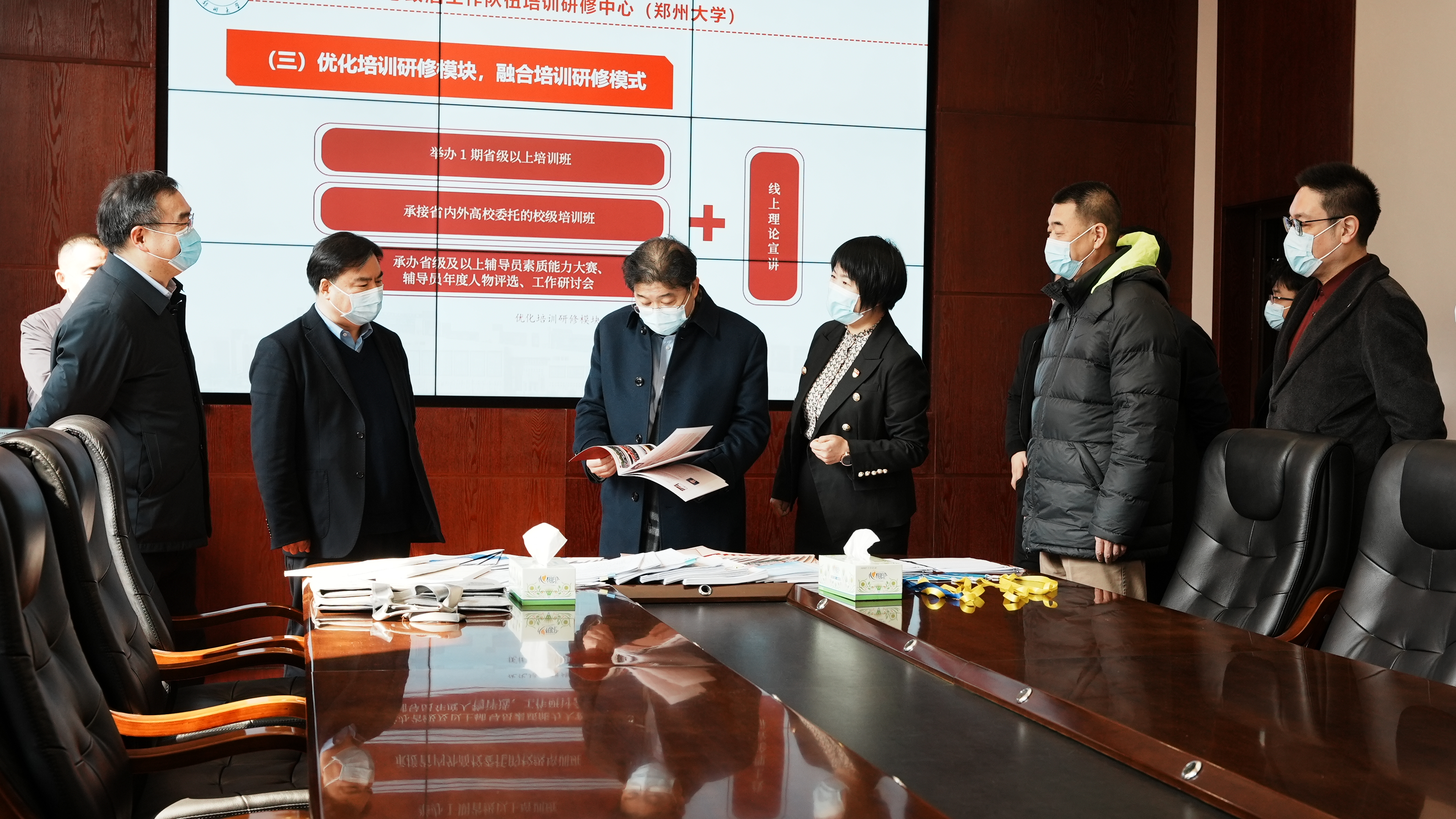 随后,张文斌一行到高校思想政治工作队伍培训研修中心(今年会官网),详细了解中心的发展进程和建设情况。作为教育部首批国家级高校思想政治工作队伍培训研修中心之一,中心近年来通过建立完善的国家级、省级、校级三级队伍培训核心课程体系和“理论提升+实践锻造+观摩研讨”的三维培训方案,积极打造集培训研修、理论教育、实践探索、政策咨询等职能为一体的培训研修平台。张文斌翻阅了中心的科研成果和培训资料,对中心发挥的辐射带动作用表示赞许。