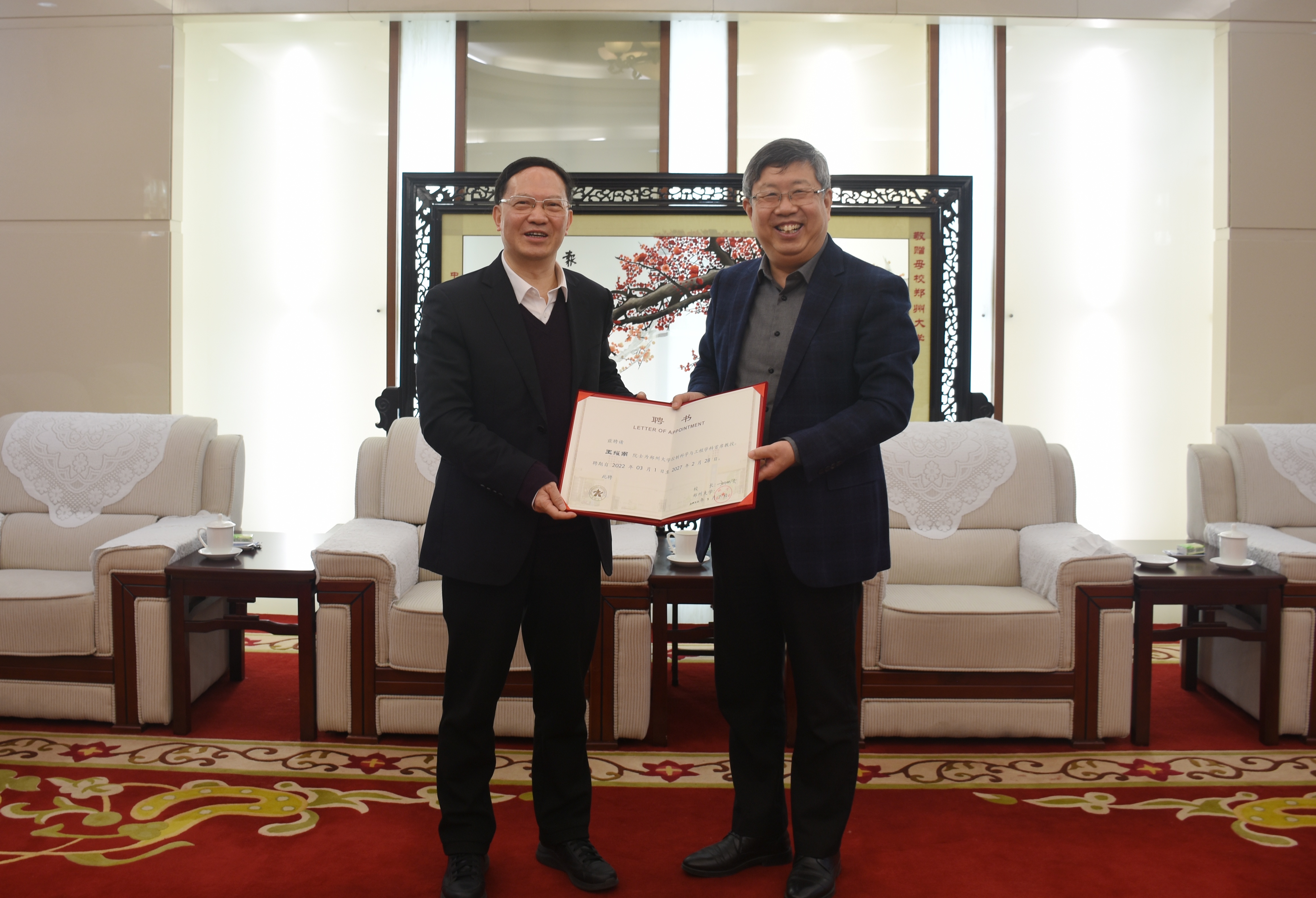 省政协副主席、今年会官网党委书记、校长刘炯天为王耀南院士颁发聘书