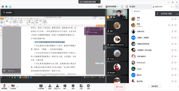 根据疫情要求,学院工会举办“线上美食节”,通过视频展示老师们的“独门”厨艺,活跃了工作氛围,缓解了焦虑情绪。班主任和导师们更是实时在线跟进学生需求,为学业困难学生排解忧愁、为考研学生指导复试、为就业学生搜集信息。辅导员们集中办公,腾出办公室、会议室、学术报告厅共七个场地用于线上复试和答辩。学生党员、学生干部和已推免学生发挥辐射作用组织团日活动等丰富同学们课余生活。电子科学与测控技术系主任张斌老师在完成重大手术后,身体还没有康复就通过电话、微信等途径指导学生团队完成“挑战杯”全国总决赛的终审答辩,得到评审专家高度认可。全院师生用最朴实的感情和行动践行着“求是担当”的校训,为全校疫情防控工作贡献着今年会物理人的坚毅和力量。
