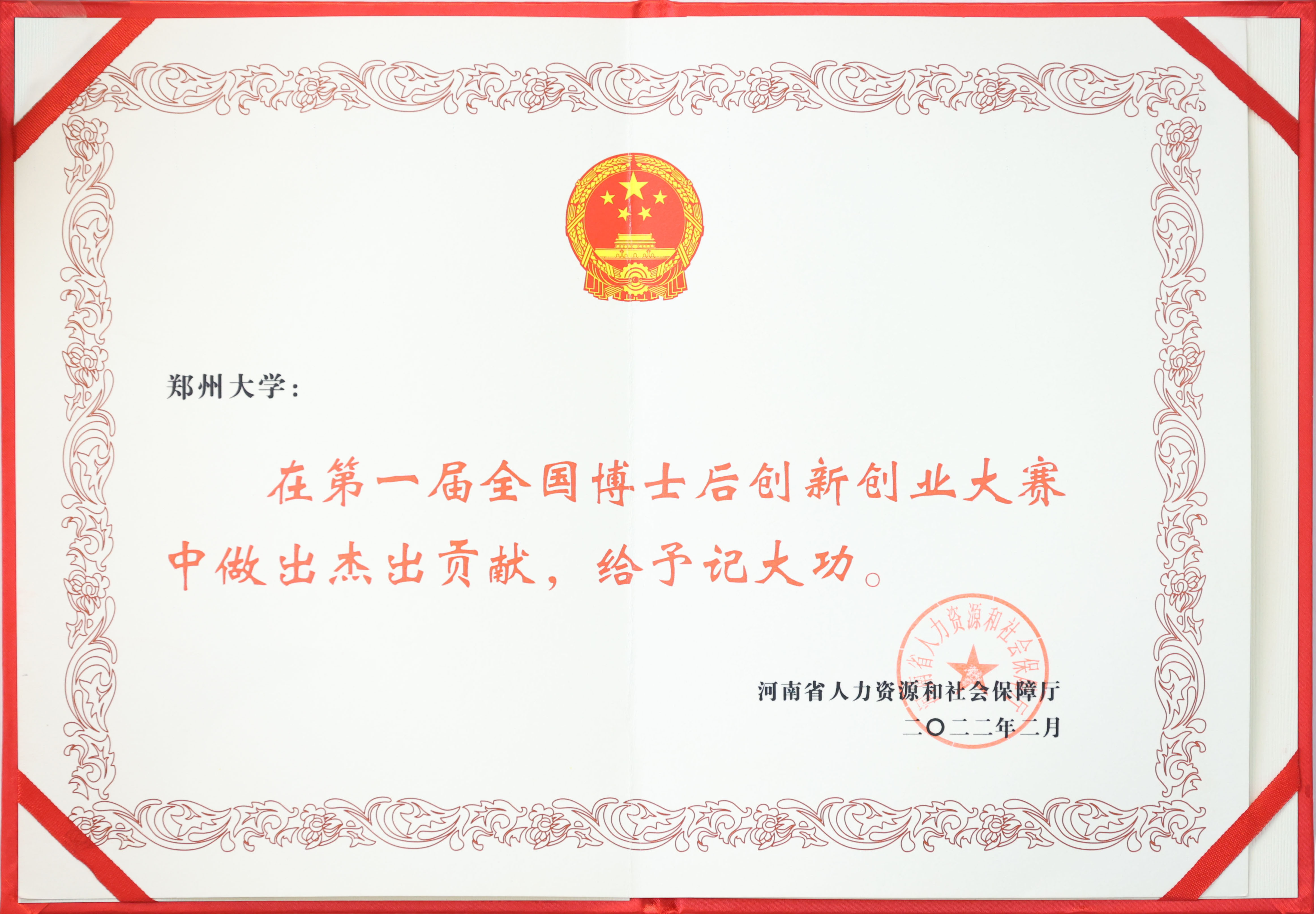 近日,河南省第一届全国博士后创新创业大赛表彰暨推进博士后工作高质量发展会议在郑州召开。今年会官网因在第一届全国博士后创新创业大赛中成绩突出,被河南省人力资源和社会保障厅给与集体记大功,创业大赛金奖获得者王念念博士受到个人嘉奖。