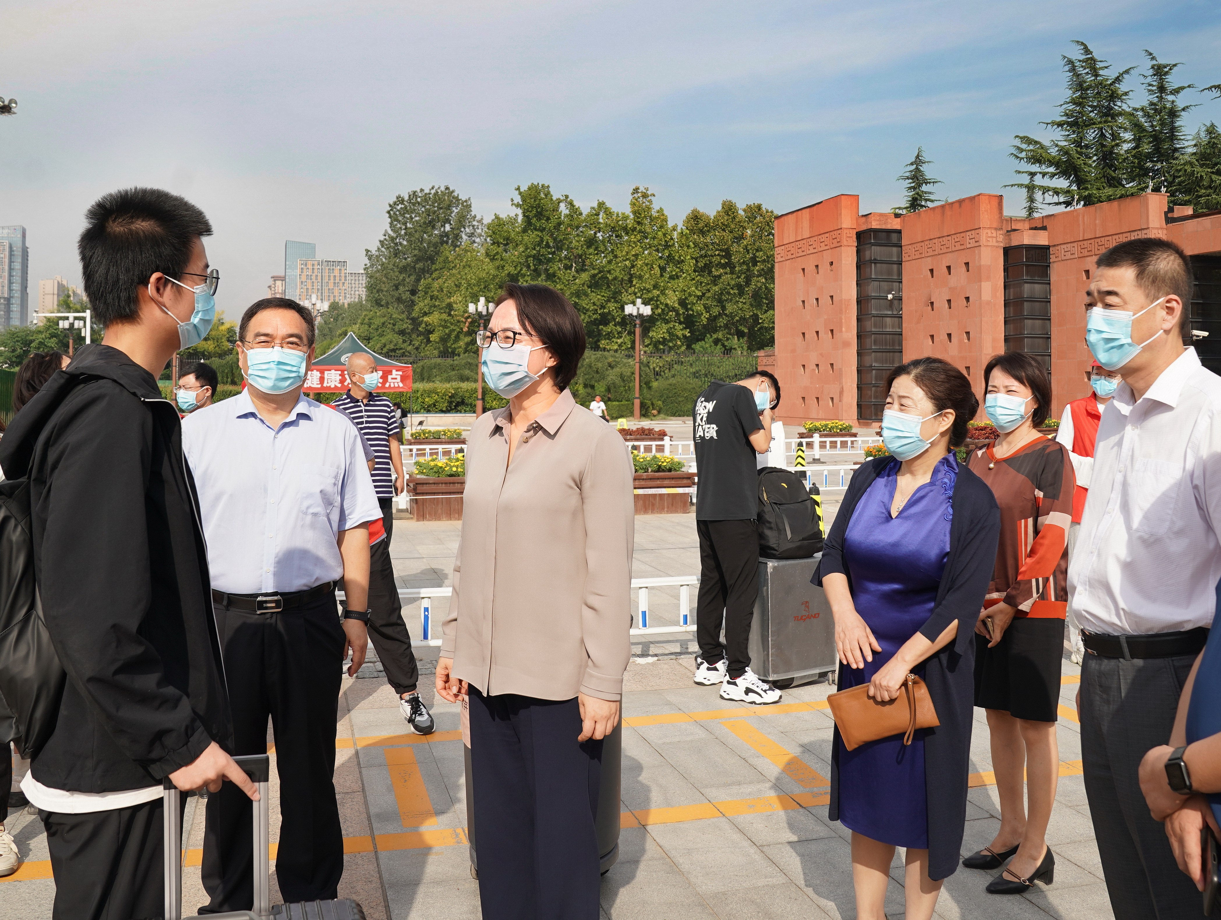 在主校区,李蓬一行先后来到学校南门、东门、北门,察看报到流程及行李消杀、体温检测、人员管控情况,并与学生们亲切交谈,询问同学们的假期生活、返校途中防护、住宿饮食等情况。她向返校的同学们表示欢迎和慰问,鼓励大家在做好常态化疫情防控的同时,在新学期里以更加积极向上的态度投身学习科研。同学们纷纷表示,得知能返校复学的消息非常高兴,一定按照学校要求,自觉做好疫情防控,以饱满的热情迎接新学期的学习、科研与生活。