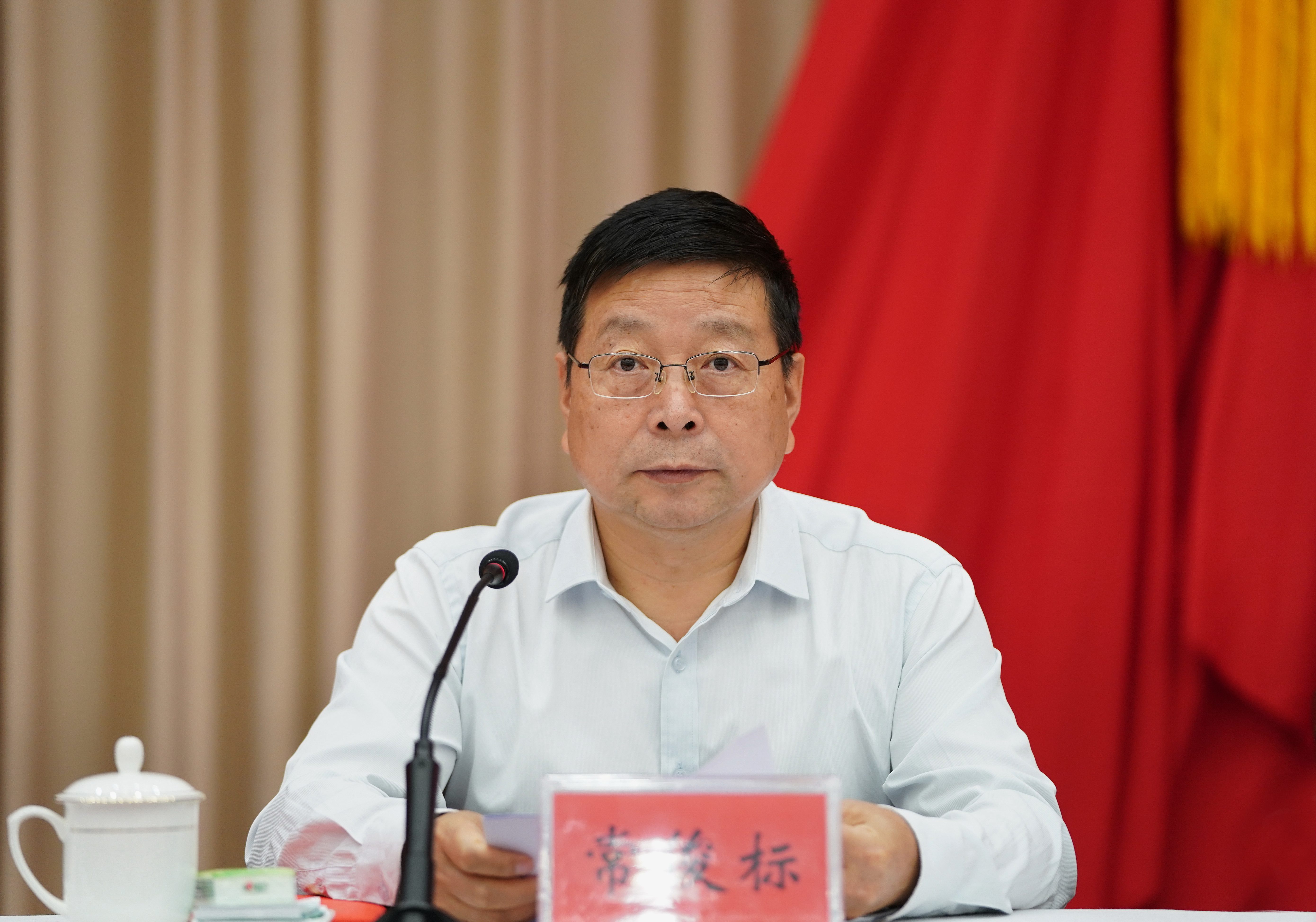 常俊标在主持讲话中表示,全校教职员工要以先进为标杆,以模范为榜样,深入学习贯彻习近平新时代中国特色社会主义思想,坚定理想信念、厚植爱国情怀、涵养高尚师德,勇担为党育人、为国育才使命,为培养担当民族复兴大任的时代新人、社会主义合格建设者和可靠接班人作出新的更大的贡献,以昂扬向上的精神面貌和立德树人的扎实行动,交上一份出彩答卷。(魏洪波 摄影)