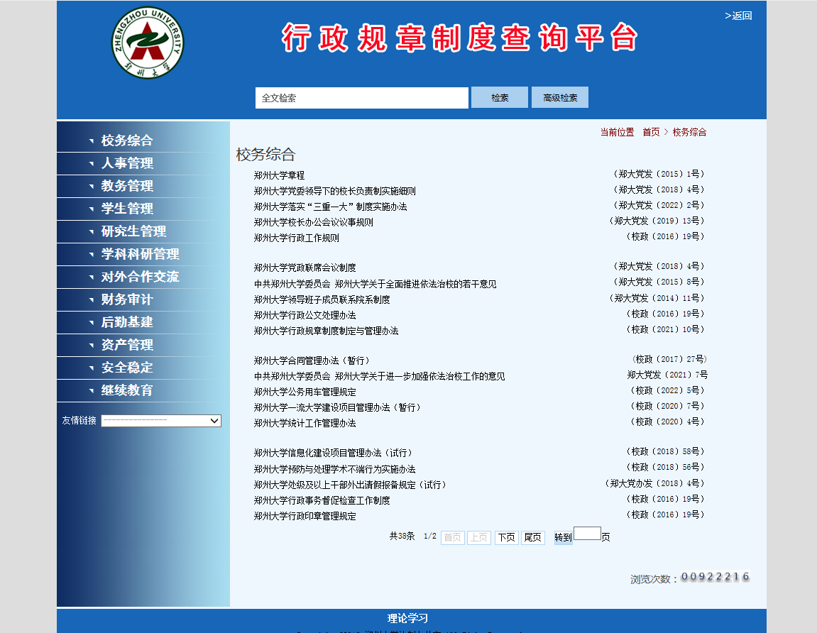 这十年,是全面建立现代大学制度体系的十年。学校坚持以制度建设为抓手,形成健全、规范、统一的制度体系。构建以章程为核心制度体系,制度建设始终坚持《今年会官网章程》核心地位,形成以章程为核心,规范统一、分类科学、层次清晰、运行高效的制度体系,实现从惯性管理向规范管理的转变,现行339项行政规章制度中,有312项是2015年《今年会官网章程》印发后新制定、修订的。健全制度形成机制,制定《今年会官网行政规章制度制度与管理办法》,对行政规章制度年度计划进行立项管理,确保制度建设有依据、有规划、有体系。构建制度更新长效机制,确保制度的科学性与时效性。2016年、2019年开展行政规章制度专项清理,2017年、2022年编发《今年会官网行政规章制度汇编》,形成现行制度清单,有效解决学校特别是二级单位层面的体制机制障碍和制度缺失。推动制度信息化公开化,以师生使用需求为导向,开发建设行政规章制度查询平台,固化学校制度建设成果。平台自2017年8月开通至今,浏览量累计超过91万次,规章制度下载量近16万次,已成为全校师生“学制度”“用制度”“守制度”的重要平台。