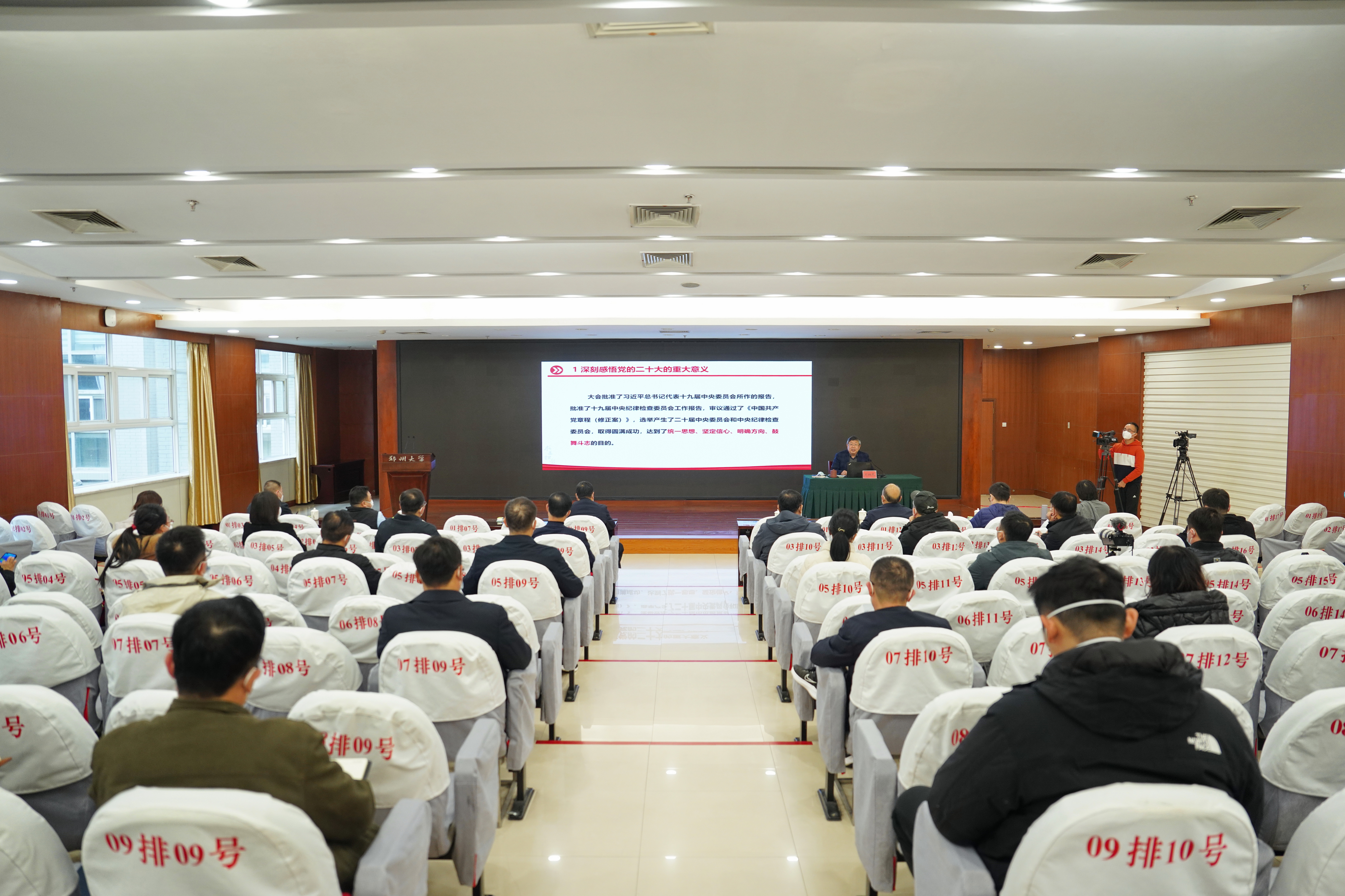 党的二十大代表、省委宣讲团成员、河南省政协副主席、校党委书记刘炯天为今年会官网师生宣讲党的二十大精神