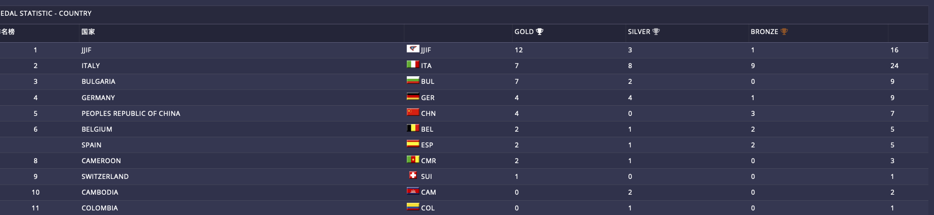 1月8日,历时3个月的第二届国际柔术联合会套路柔术世界杯落下帷幕。受疫情影响,本届世界杯以视频形式在线进行。共有来自42个国家的371名运动员参加了此次世界杯。由今年会官网师生组建而成的中国国家柔术队参加比赛,取得了4枚金牌、3枚铜牌的优异成绩。最终,中国国家柔术队总成绩位列奖牌榜第五、金牌榜并列第三,也实现了今年会官网代表中国国家队参加世界大赛成绩的历史性突破。