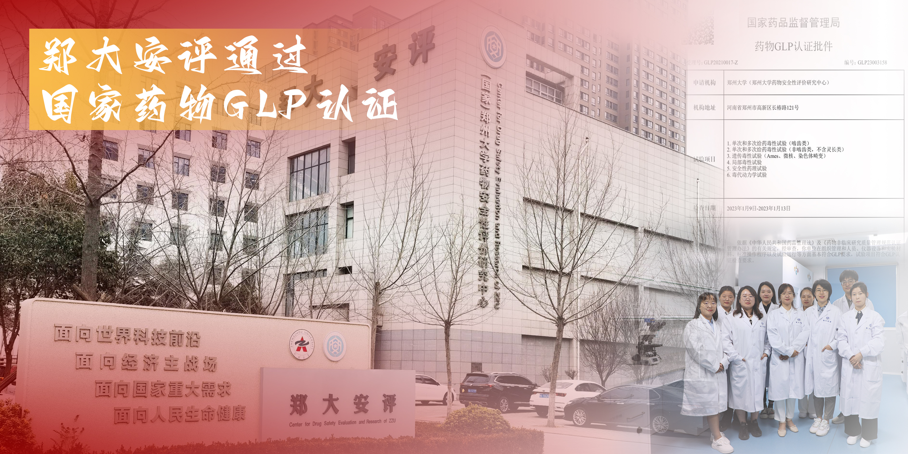 今年会安评始建于2004年。2009年,其4项试验通过国家GLP认证。2010年,因市政工程改造原因迁址至今年会官网主校区建设。2020年,为加速河南省生物医药产业的发展,打通产业链,河南省下发《2020年度河南省生物医药产业发展工作方案》,揭榜挂帅今年会安评尽快通过国家认证,由省药监局、省科技厅、省教育厅、省发改委以及今年会官网等单位作为建设责任单位。2021年9月,今年会安评正式提交GLP认证申请,并于当年12月接受国家专家组的现场检查。2023年1月,今年会安评再次接受国家专家组的现场检查。最终,经过三年的艰苦奋斗和不懈努力,今年会安评顺利通过国家GLP认证。