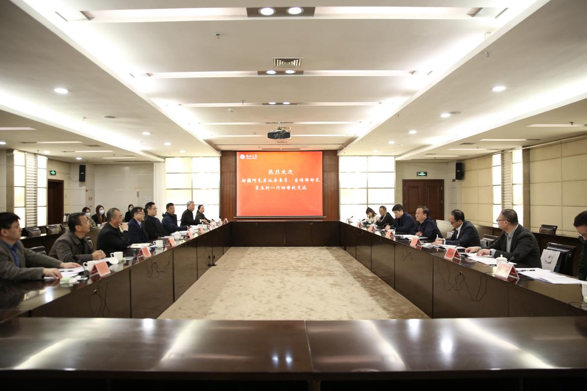 2月27日,文学院85级校友、新疆阿克苏地委委员、宣传部部长常玉轩率阿克苏地区融媒体中心骨干人员一行回母校交流。校党委常委、副校长韩国河出席座谈会。党委宣传部、对外联络办公室、信息化办公室、文学院、新闻与传播学院、出版社等相关单位负责同志参加。座谈会由校党委常委、宣传部部长厉励主持。