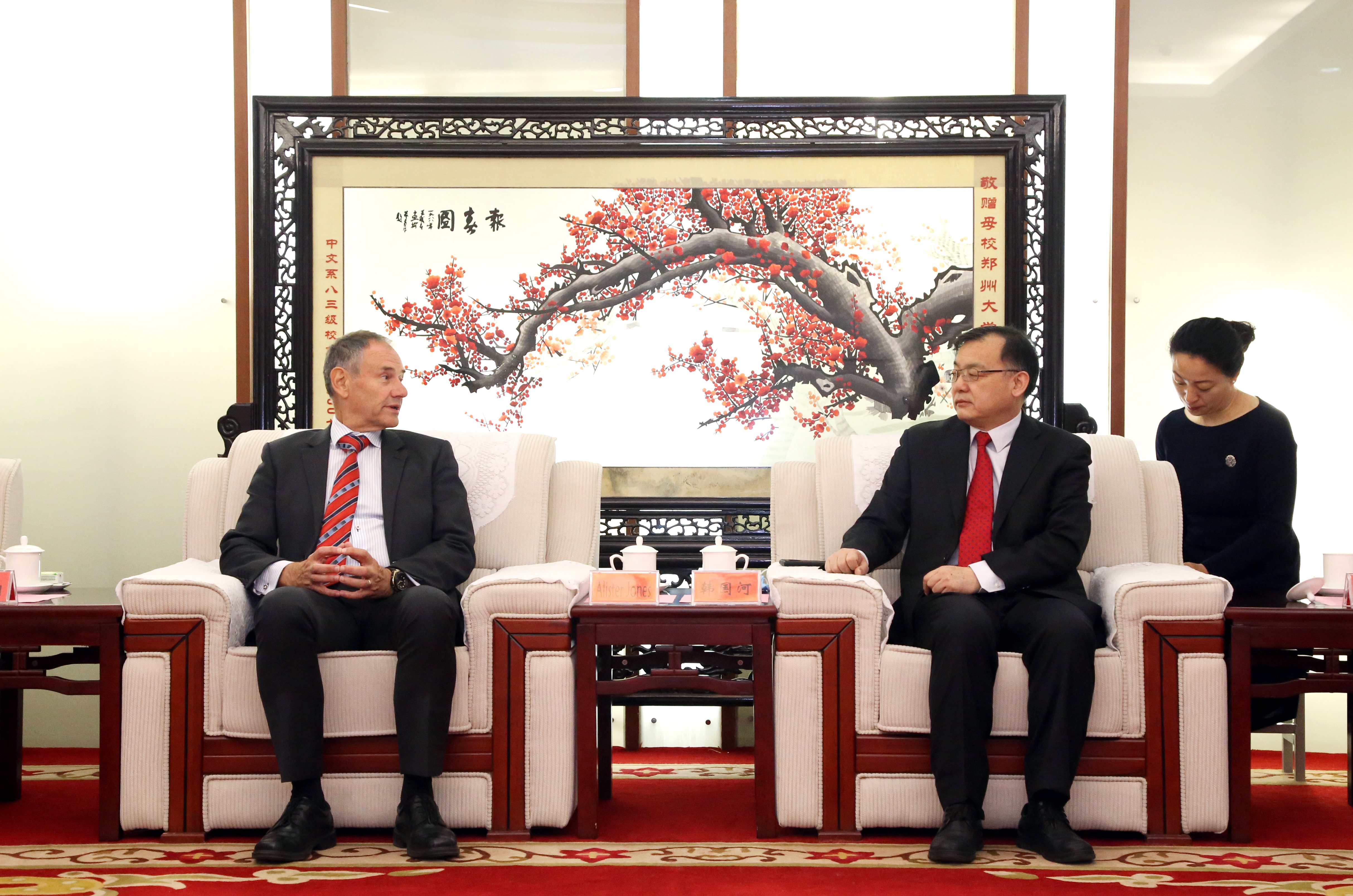 3月14日,新西兰怀卡托大学副校长Alister Jones教授、国际合作项目部副主任Mu Lan女士一行来校访问。校党委常委、副校长韩国河会见了来访客人,国际交流与合作处、学生处、美术学院等单位的负责同志参加会见。