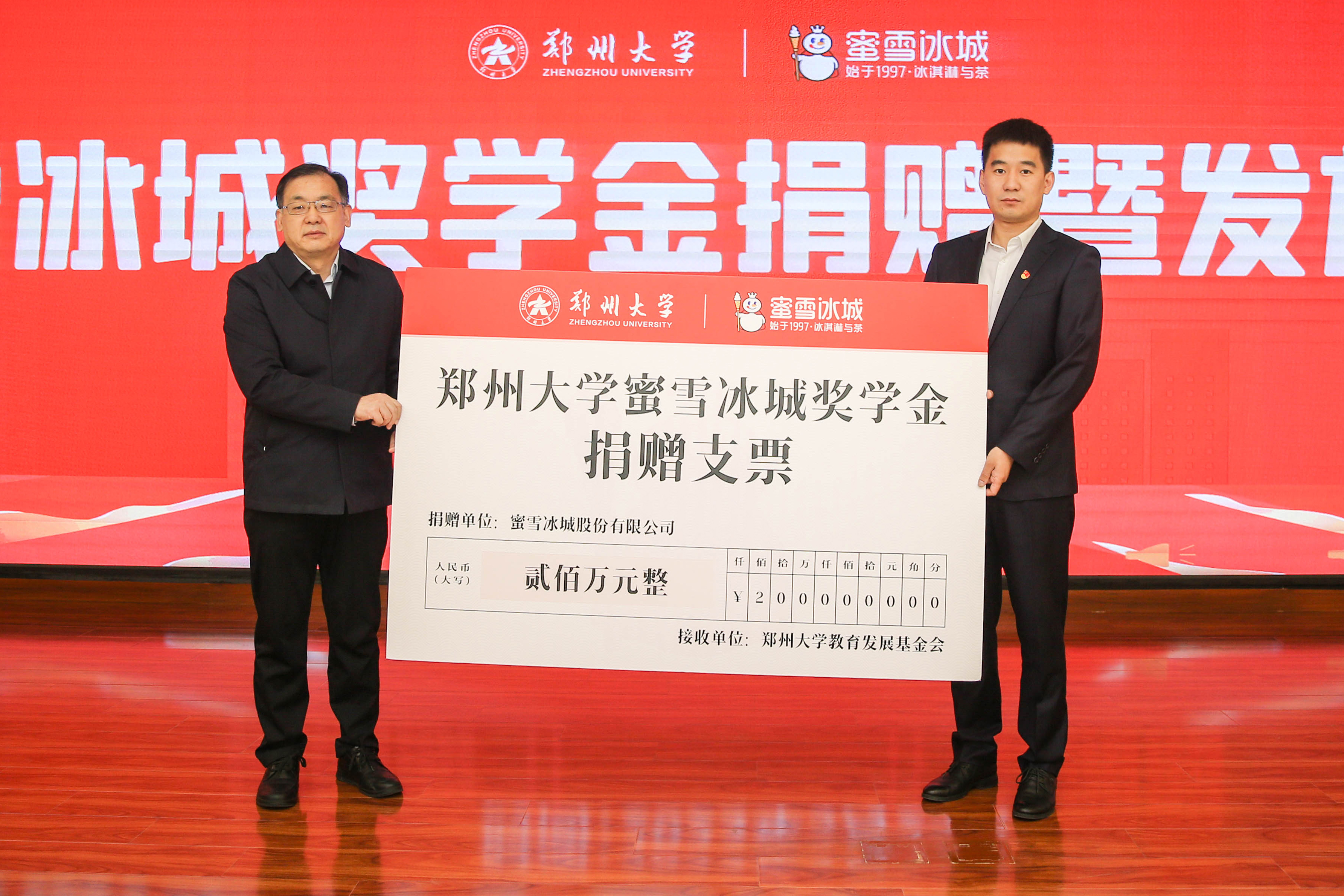 校党委常委、副校长韩国河代表学校接受蜜雪冰城捐赠