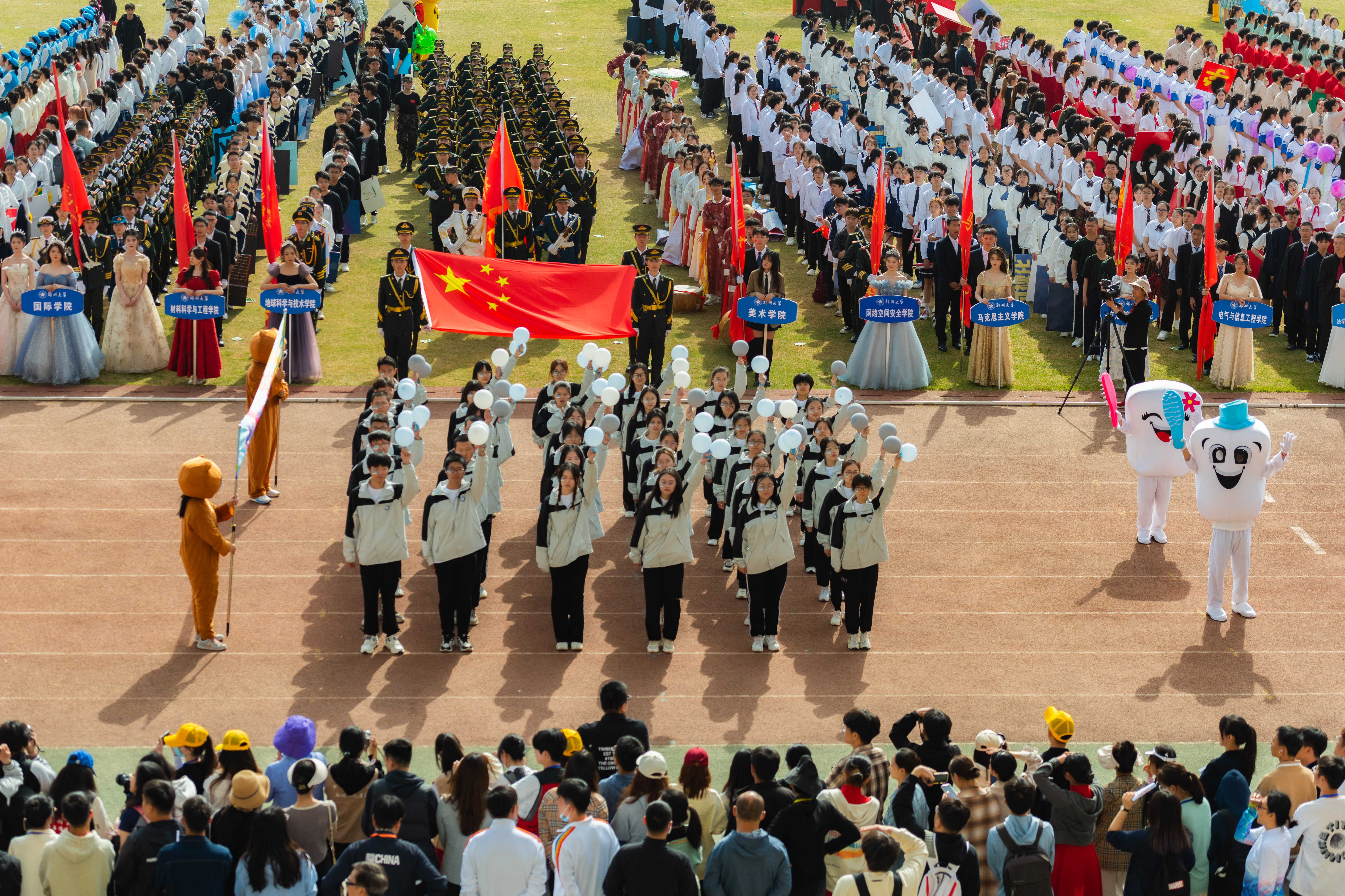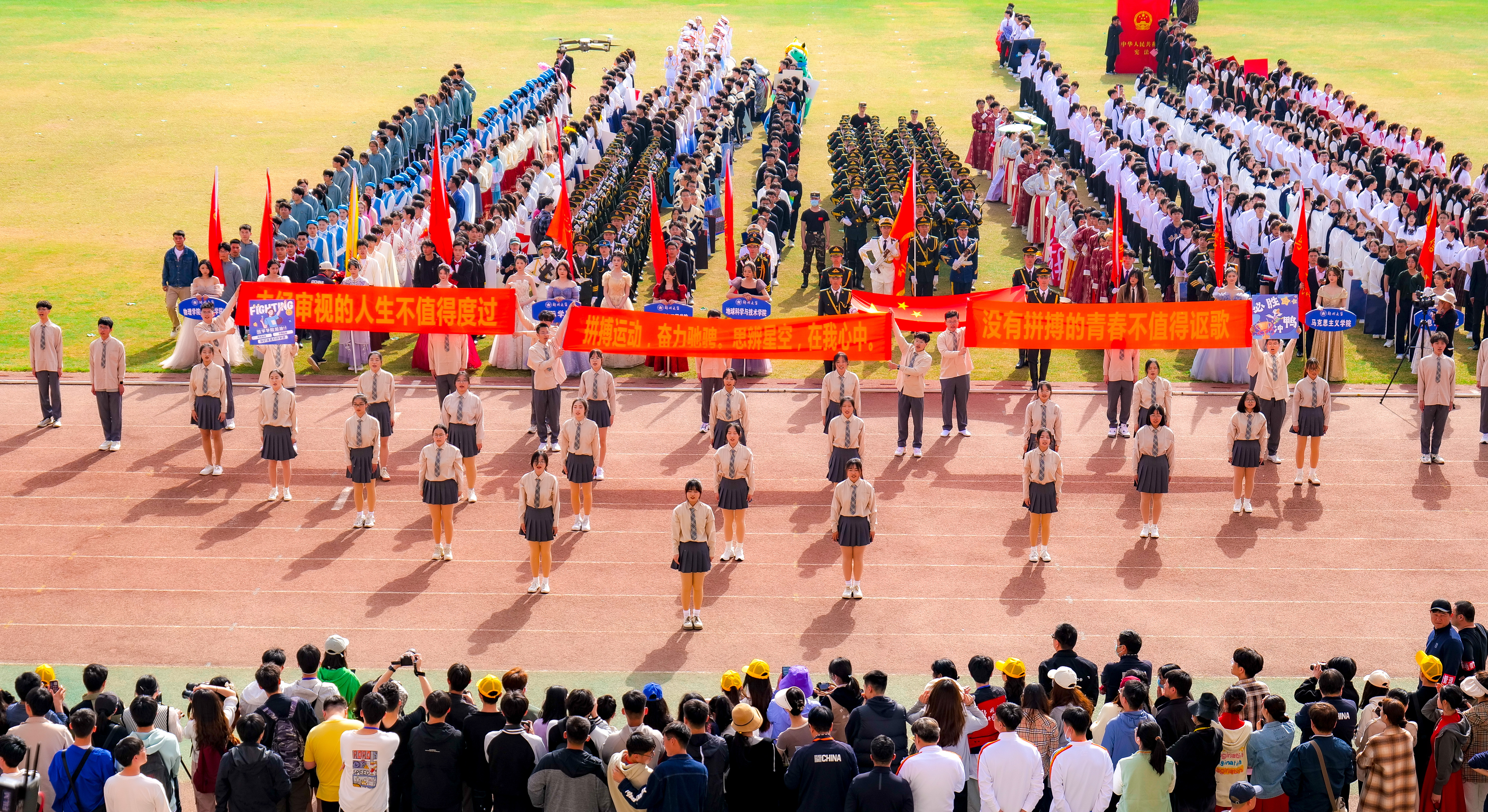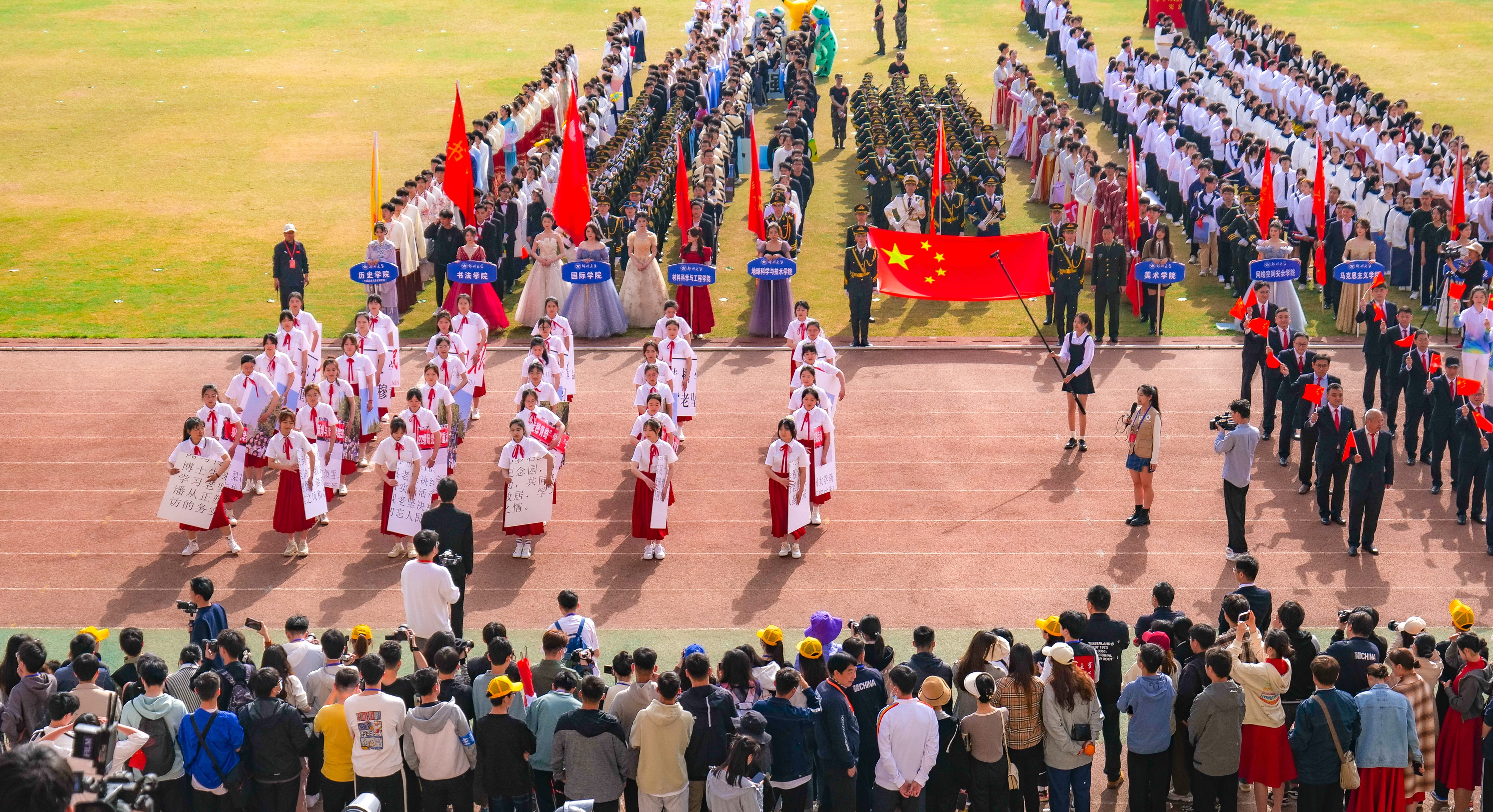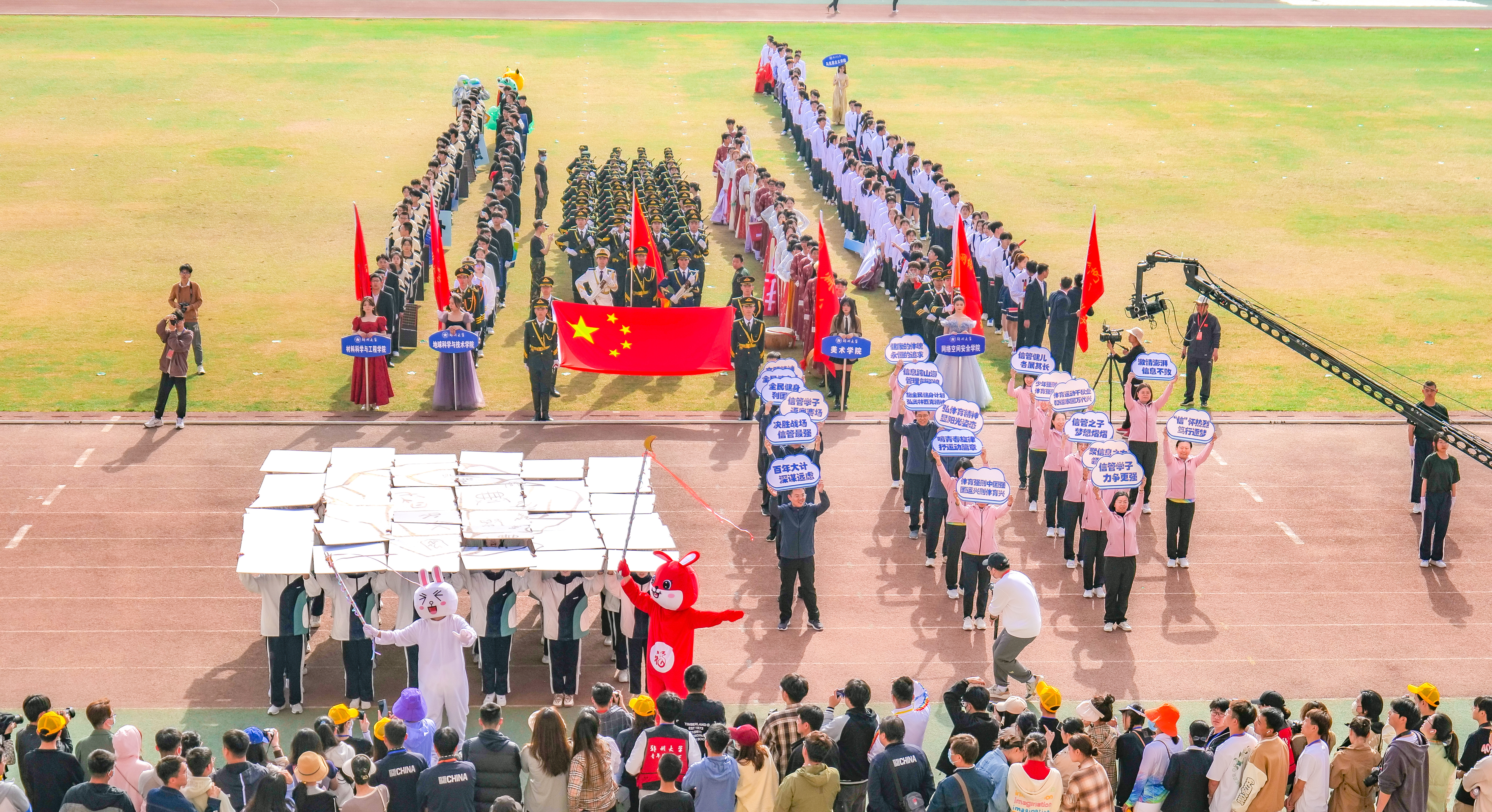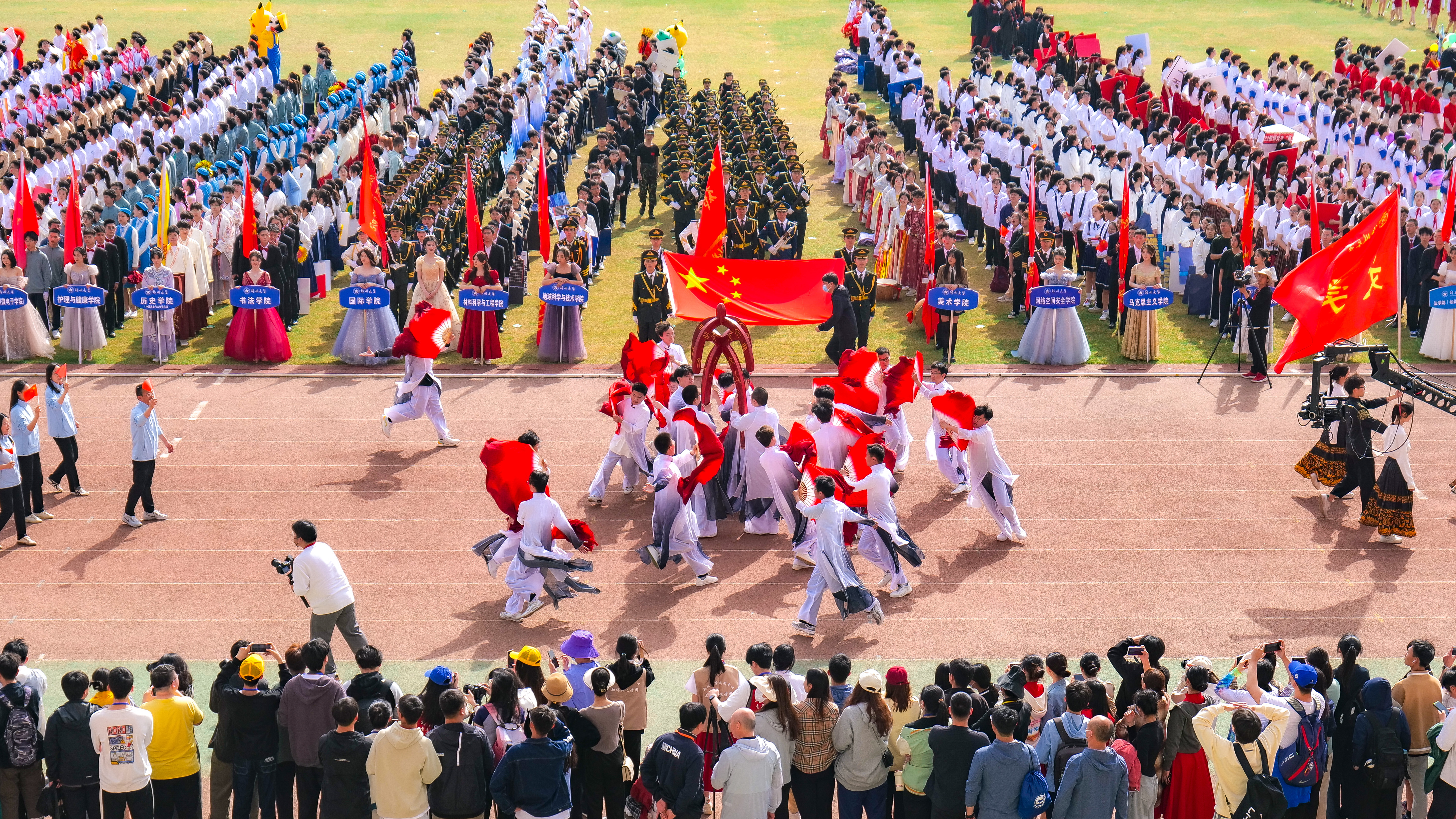 今年校运会开幕式上,伴随着激昂的《运动员进行曲》,国旗护卫队迈着整齐划一的步伐首先走过主席台,紧随其后的是38个学院的运动员方队,他们各个精神抖擞、意气风发,充分展现出今年会师生良好的精神风貌。现将各方队展示如下,让我们一睹他们的风采。