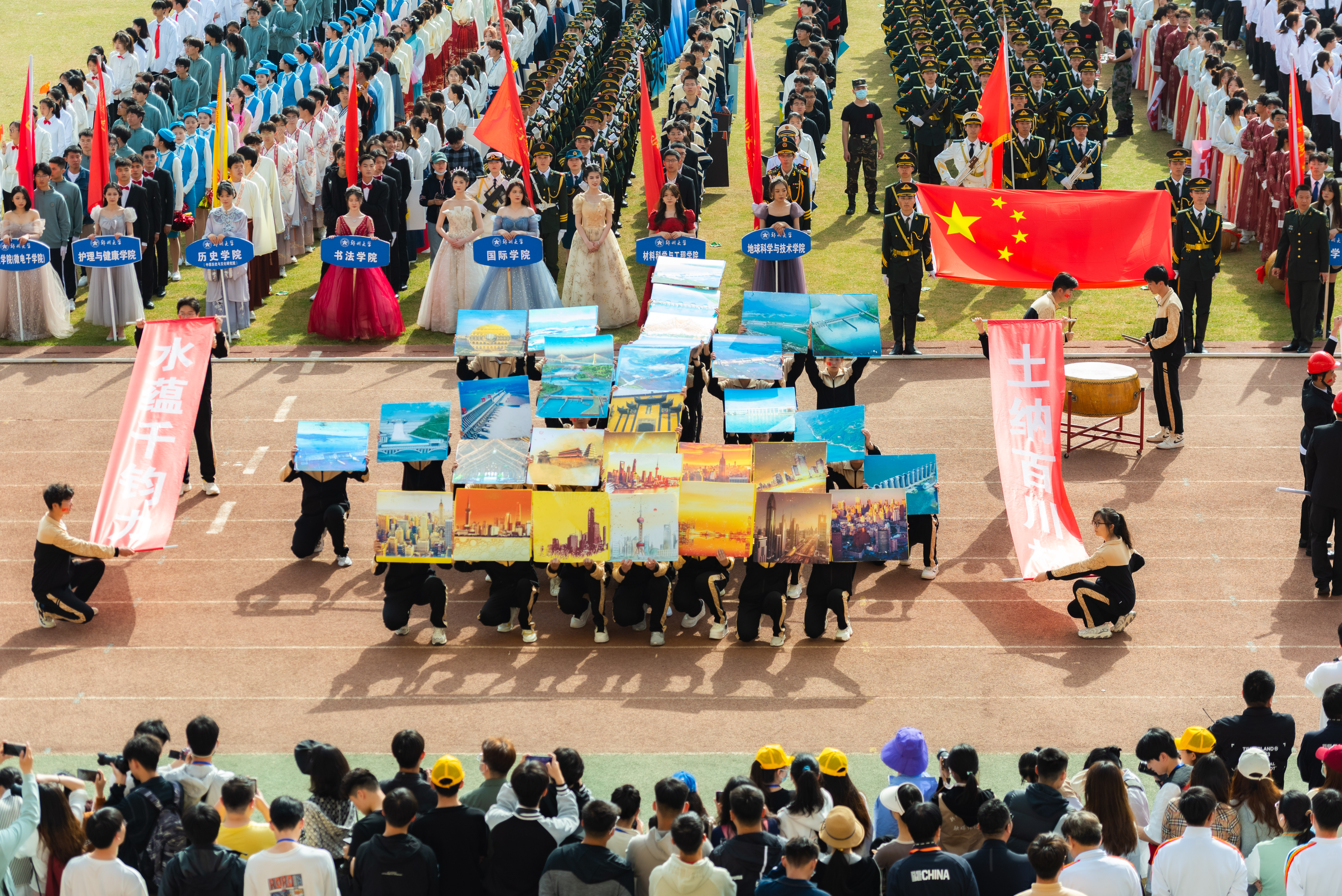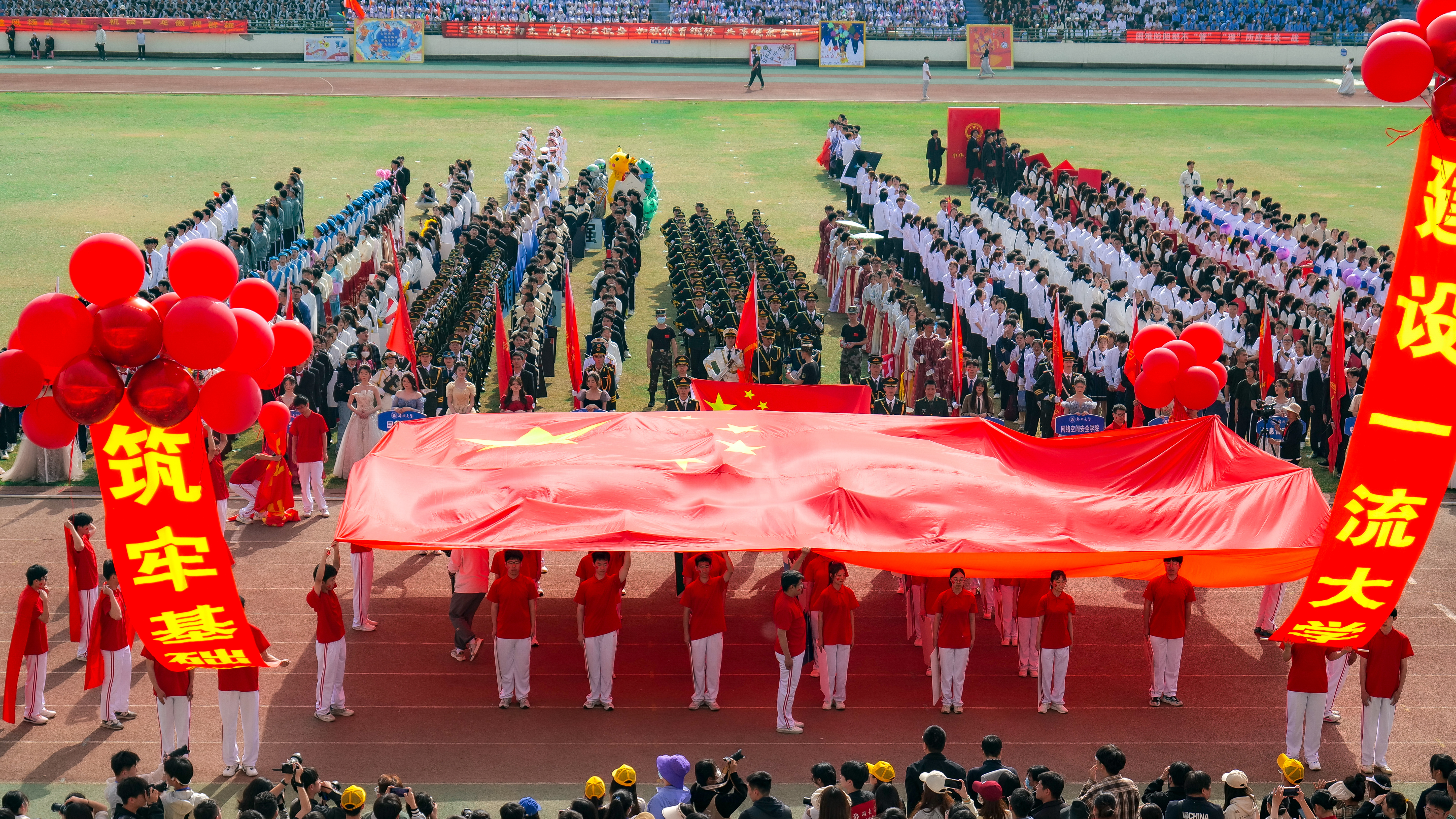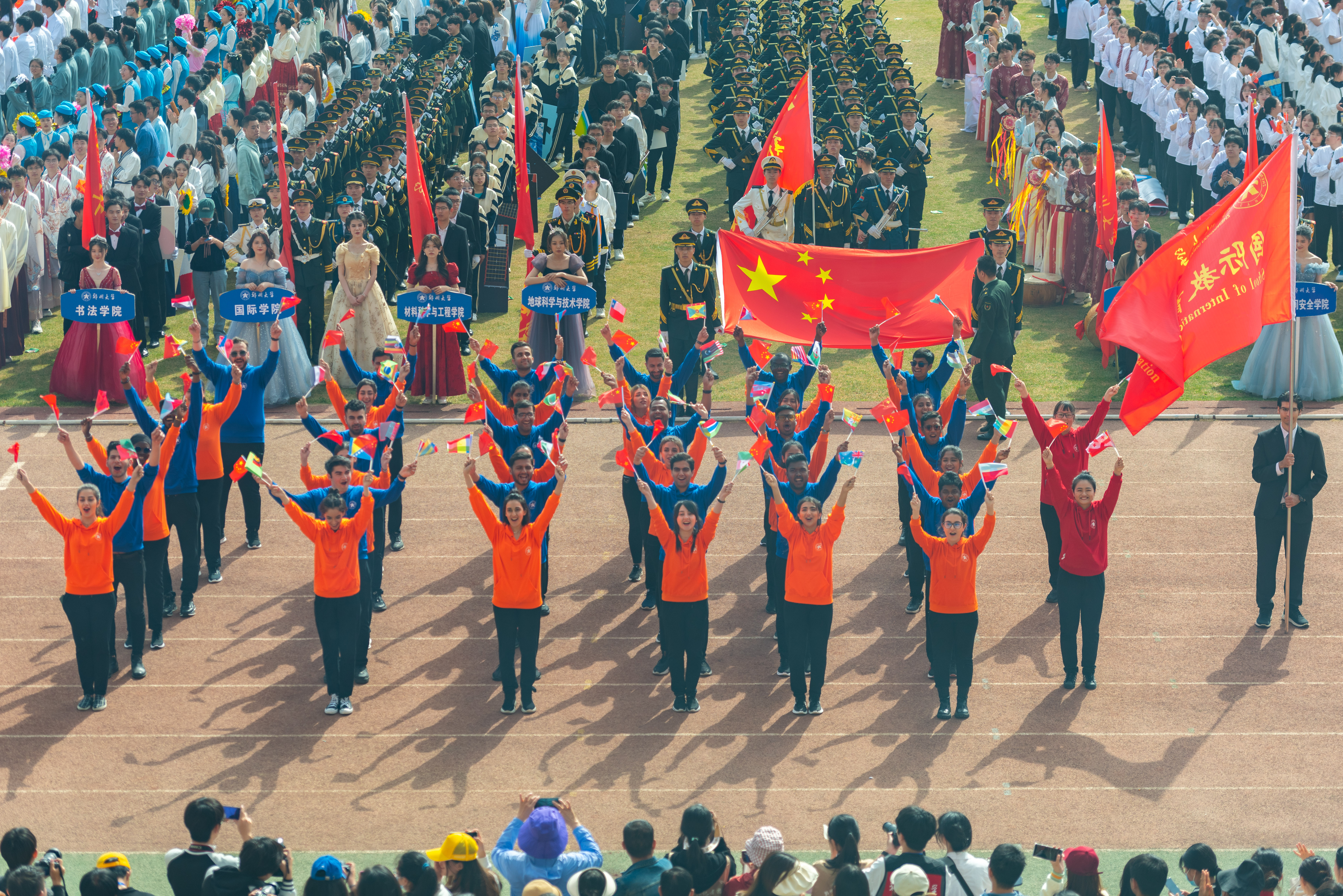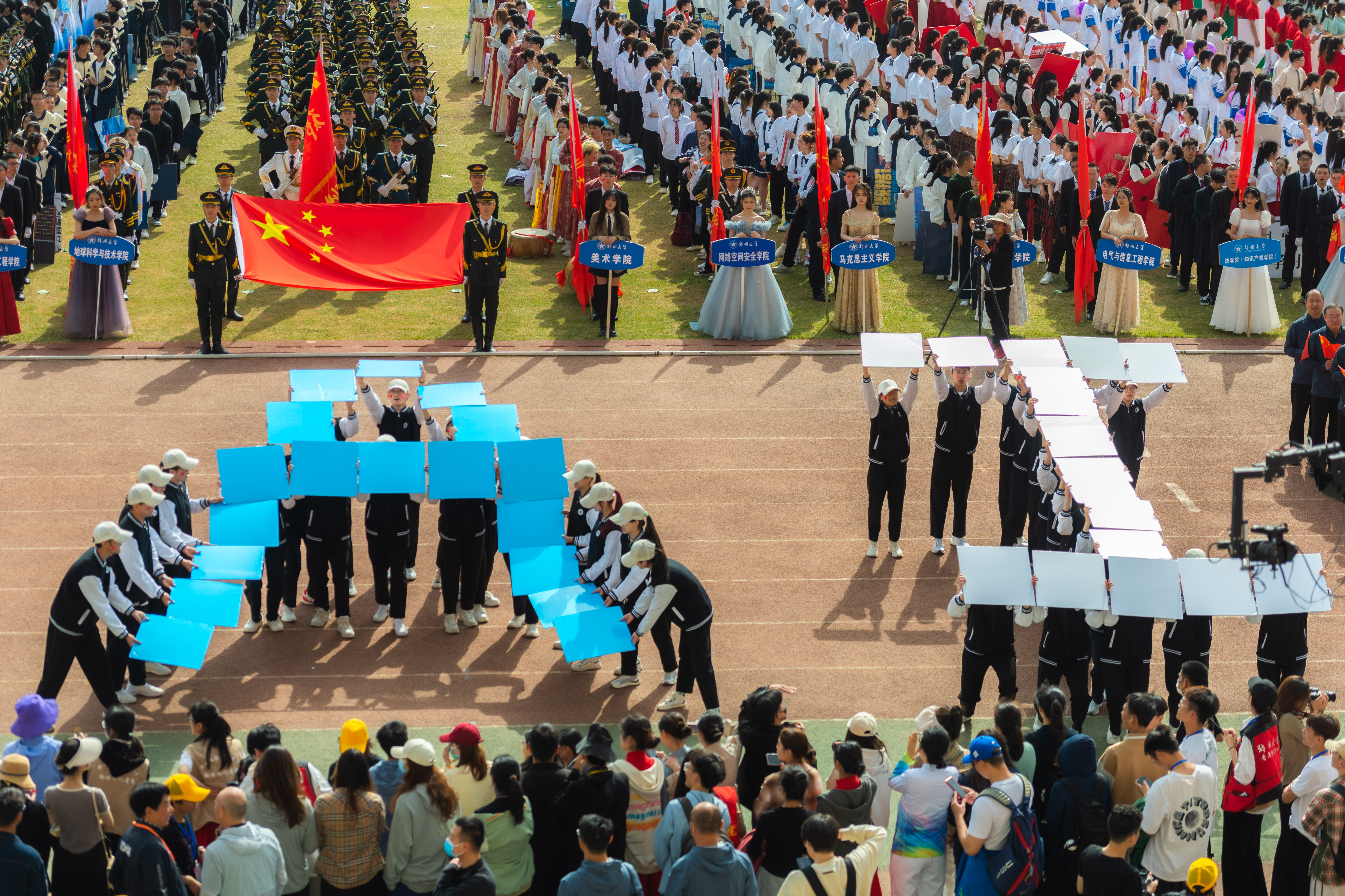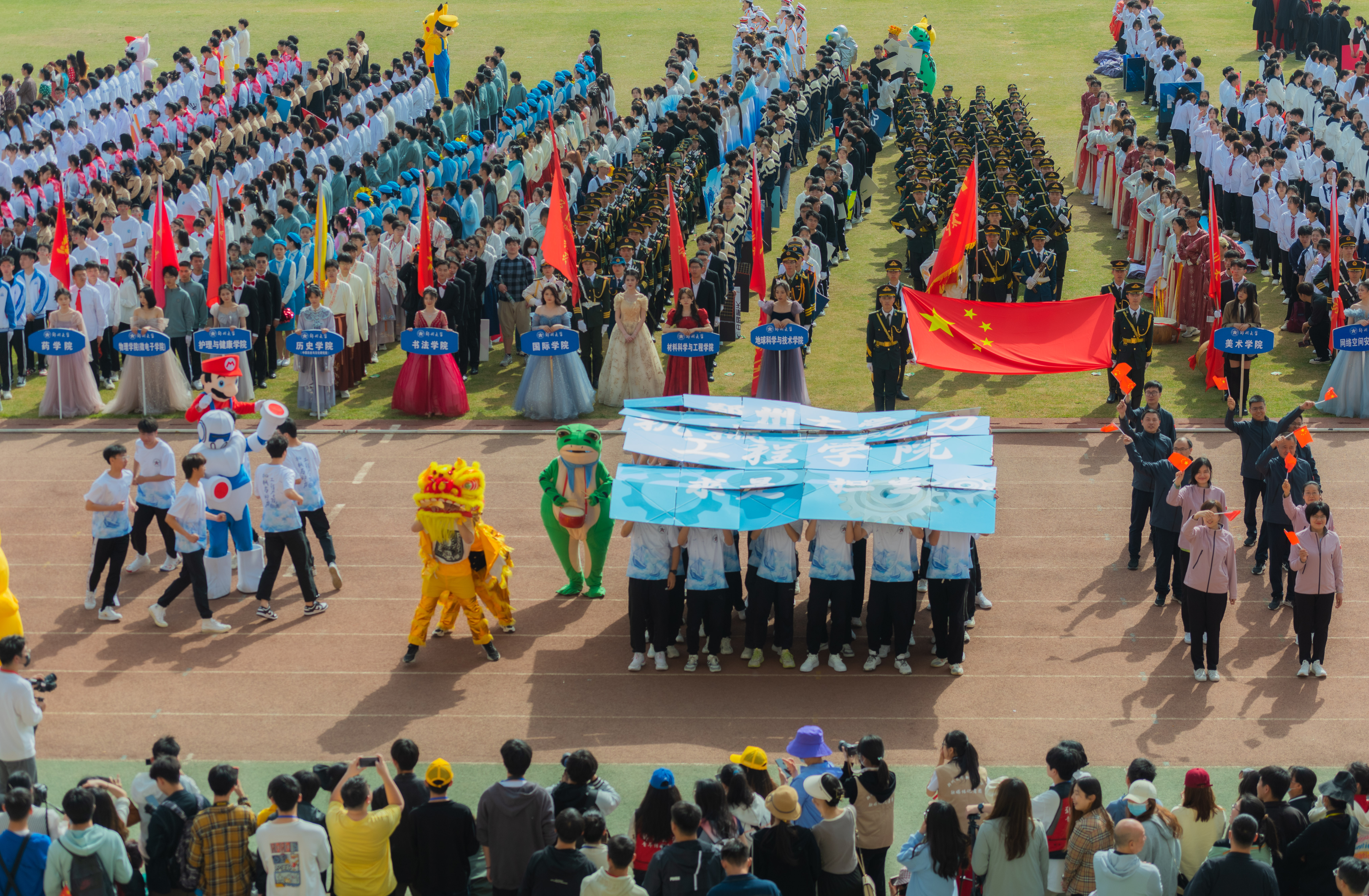今年校运会开幕式上,伴随着激昂的《运动员进行曲》,国旗护卫队迈着整齐划一的步伐首先走过主席台,紧随其后的是38个学院的运动员方队,他们各个精神抖擞、意气风发,充分展现出今年会师生良好的精神风貌。现将各方队展示如下,让我们一睹他们的风采。