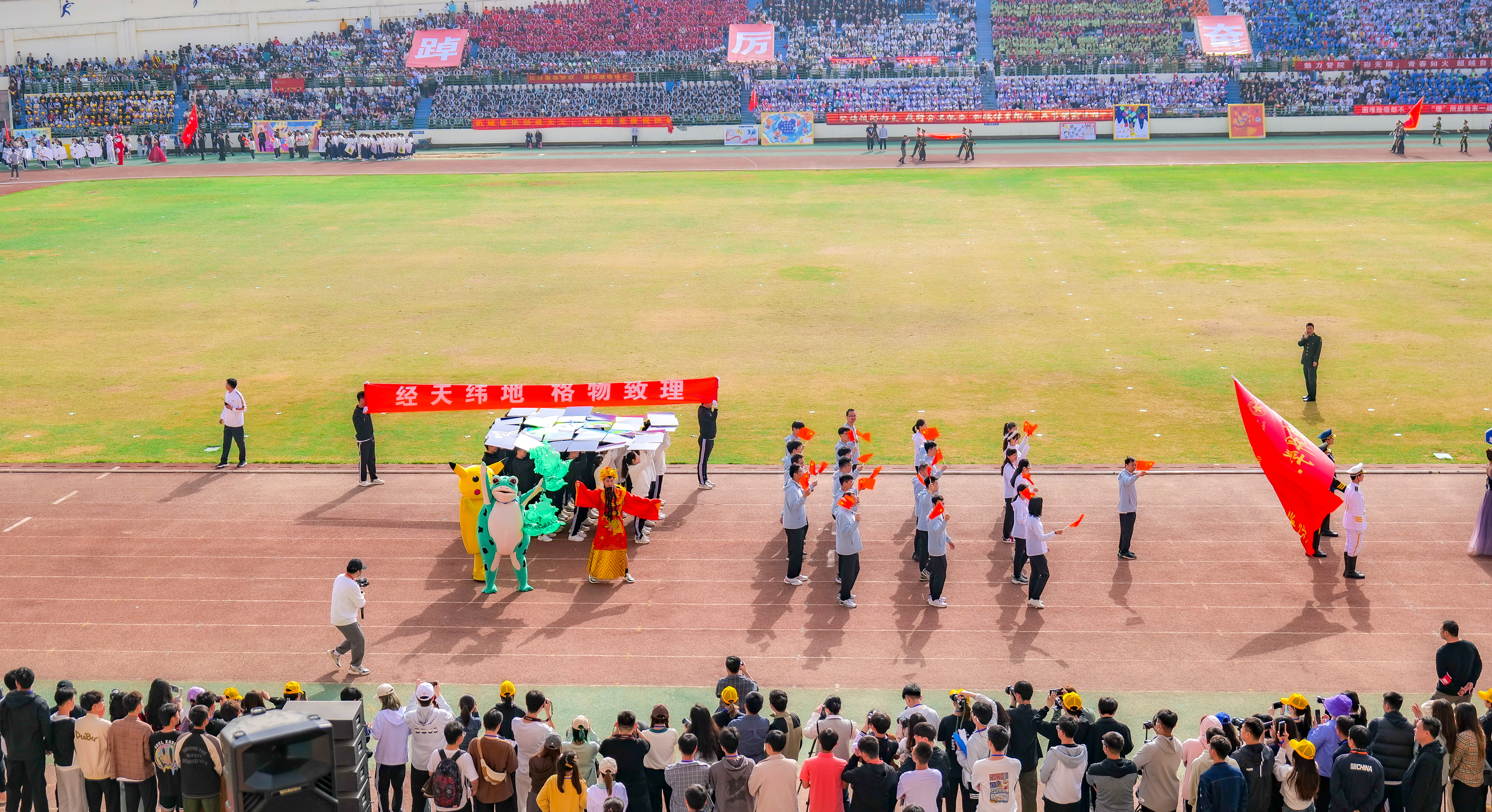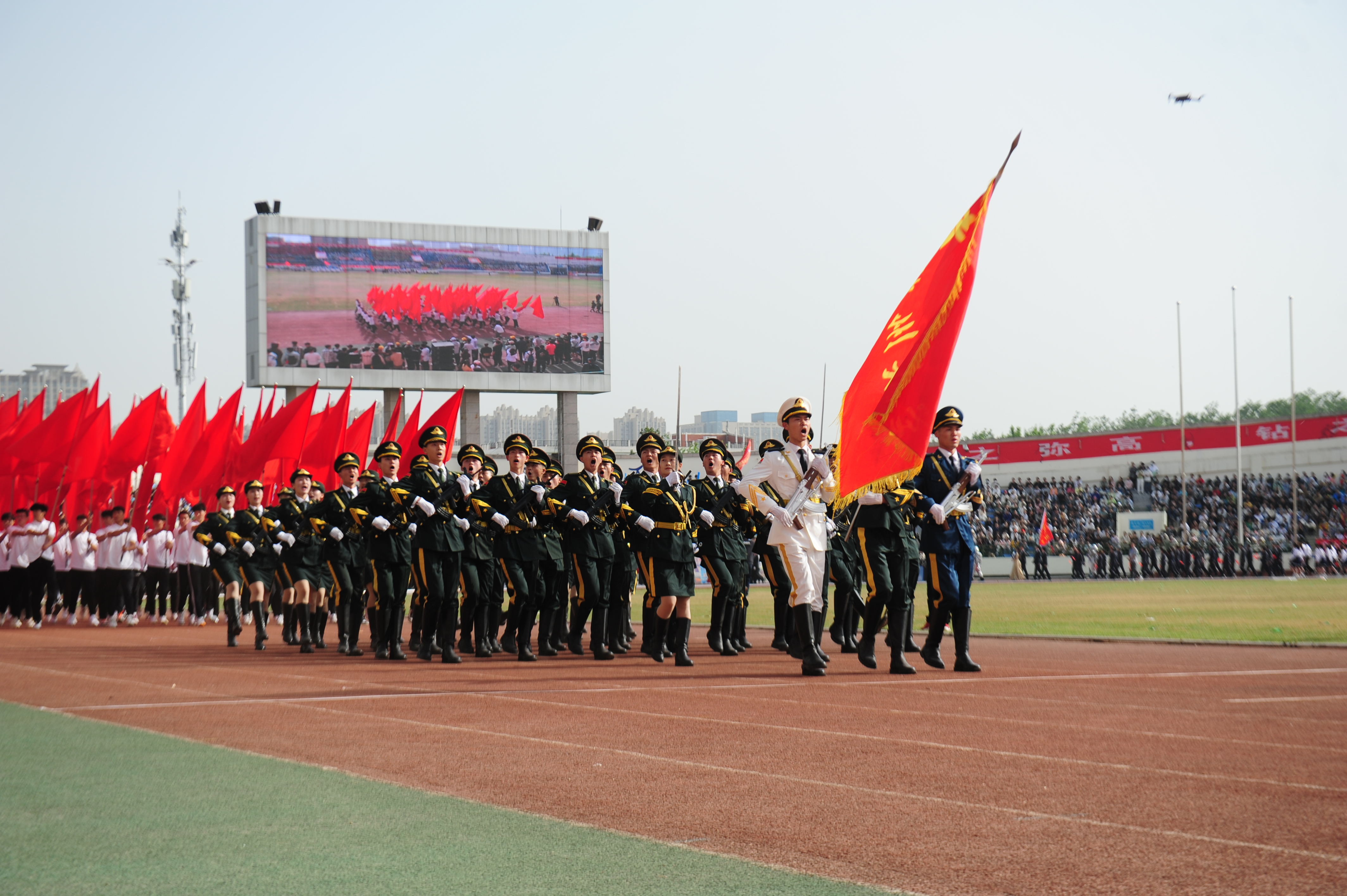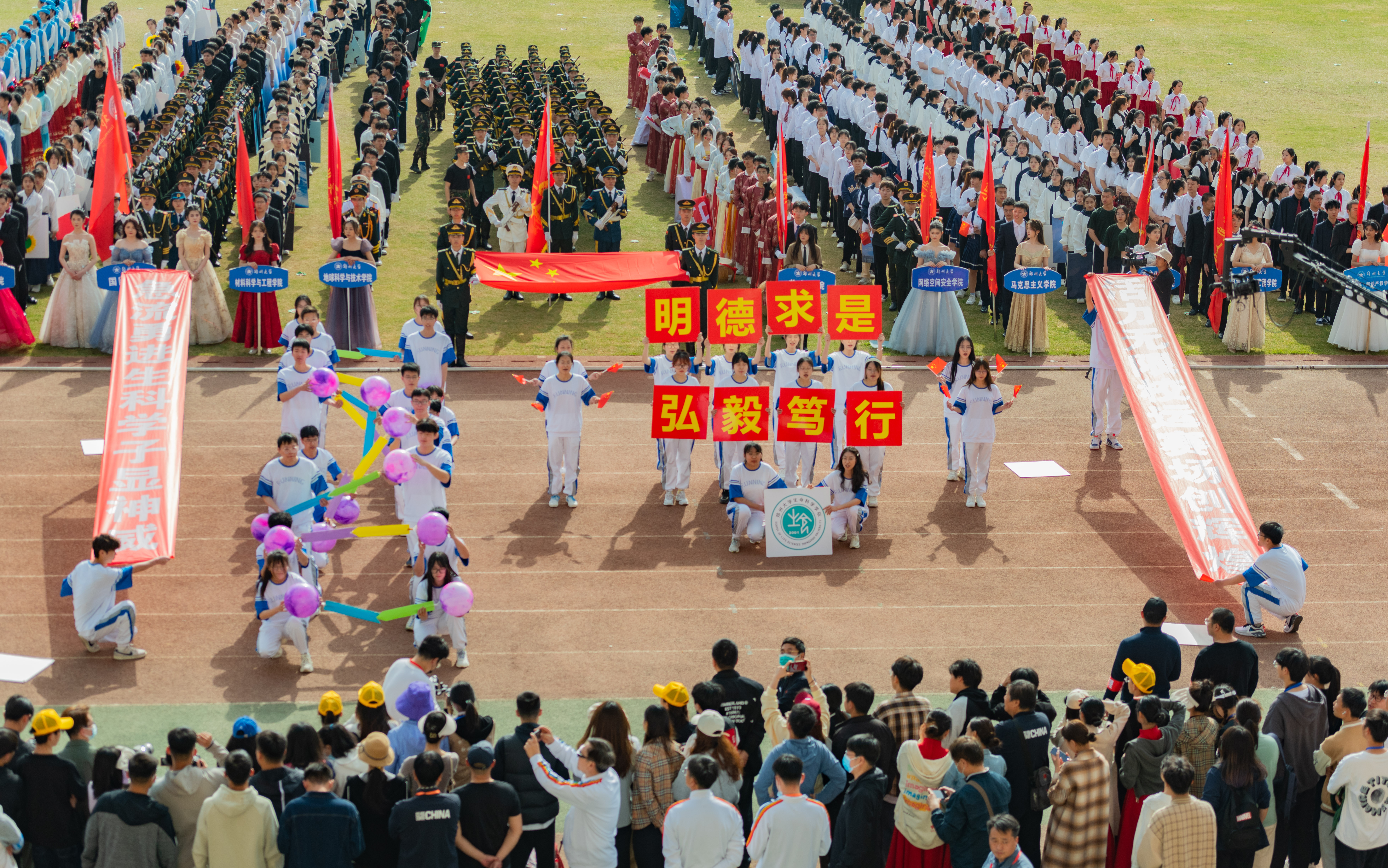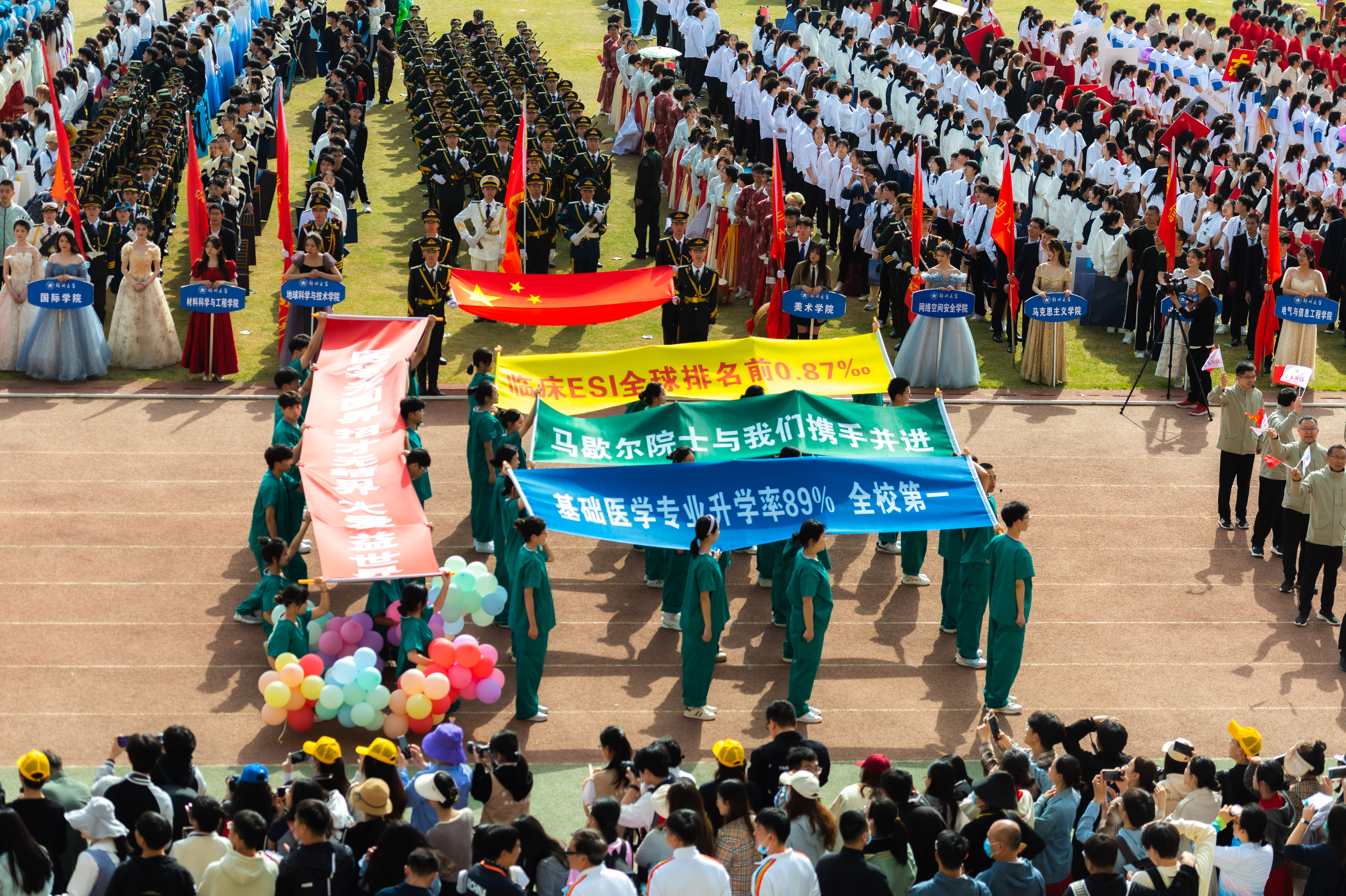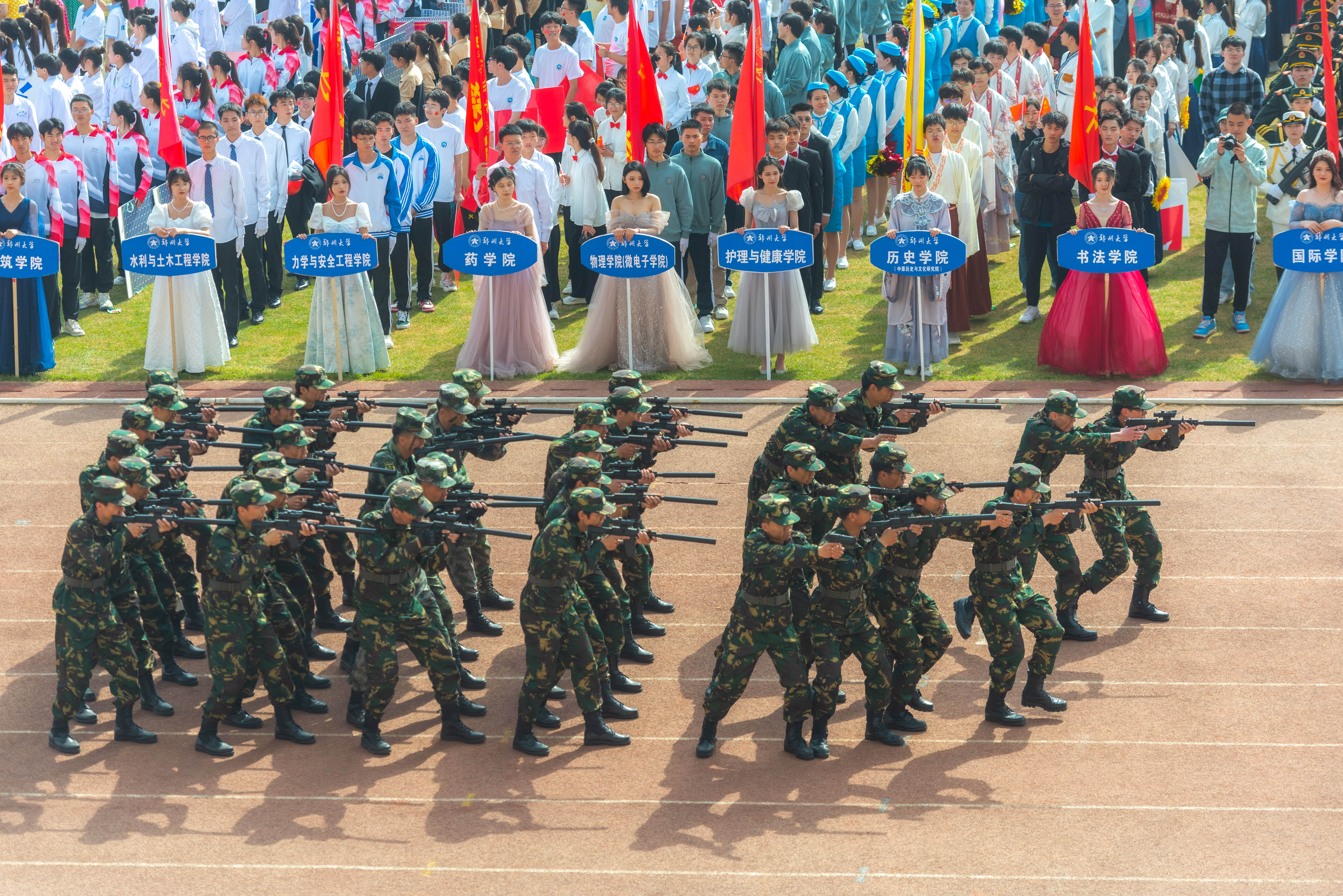 今年校运会开幕式上,伴随着激昂的《运动员进行曲》,国旗护卫队迈着整齐划一的步伐首先走过主席台,紧随其后的是38个学院的运动员方队,他们各个精神抖擞、意气风发,充分展现出今年会师生良好的精神风貌。现将各方队展示如下,让我们一睹他们的风采。