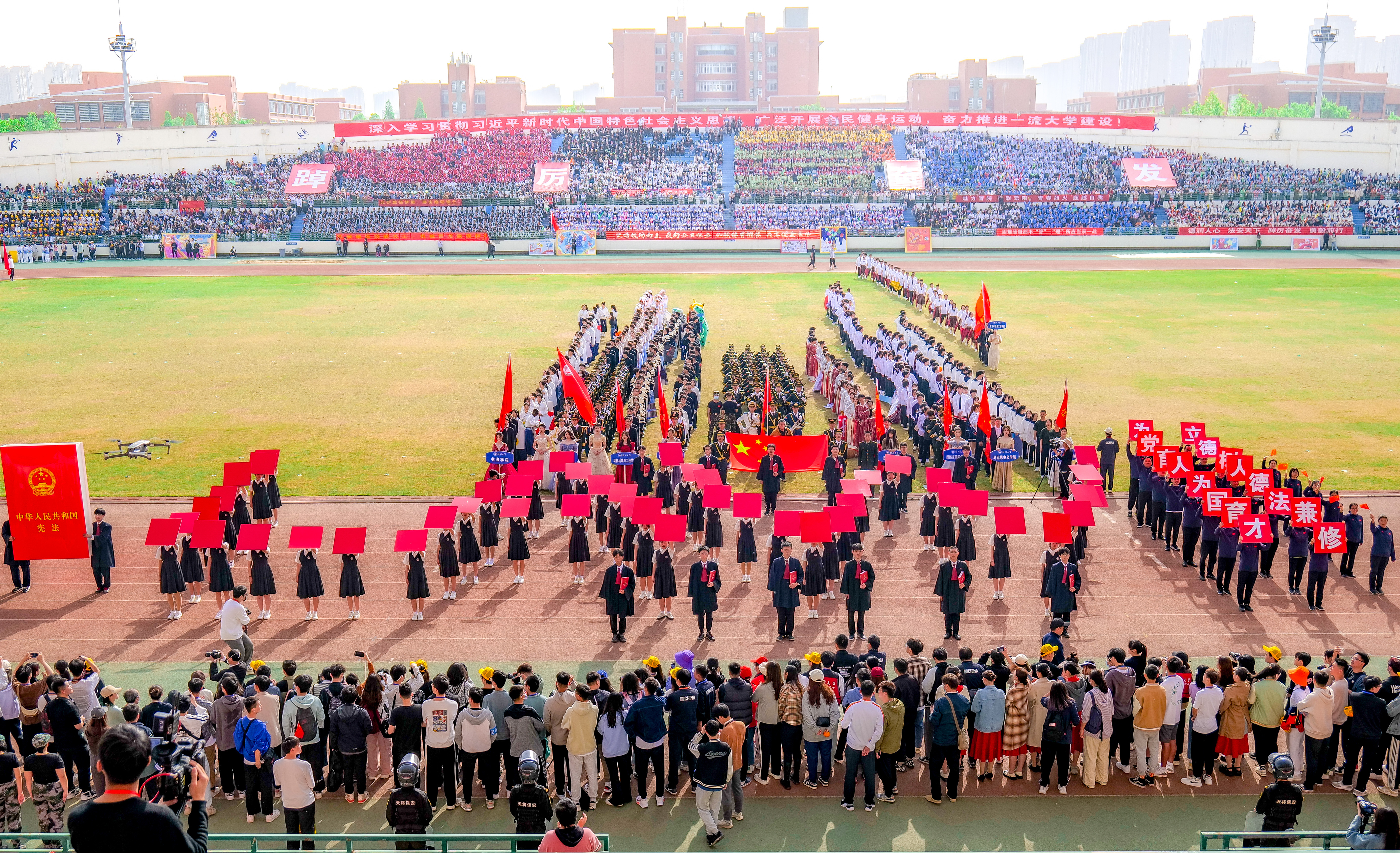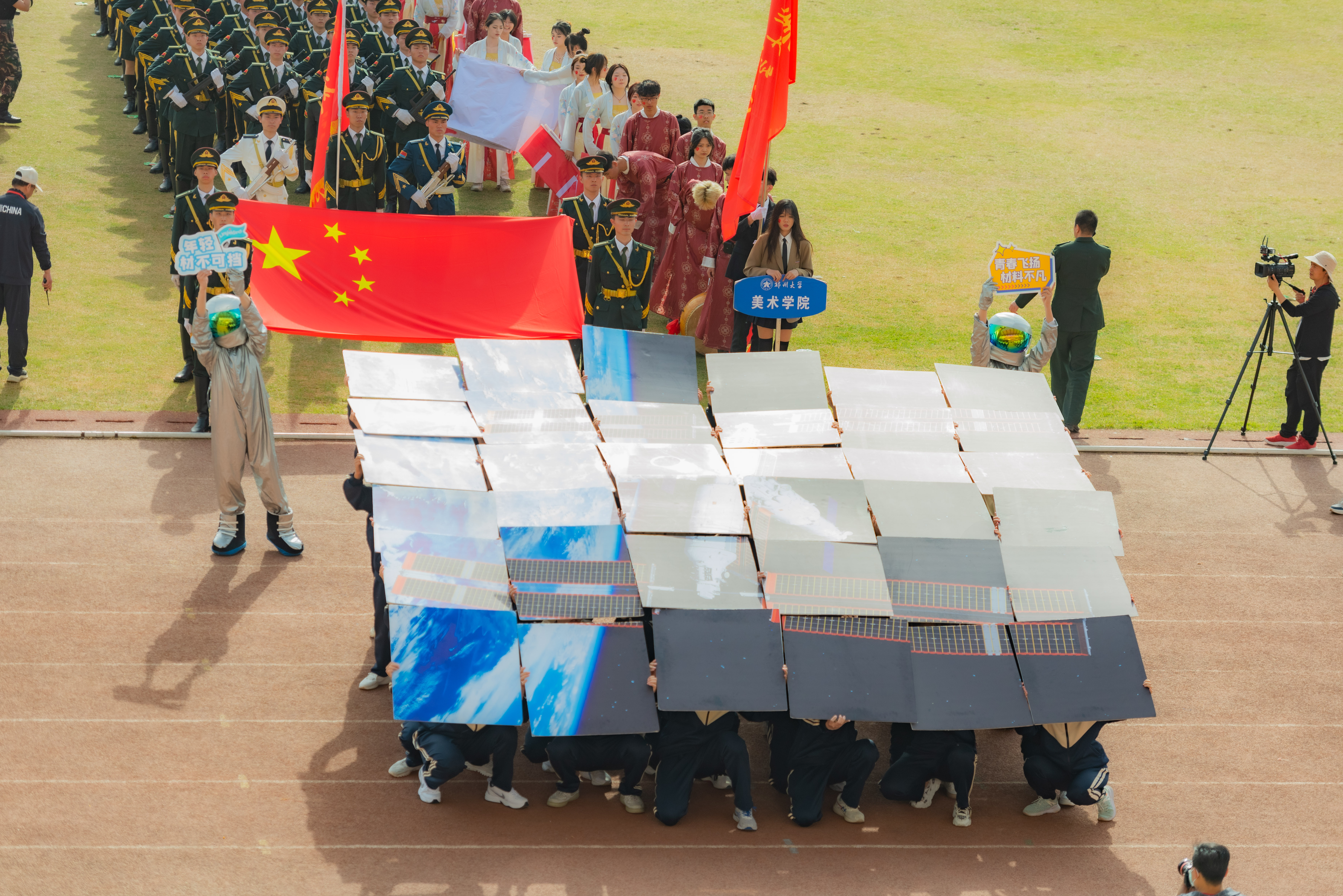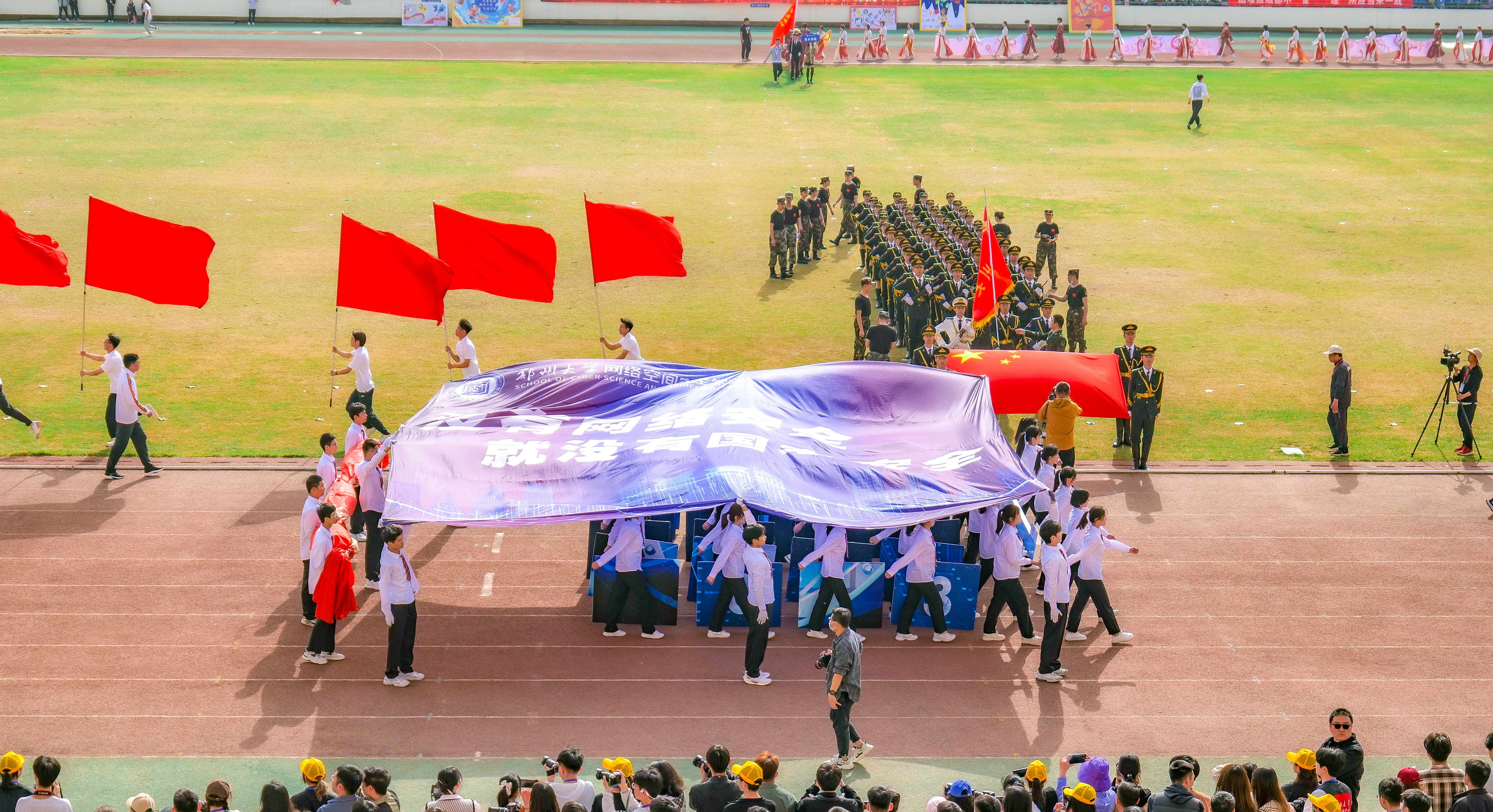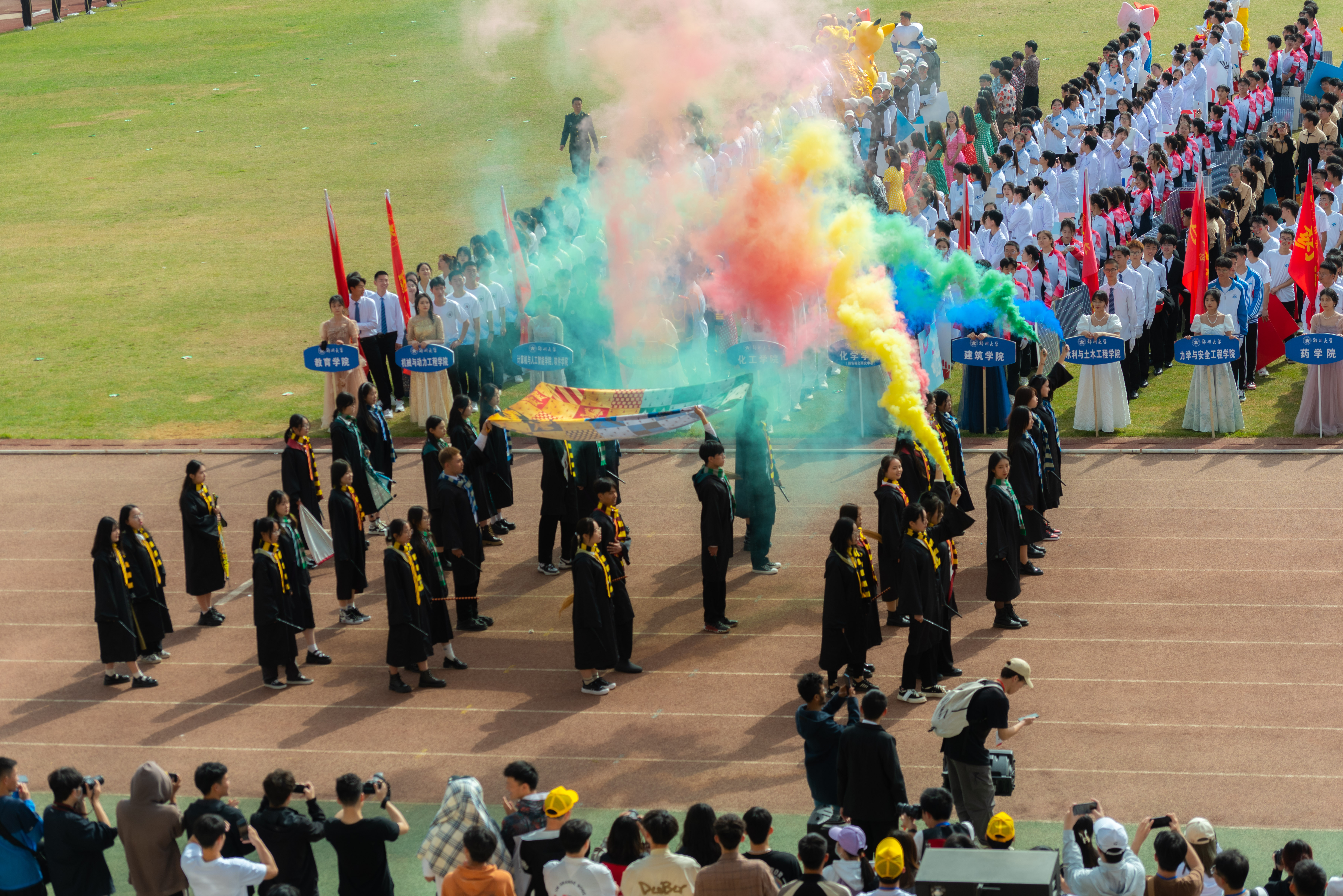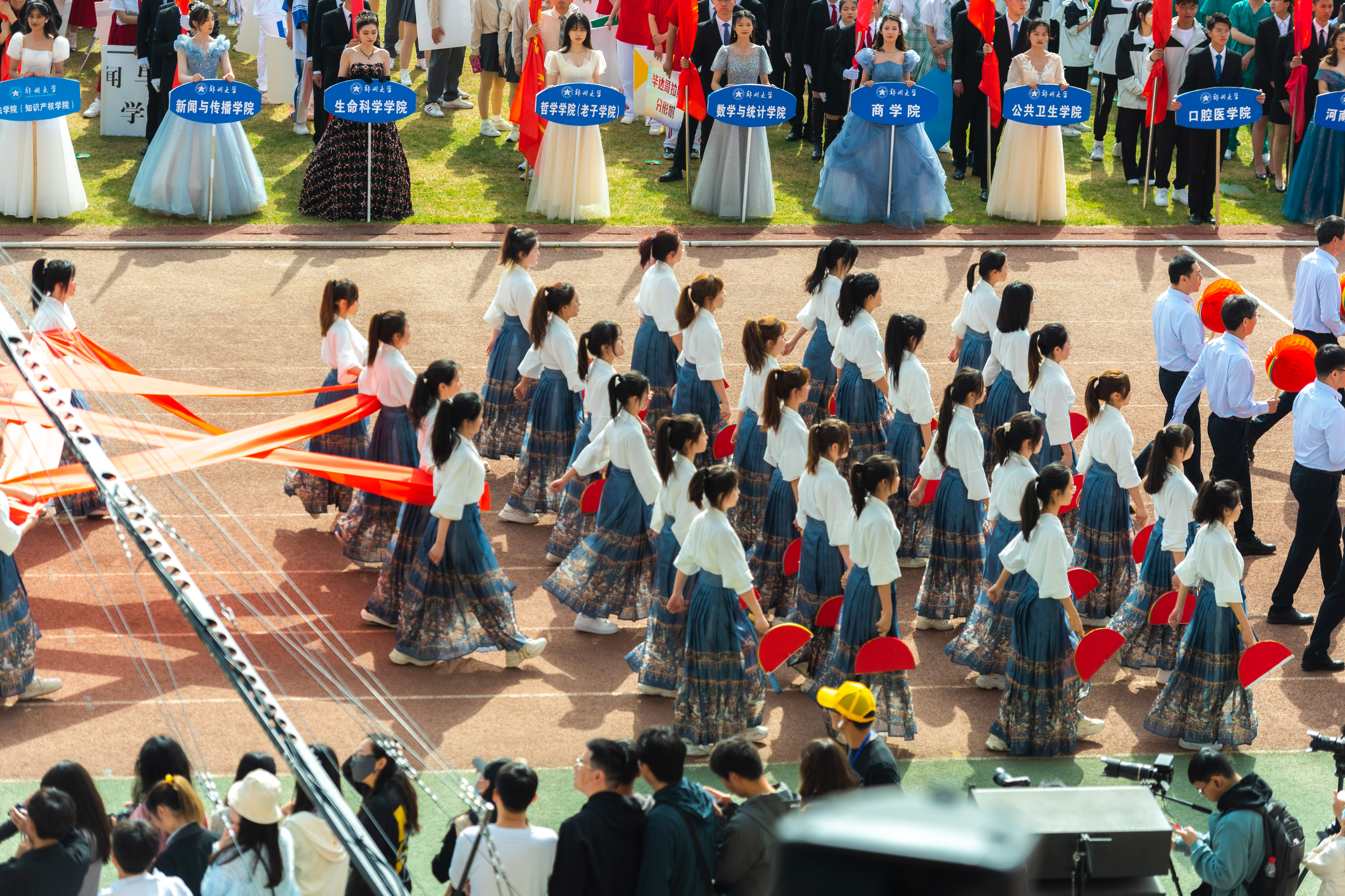 今年校运会开幕式上,伴随着激昂的《运动员进行曲》,国旗护卫队迈着整齐划一的步伐首先走过主席台,紧随其后的是38个学院的运动员方队,他们各个精神抖擞、意气风发,充分展现出今年会师生良好的精神风貌。现将各方队展示如下,让我们一睹他们的风采。