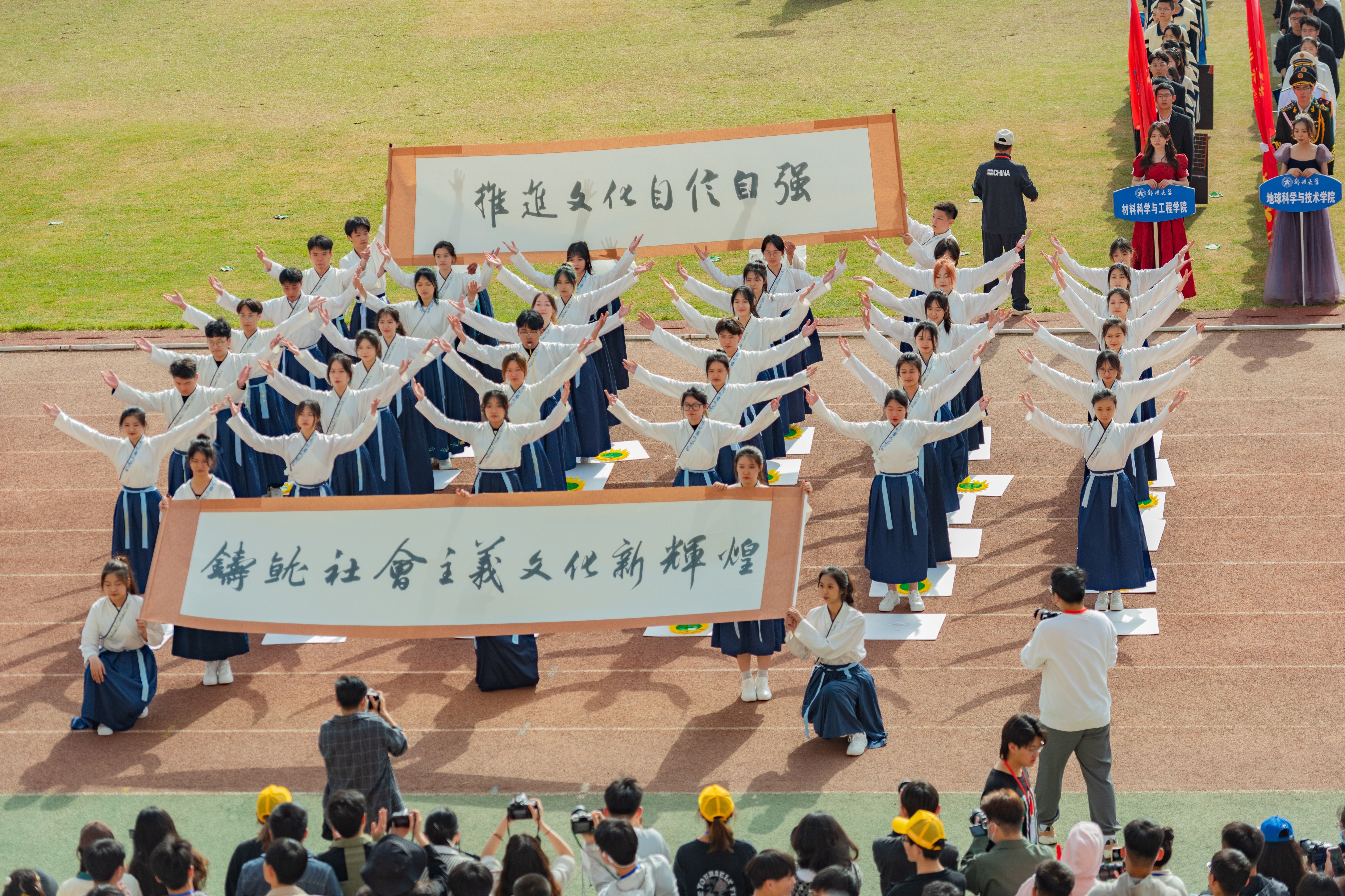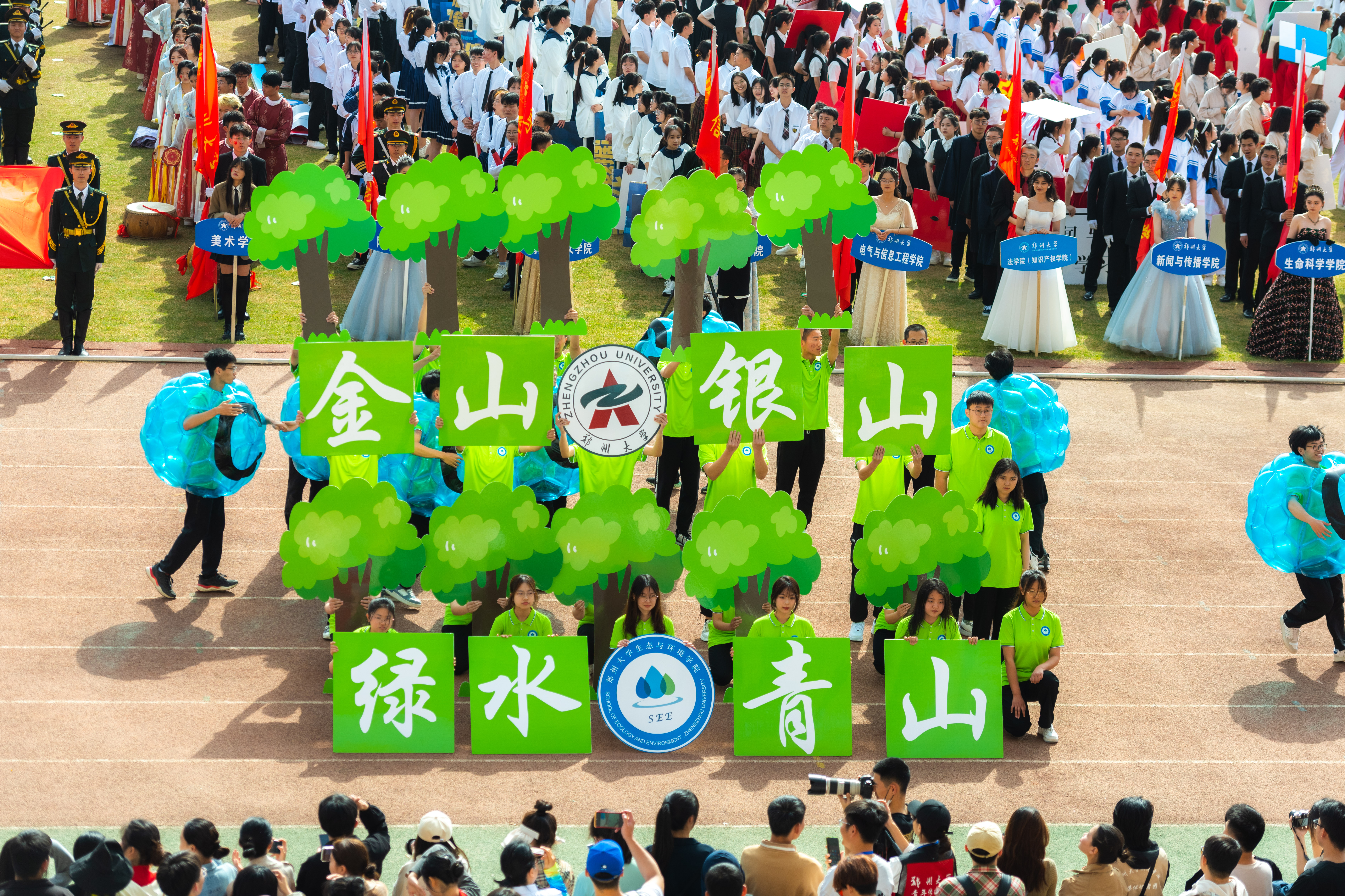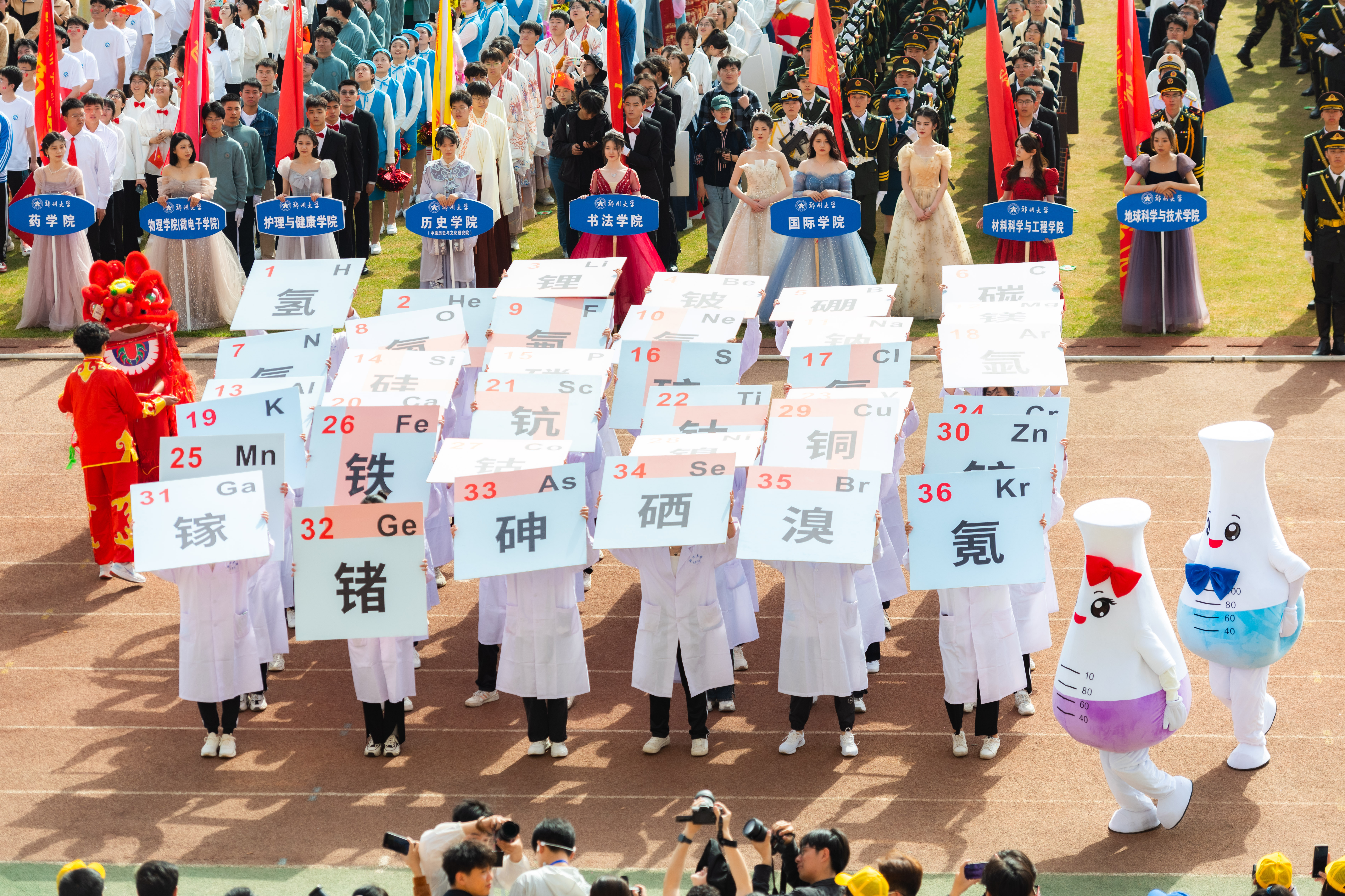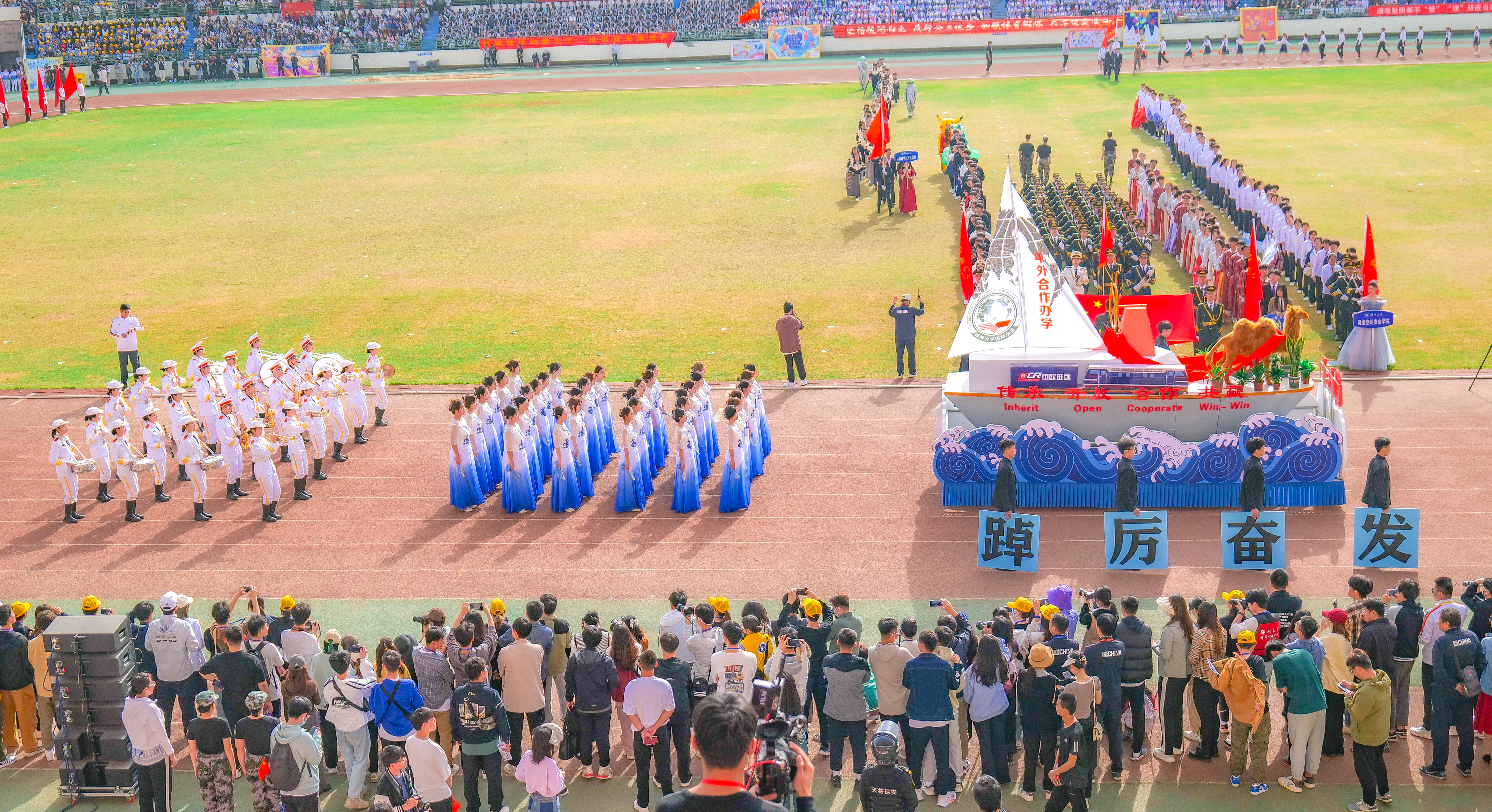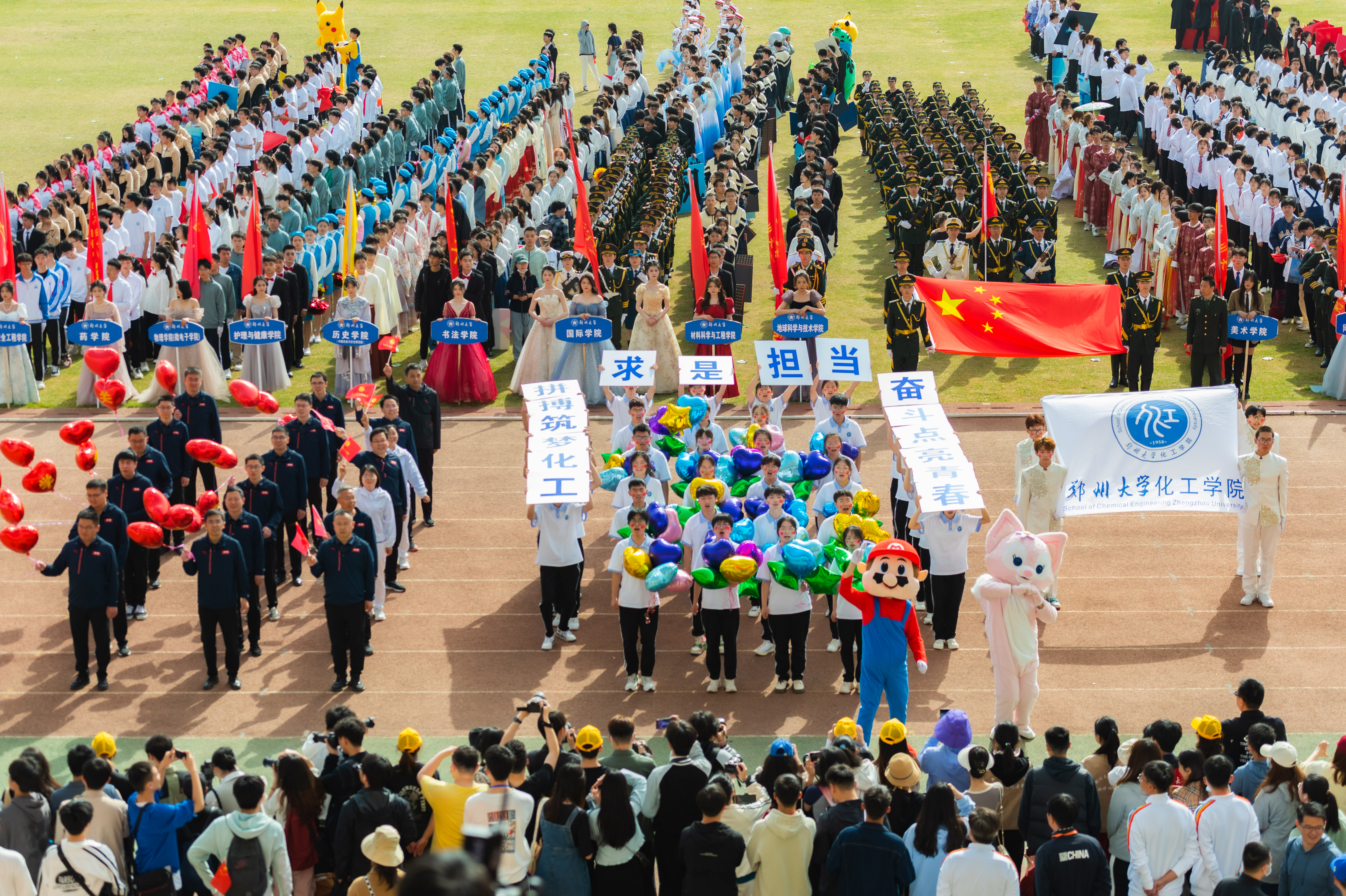 今年校运会开幕式上,伴随着激昂的《运动员进行曲》,国旗护卫队迈着整齐划一的步伐首先走过主席台,紧随其后的是38个学院的运动员方队,他们各个精神抖擞、意气风发,充分展现出今年会师生良好的精神风貌。现将各方队展示如下,让我们一睹他们的风采。