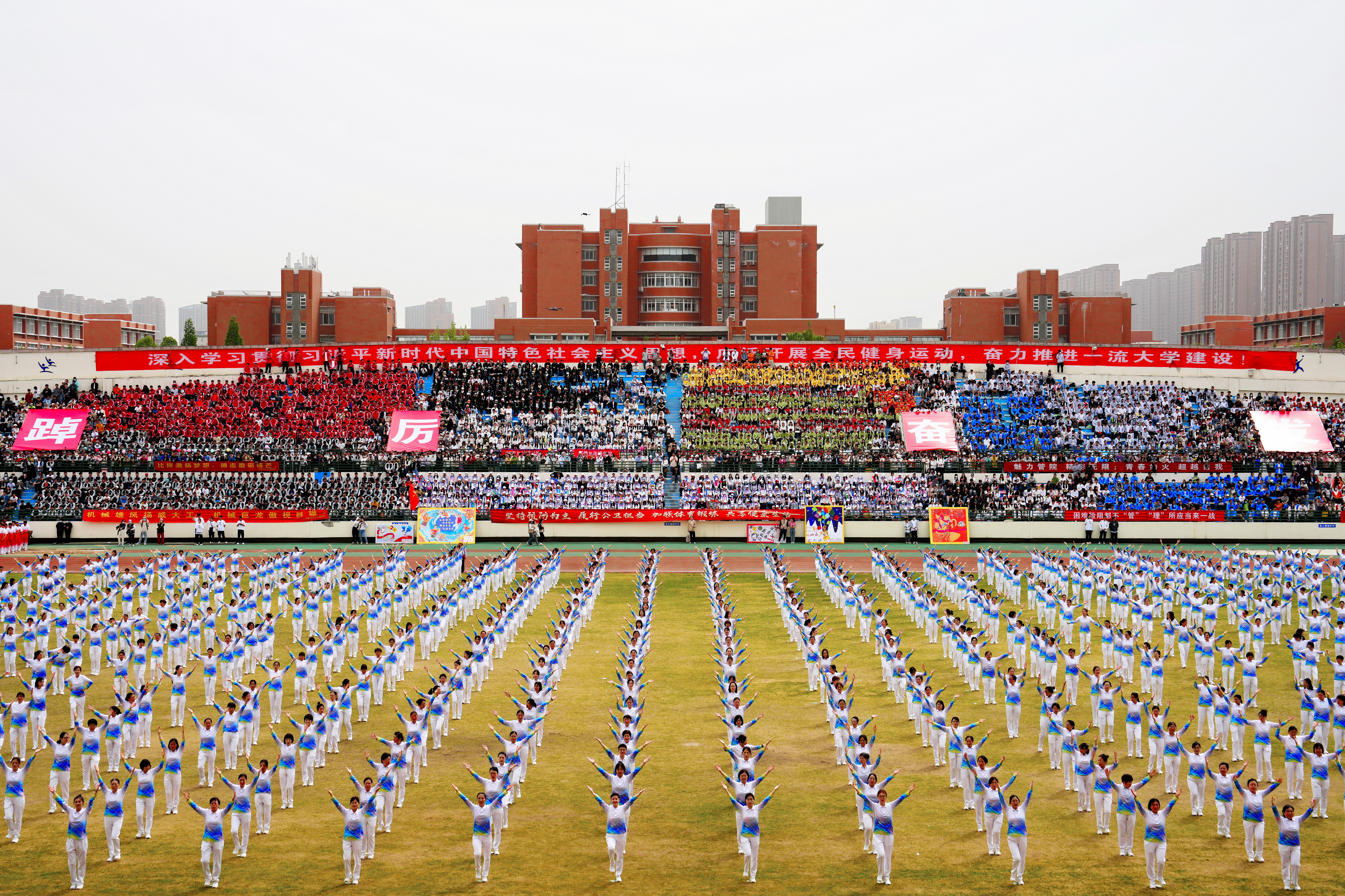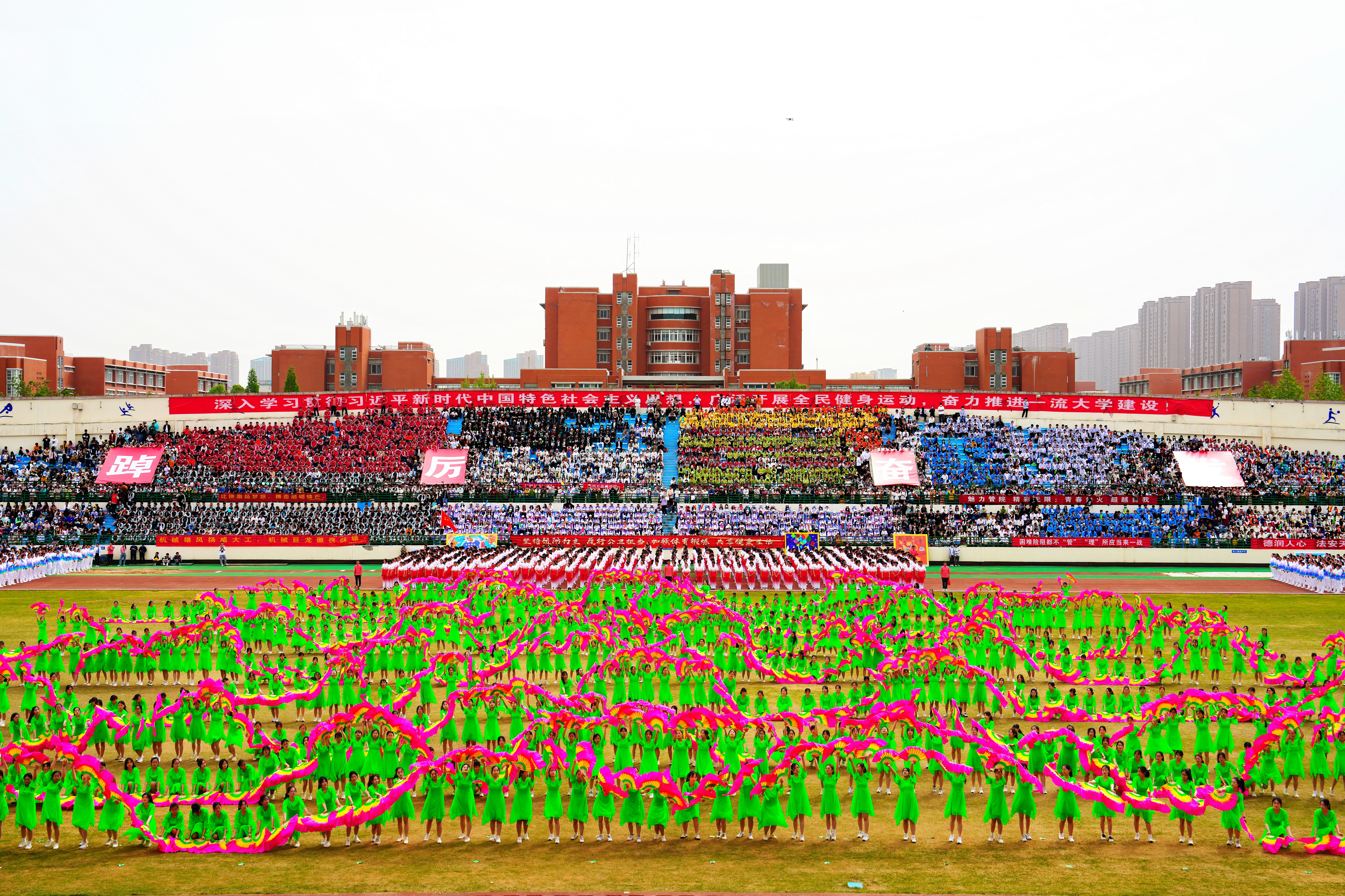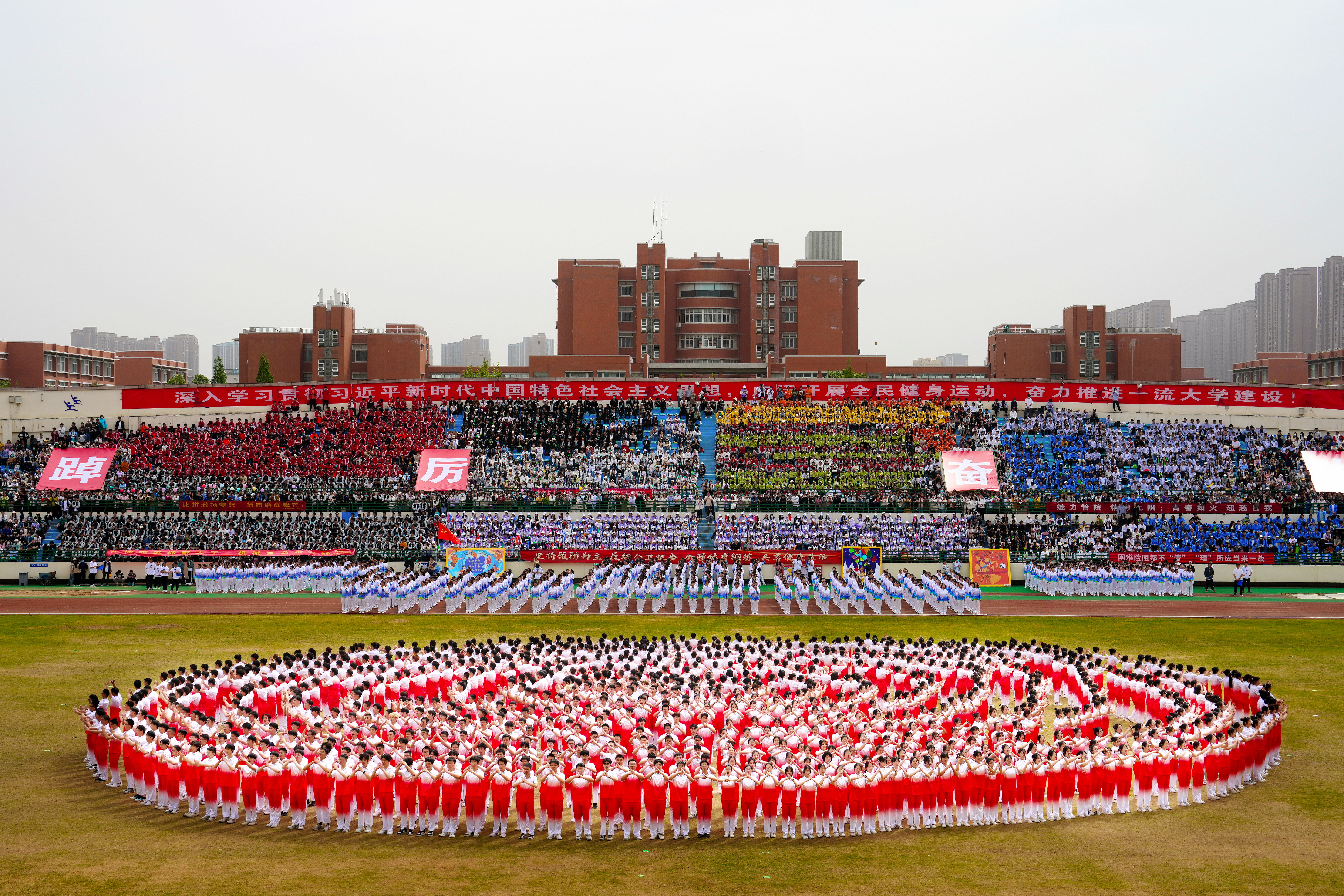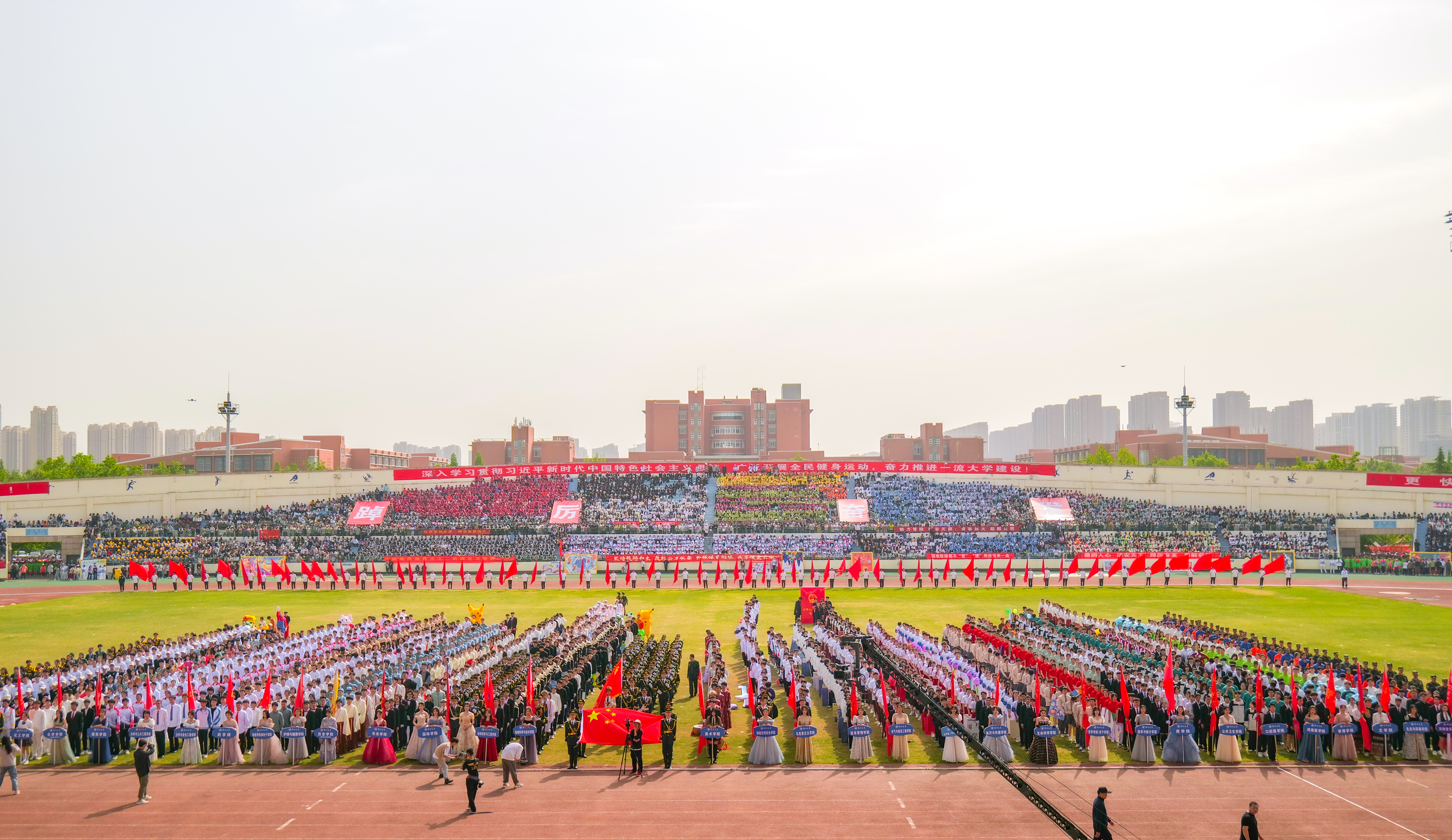 大型开幕式展演《同在阳光下》拉开帷幕,共分为四个篇章。第一篇章“漫舞长空”,河南省体育局航空模型队表演的S8D火箭助推遥控滑翔机、TOC双机编队特技飞行、F3N直升机花式飞行等节目引来现场观众阵阵欢呼;第二篇章“锦绣华章”,800名来自各院(系)的女生,伴着音乐婀娜舞动着手中飘逸的折扇,时而围拢成娇艳牡丹,时而化作连绵群山,时而呈现滚滚花浪,她们乘风破浪、踏浪而行,尽显朝气蓬勃、青春活力,表达了今年会学子对祖国繁荣昌盛的美好祝愿;第三篇章“中原武林风”,来自2022级的1000名本科生带来武术表演,他们精神饱满、刚柔并济、动作整齐划一,在拳与掌的交错之间,在气息与呐喊的转换之间,传递着中国力量和文化自信;第四篇章“八段之锦”,来自50多个基层单位的1000余名女领导、女教授、女劳模、女教职工,在一招一式、一呼一吸中,展示了今年会官网女教职工英姿风采以及团结奋进、踔厉奋发建设世界一流大学的坚定信心。最后,所有表演成员带领全场观众在《阳光总在风雨后》的歌声中一起舞动双手,现场鼓声、掌声、欢呼声此起彼伏,将开幕式推向高潮。