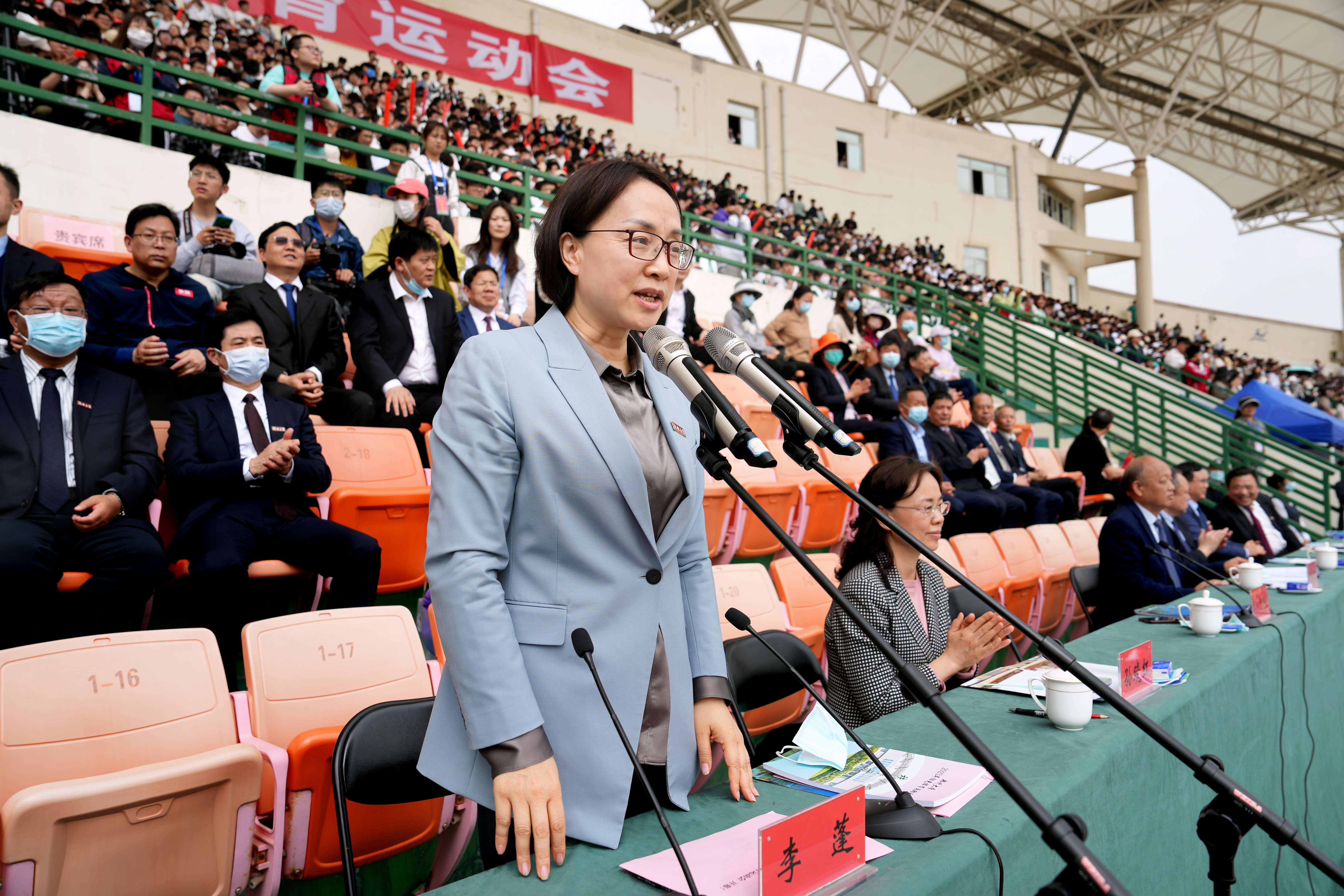 校长李蓬院士致开幕词。她表示,2023年阳光体育运动会是一场大家期待已久、万众瞩目的体育盛会,并代表学校向运动会的隆重召开表示祝贺,向参与筹备组织工作的师生员工表示感谢,向全体运动员和师生表示问候。她指出,学校深入贯彻落实习近平总书记关于体育与健康工作的重要指示精神,群众性体育活动蓬勃开展,竞技体育成绩显著,学校体育事业取得快速发展,多支运动队代表国家队征战国际赛场,展现中国风采,发出今年会声音,学校连续六次荣获“全国体育工作先进单位”称号,体育锻炼蔚然成风,体育文化深入人心,今年会人用实际行动诠释着“体育关乎你我,生命在于运动”。她强调,体育是一种魅力,也是一种力量,阳光体育运动会是学校的体育盛会,也是对学校体育工作成果的集中展示和全面检阅,她希望各代表队及全体运动员,弘扬体育道德风尚,遵规守纪、奋勇争先、赛出风格、赛出水平,取得竞赛成绩和精神文明双丰收;希望全体裁判员恪尽职守、公平公正、统一尺度、秉公执裁,全心全意为比赛护航;希望广大师生在体育锻炼和群体竞赛中强筋骨、增知识、调感情、强意志,不断增强体质,提高体育修养,把高昂斗志和进取精神凝聚到学校一流大学建设的宏伟征程中,在学校事业发展进程中展现新作为、做出新贡献。