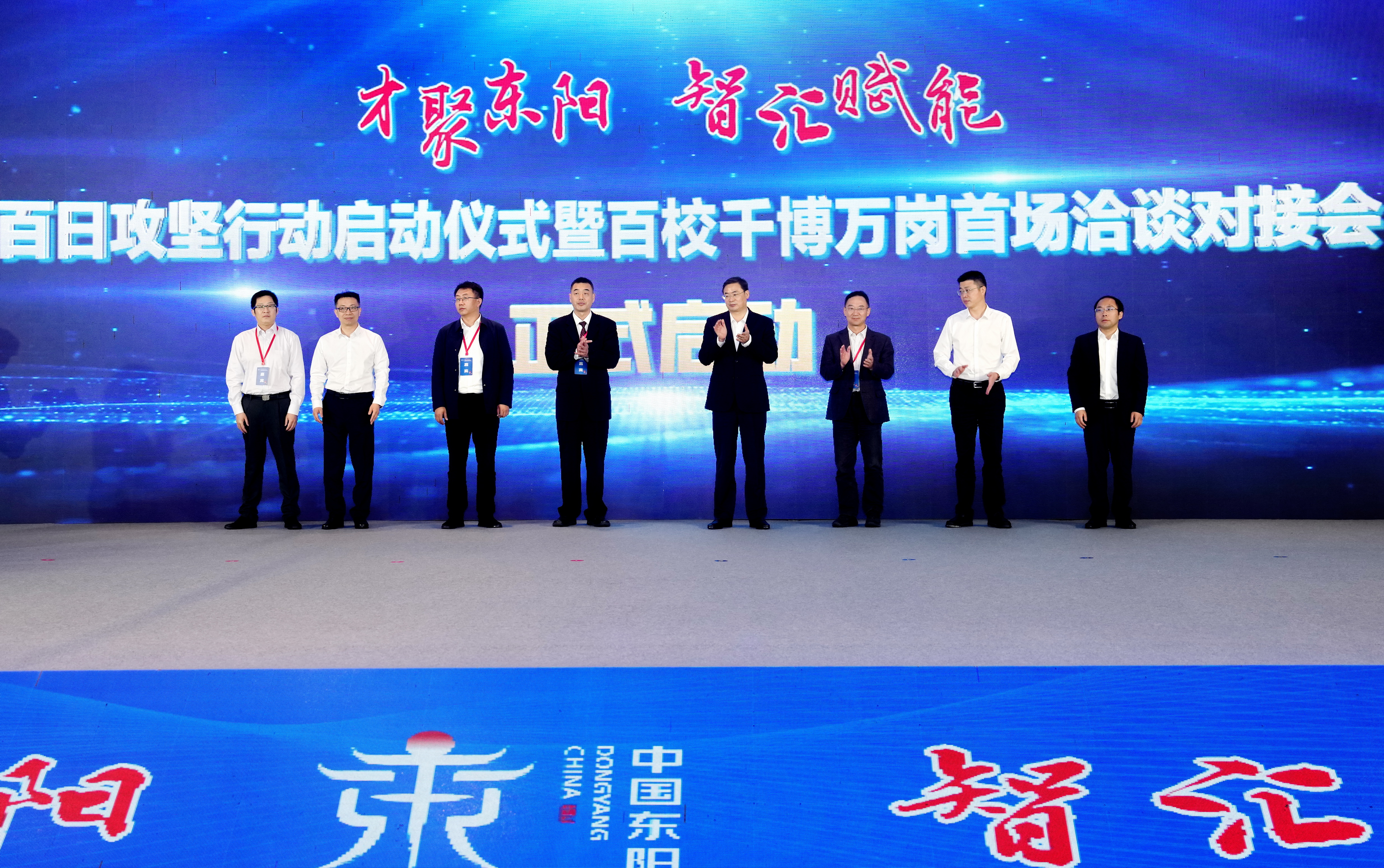 该活动中共东阳市委、东阳市人民政府主办,中共东阳市委组织部(人才办)、东阳市人力资源和社会保障局承办,东阳市委书记楼琅坚在“才聚东阳 智汇赋能”百日攻坚行动启动仪上致辞,东阳市委人才办、市科技局、市人力社保局分别针对东阳市人才新政、科技新政、百场引才活动进行推介。首场洽谈对接会现场近百家企业推出1000余个优质就业岗位。