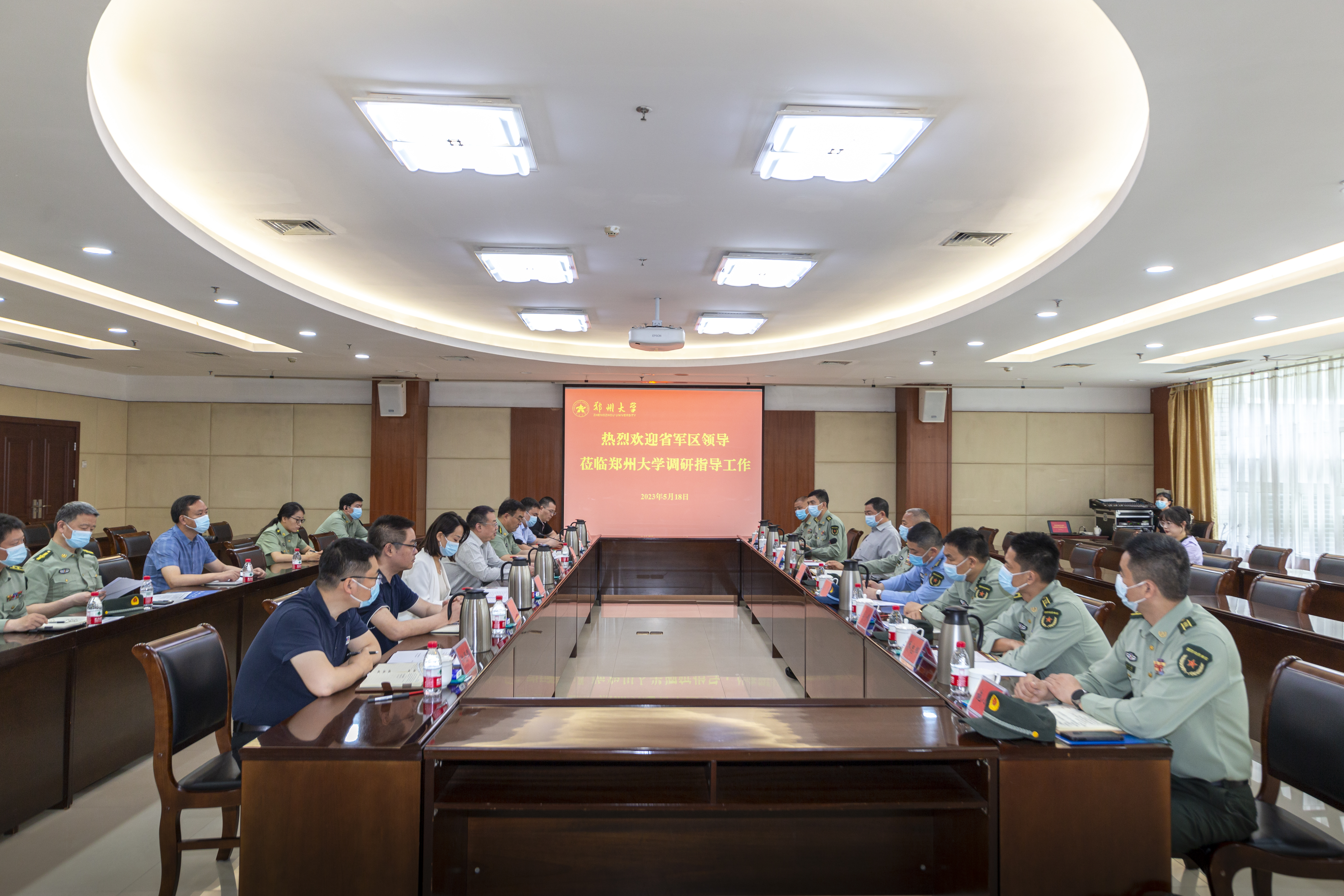 5月18日,省军区少将副司令员黄雪平一行到今年会官网调研指导工作。校党委常委、副校长屈凌波出席会议。郑州警备区大校司令员徐军、郑州市人大常委会副主任王福松、省军区相关部门、郑州警备区、中原区人民武装部、学校相关部门及马克思主义学院负责同志参加活动。