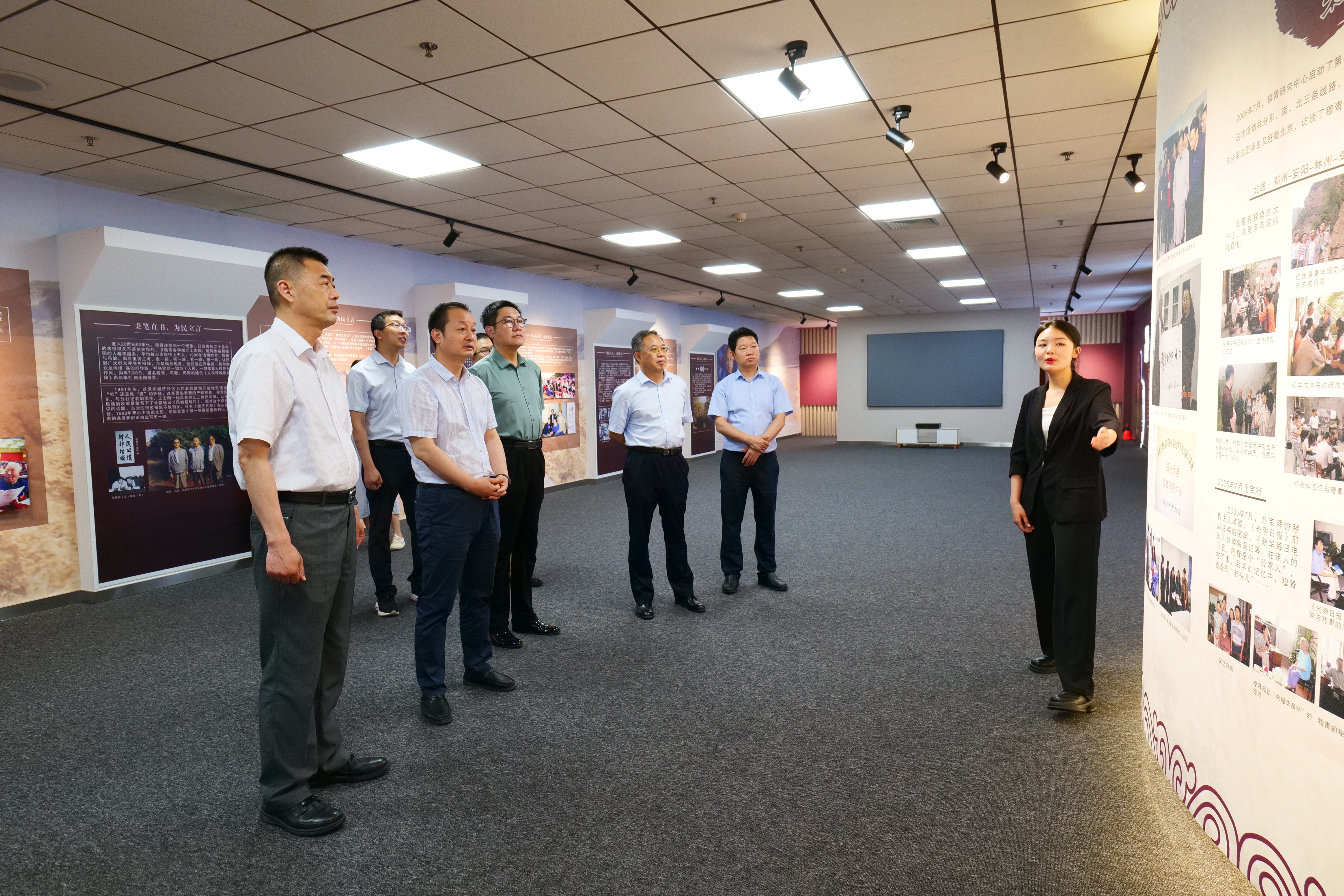 蒋宏潮一行还实地调研了勿忘人民——穆青纪念展览馆、新闻与传播学院全媒体示范教学中心、历史学院考古陈列室。(李林洁 撰稿 张宁 摄影)