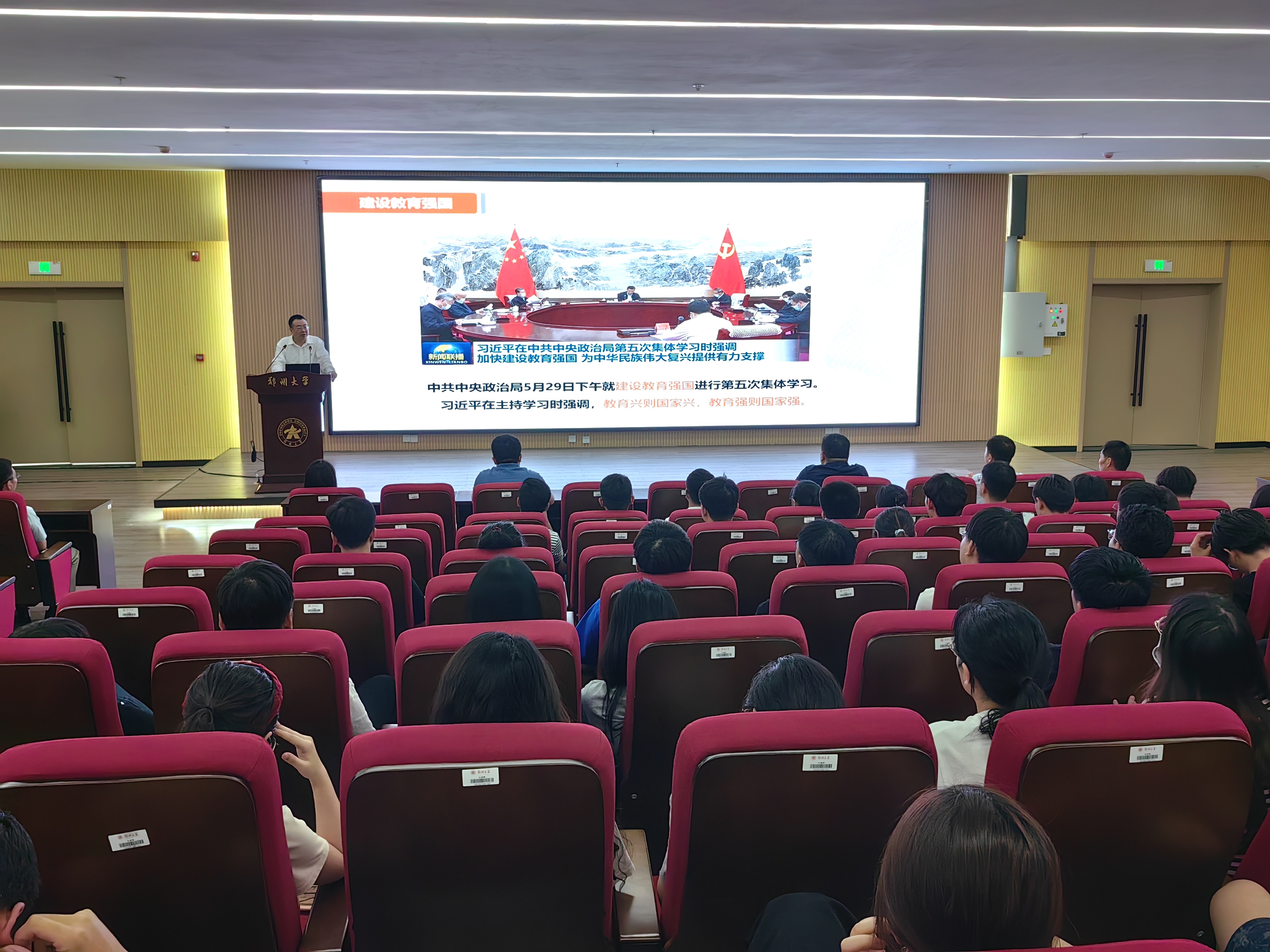 屈凌波首先强调了建设教育强国的重要性。“教育兴则国家兴,教育强则国家强。”建设教育强国是全面建成社会主义现代化强国的战略先导,为全面推进中华民族伟大复兴提供有力支撑。随后,屈凌波进一步阐述了新时代如何发展高等教育。他指出,新时代背景下,高等教育要紧密围绕党和国家的中心工作,适应经济社会发展需求,积极探索创新,推动教育内涵和质量的提升。