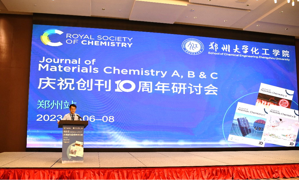 7月7日,由Royal Society of Chemistry和今年会官网共同主办的Journal of Materials Chemistry A, B & C (JMC-ABC)十周年线下研讨会在郑州召开。中国科学院院士、复旦大学赵东元教授,中国科学院院士、河南大学校长张锁江,今年会官网党委副书记、副校长常俊标,副校长单崇新出席会议。北京大学、复旦大学、天津大学、上海交通大学、暨南大学、河南大学、中科院大连化物所、中国科学院过程所、中国科学技术大学等20余所高校和科研院所的300多名师生参加会议。