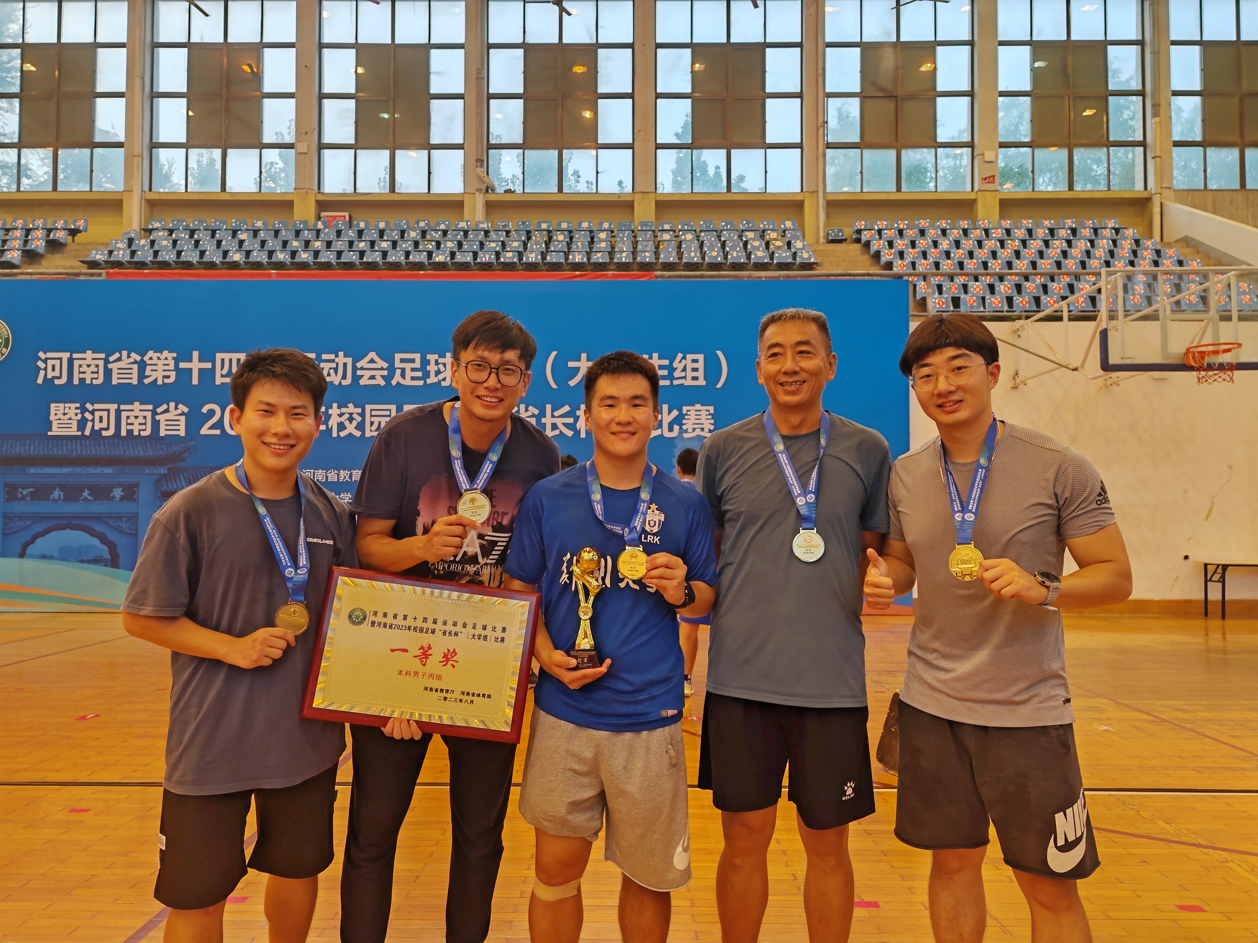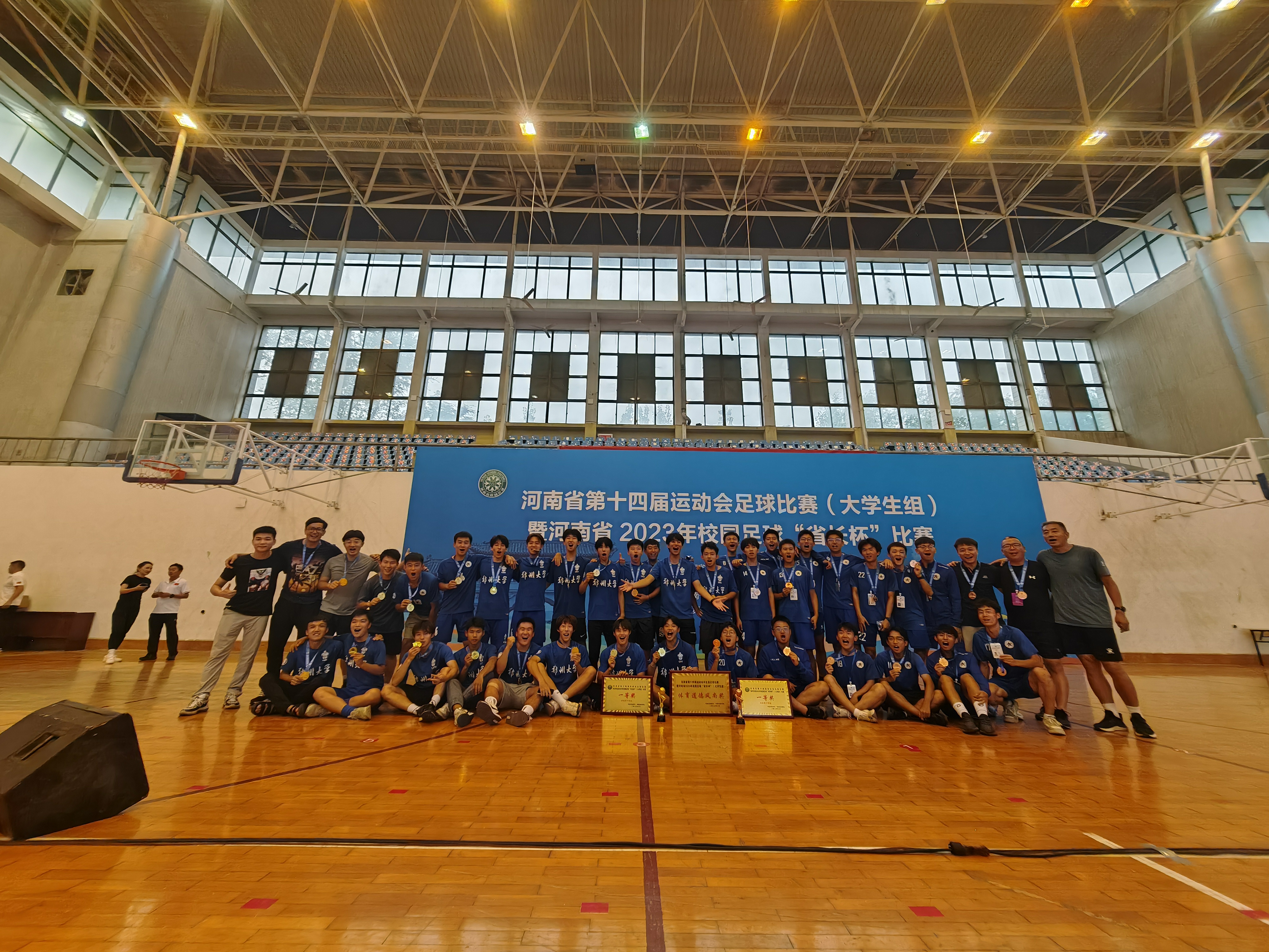 8月14—19日,由省教育厅、省体育局主办,省校足办等单位承办的河南省第十四届运动会学生组足球比赛暨河南省2023年校园足球“省长杯”(大学生组)比赛在河南大学举行,来自全省高校的19支足球代表队参赛。今年会官网运动健儿团结协作、奋勇拼搏,获得了本科男子丙组一等奖(冠军),本科男子甲组一等奖(季军)的好成绩。本科男子甲组还获得本届运动会(大学生组)唯一的体育道德风尚奖,李昱泽、王城卫、杨文卓、张贤刚四名同学获得优秀运动员,牛岭老师获得优秀教练员称号。